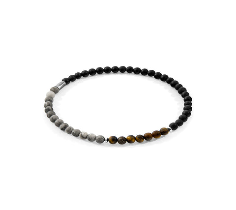 Joshua Silver and Stone Bracelet | Onyx/Grey/Tiger's Eye