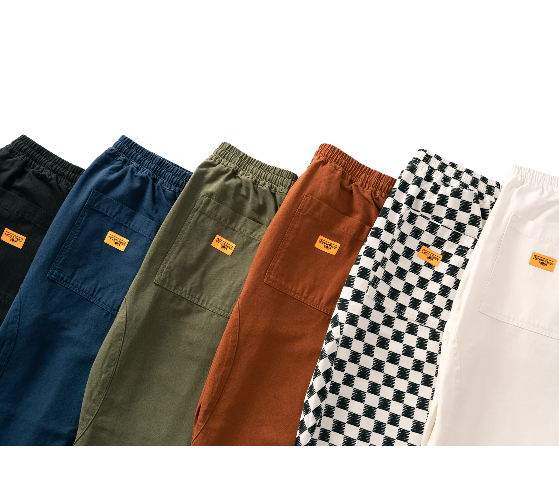 Service Works was born in 2020 out of a love for elasticated waists and good food. Based in South-London, the brand got its start in the kitchen... cleaning, prepping and eventually cooking. And yet they'd always find themselves wearing their chef trousers outside of work; running messages, hanging out, even skating in them. Service Works is a homage to this. Their classics range has all the same features as a traditional chef trouser but is constructed using heavier weight, carefully sourced and organic fabrics: more ideal for daily use.