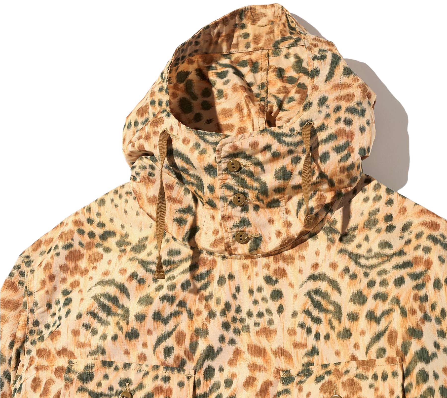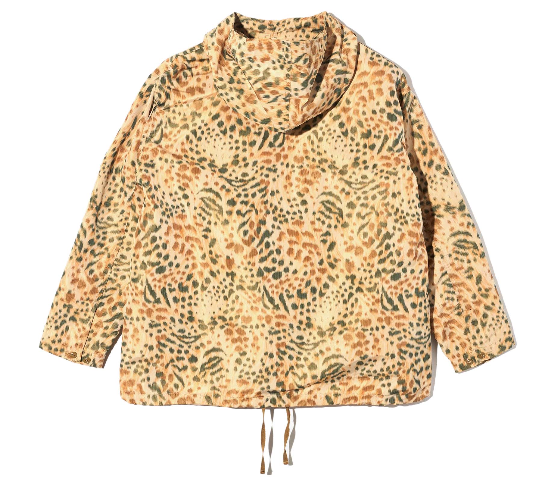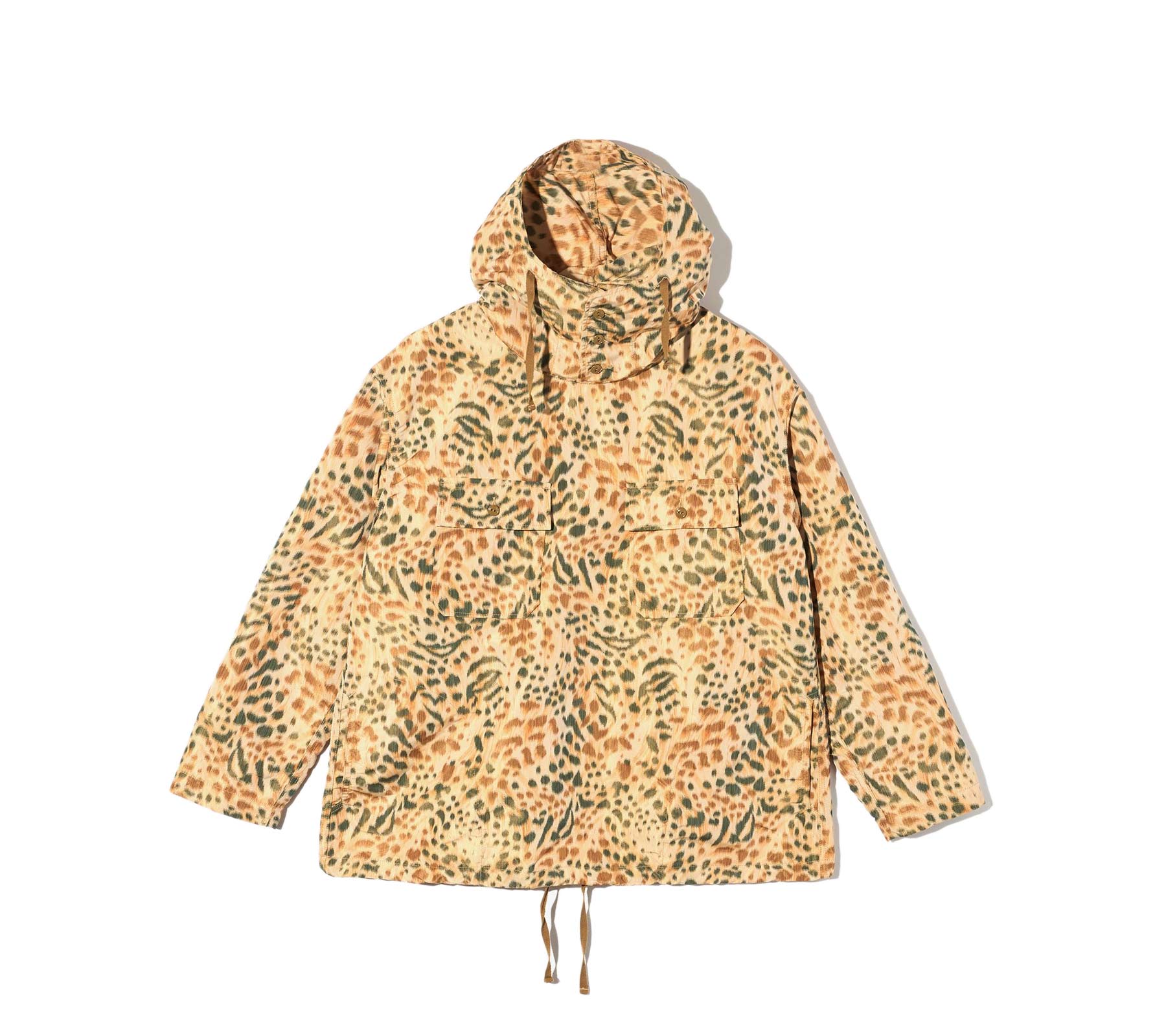 A lightweight jacket, a shirt, an anorak pull-over hoodie, an overshirt for cool nights... so many styling possibilities are offered with the Cagoule Shirt. Features a straight hem with an adjustable interior drawcord to cinch the shape for layering and loose fitting silhouette. Finished with another adjustable drawcord at hood, 3-button neck placket, and front chest pockets with button closure. Great for layering, it is crafted from 100% polyester leopard print.