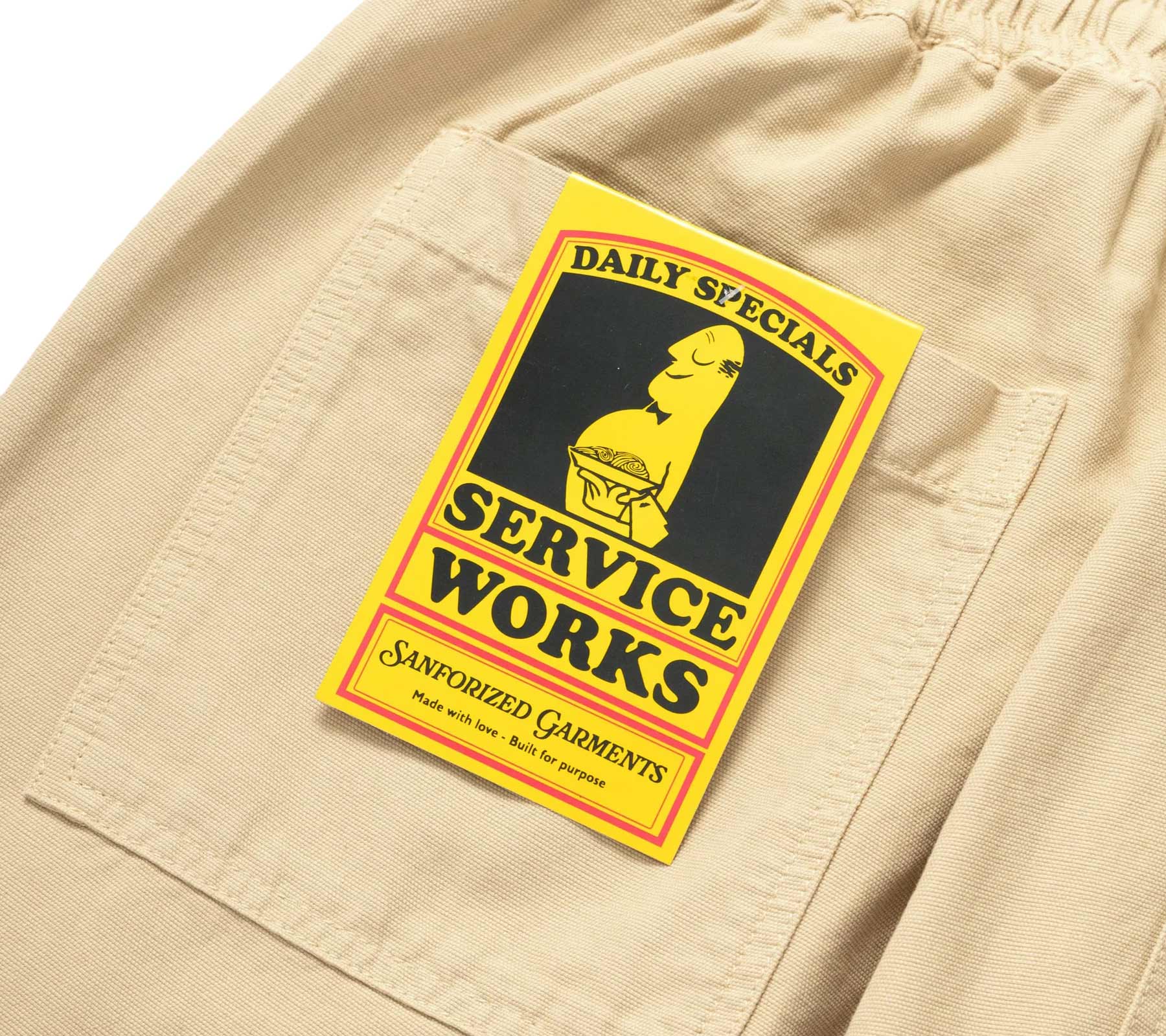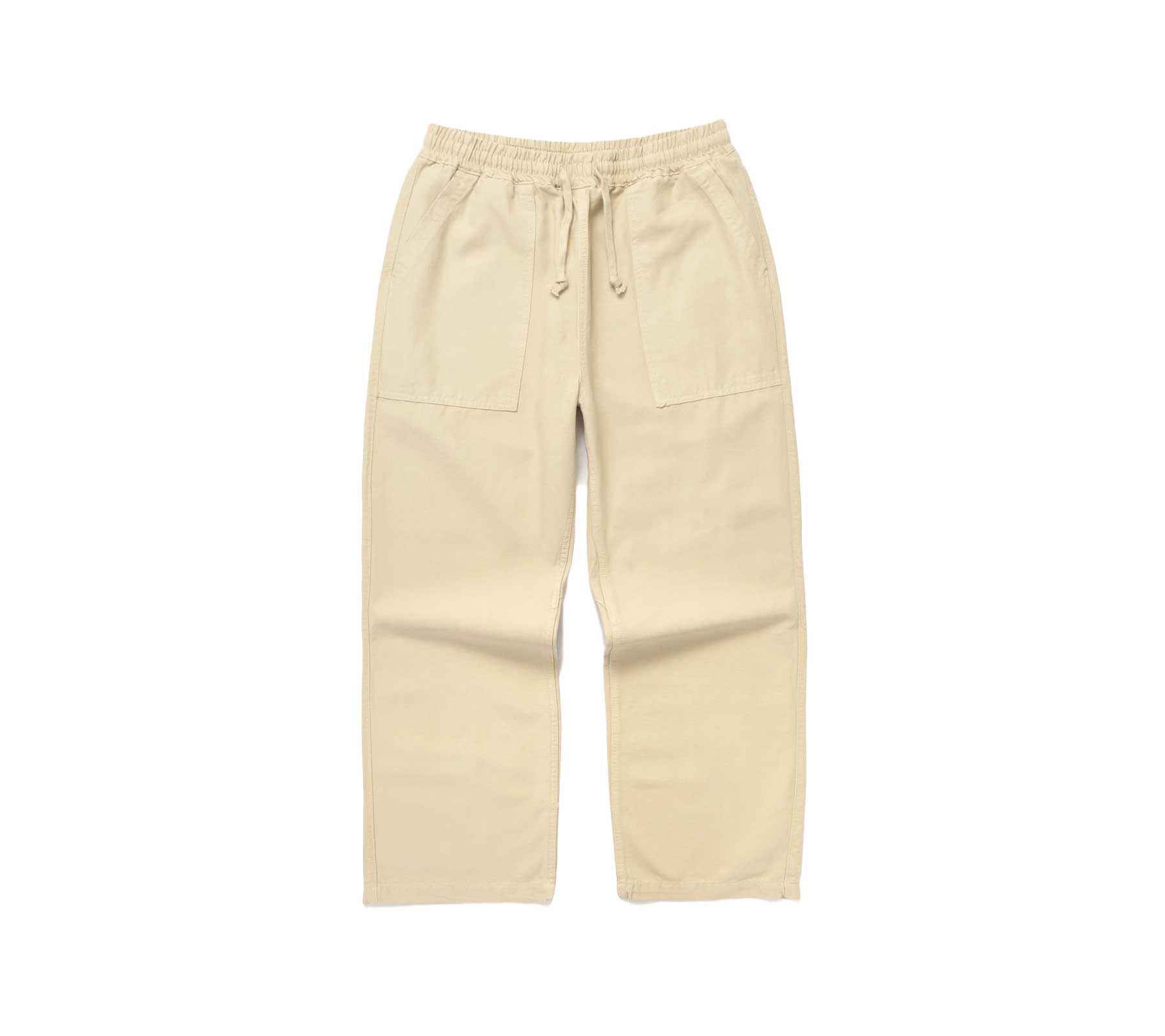 An homage to the classic elasticated waist Chef Pant - those pants you wear for comfort & utility first, but then end up falling in love with how you look & feel in them and end up wearing them everyday, all day. These trousers are a relaxed, straight leg fatigue style pant, crafted from GOTS organic 360gsm (11oz) cotton canvas. Features an adjustable waistband with drawstring, fatigue front pockets, and rear pockets with woven label. Perfect for any use.