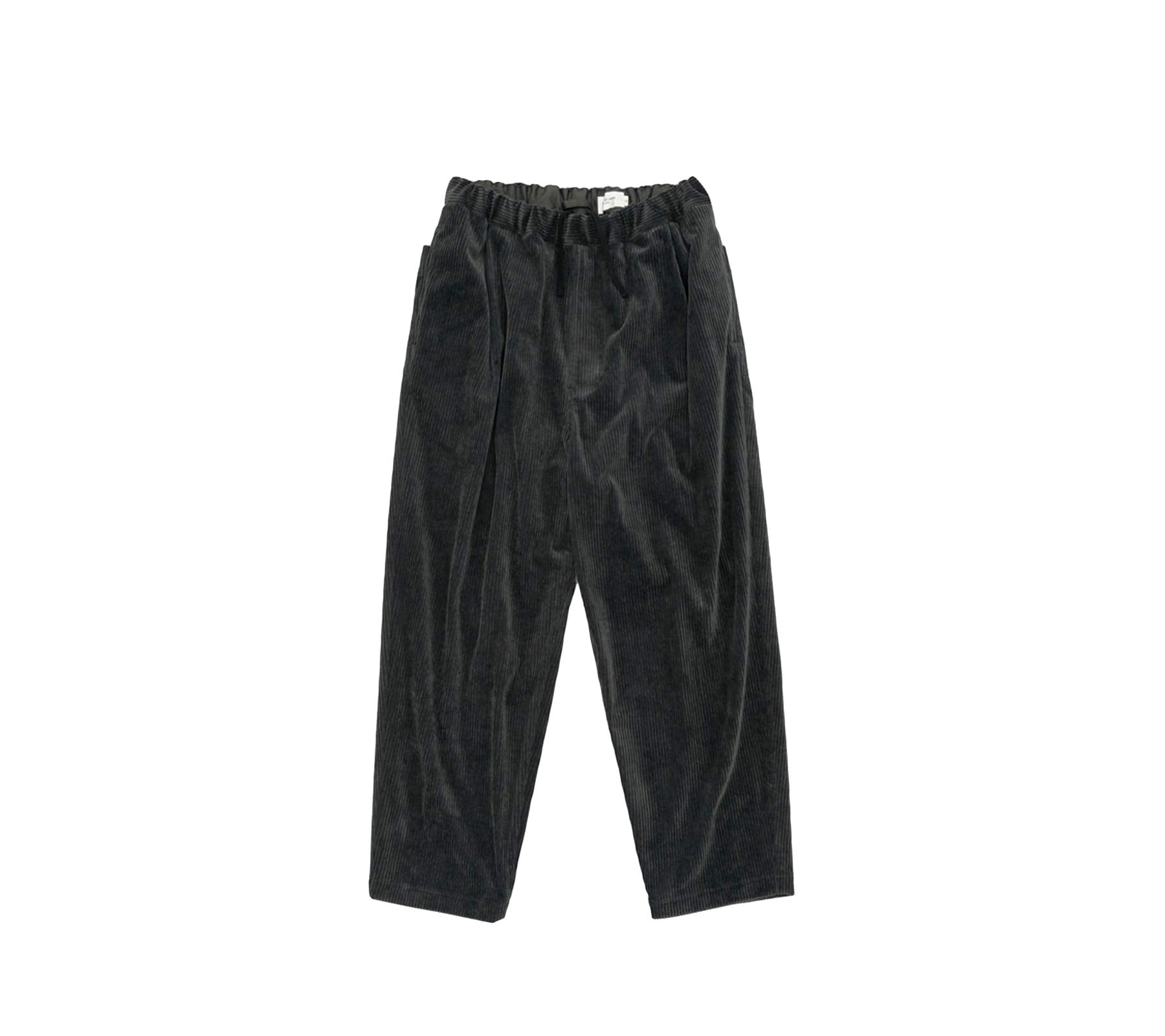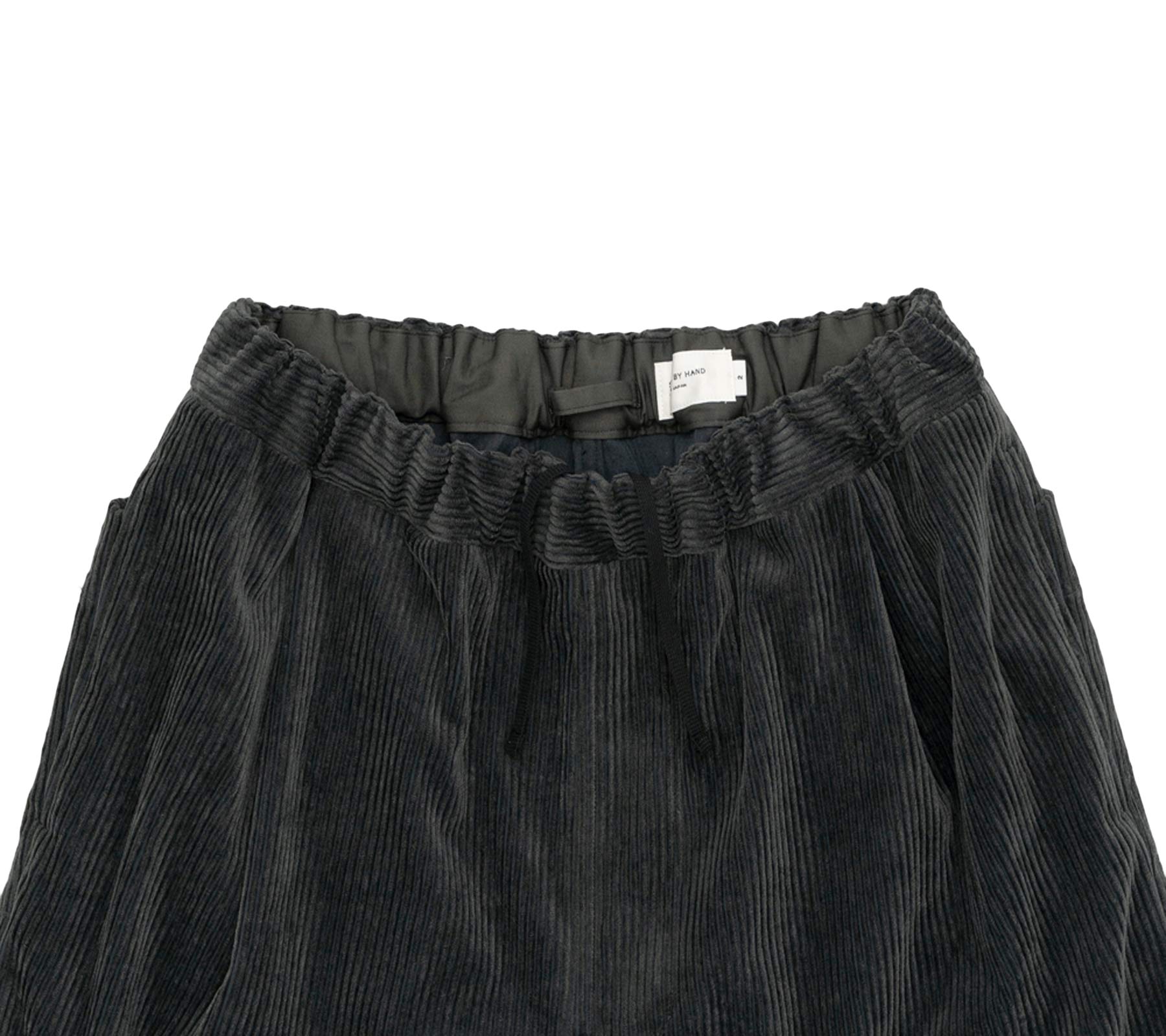 Crafted from a durable yet comfortable blend of 48% polyester, 32% cotton, 19% rayon, and 1% polyurethane, this 5W corduroy fabric offers a perfect balance of warmth and pleasant thickness while maintaining an excellent drape. Designed for a relaxed fit, these pants feature a widely elasticated waist with a drawstring for customizable comfort, one tuck for subtle shaping, vertical side pockets, and back pockets for practicality. The roomy cut accommodates movement in the bottom and thighs, tapering gently for a modern silhouette. Ideal when paired with style code BL02253OS for a coordinated look.