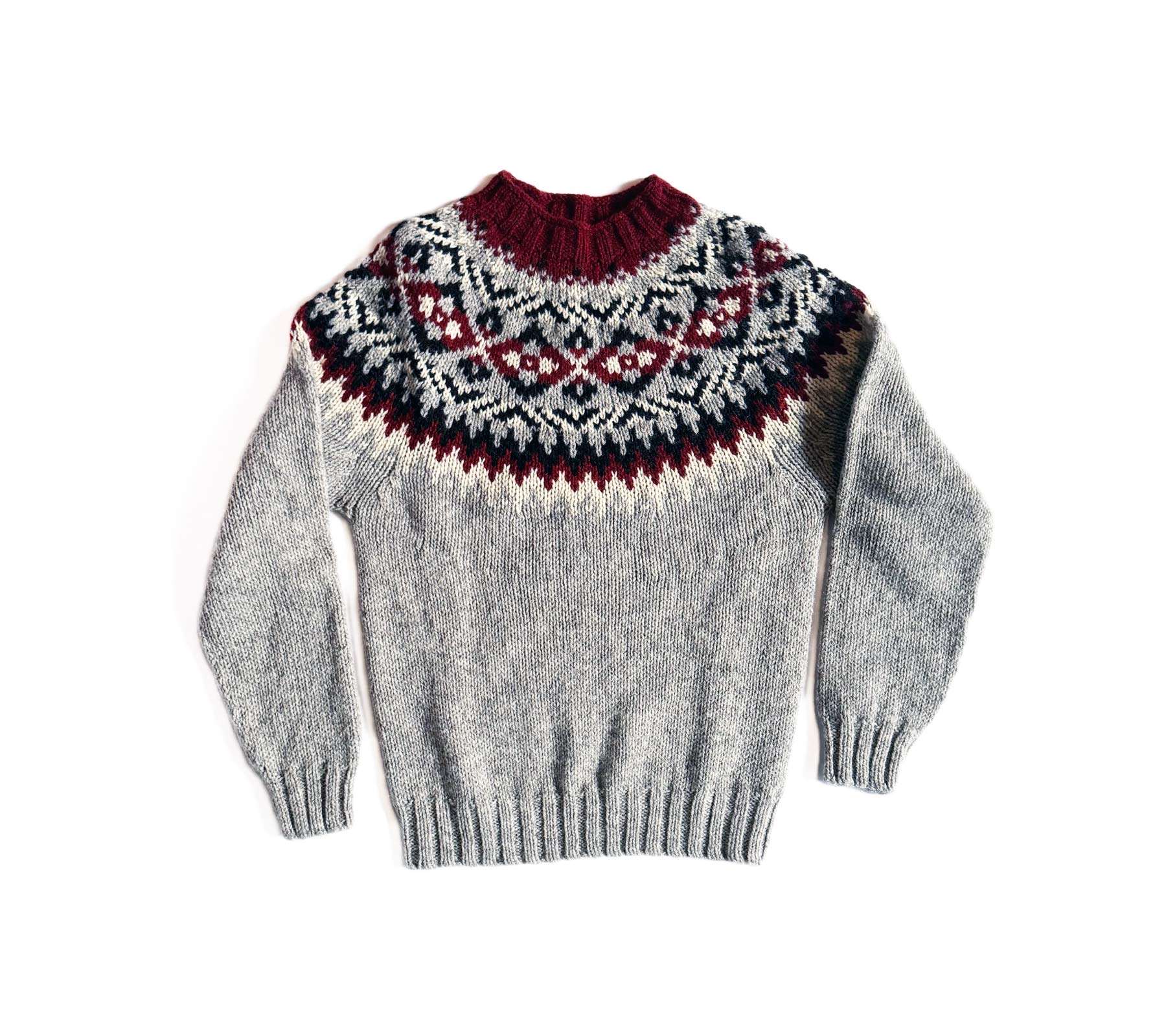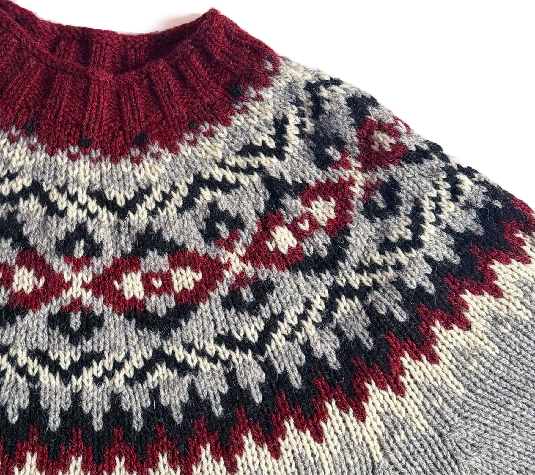 Knit on the North Coast of Scotland from pure British wool, this winter-weight jumper offers warmth, softness, and timeless style. The classic Fairisle yoke wraps seamlessly around the shoulders and back, set against a rugged base. Finished with chunky ribbing at the collar, cuffs, and hem.