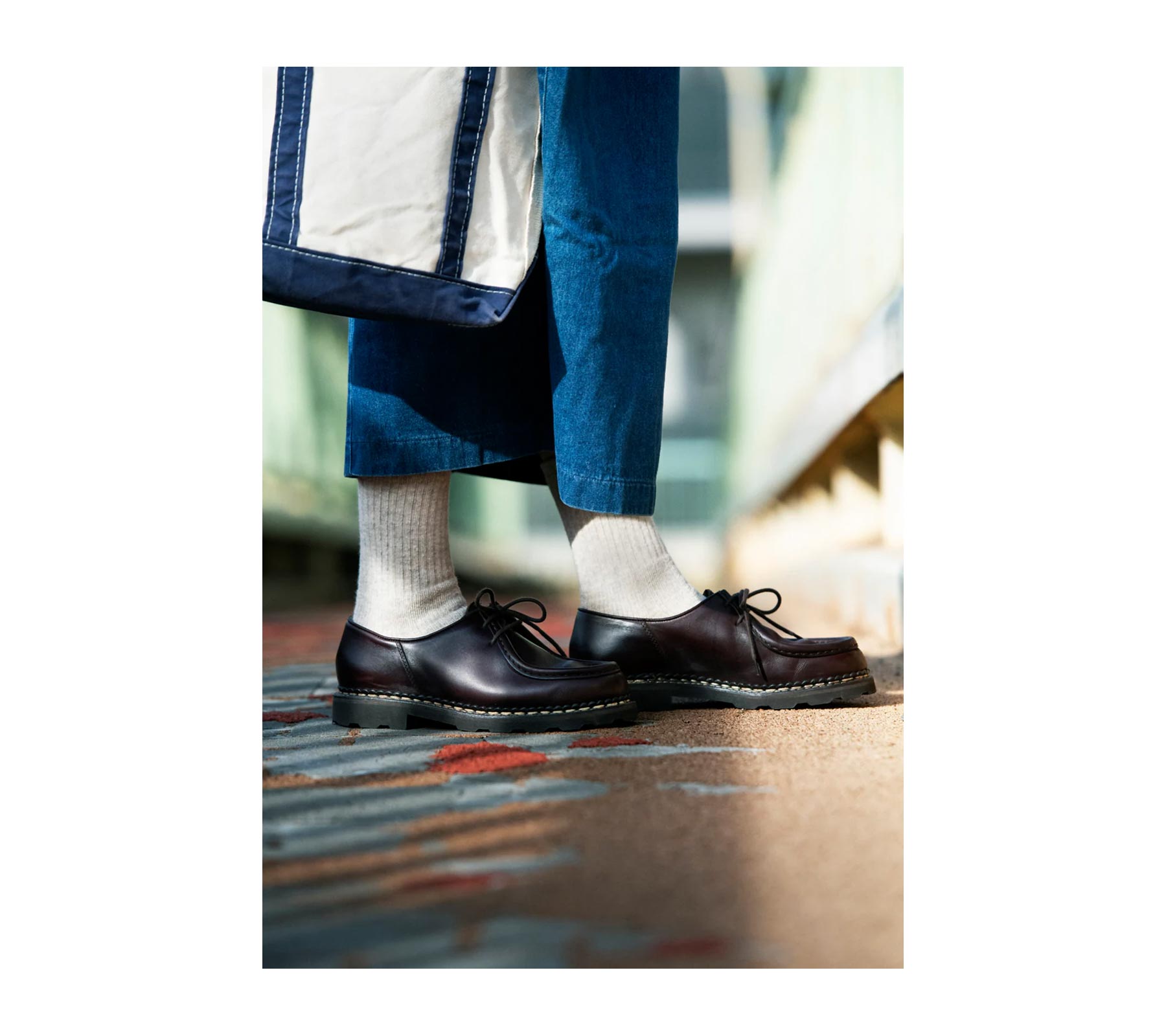 The updated version of Rototo's famous R1380 DOUBLE FACE MID SOCKS, with the same comfort and slightly longer length for year-round use. The thick double-layered fabric is made of organic cotton on the both sides and is gently-brushed with soft elastic yarn used around the cuff as well as arch support. *Avoid tumble drying, as it may cause shrinkage.