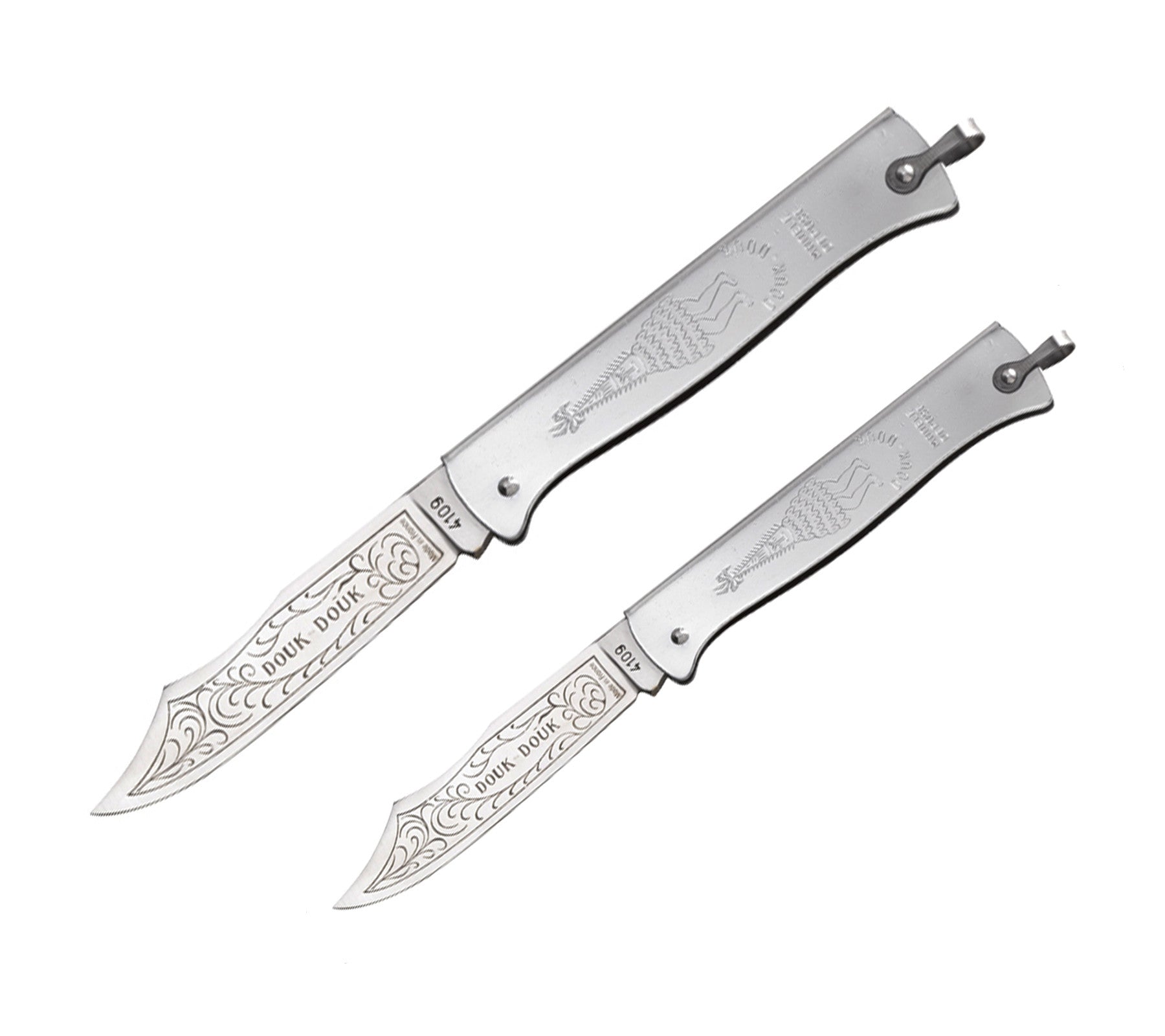 A chromed-out version of the famed knife that started it all. For over 4 generations, the Cognet family has been making knives in Thiers, France, and Le Douk-Douk might one of the most famous knives to come out of France. This model is a shorter version of the original, that has been in production for over 70 years, and still made in the original atelier.