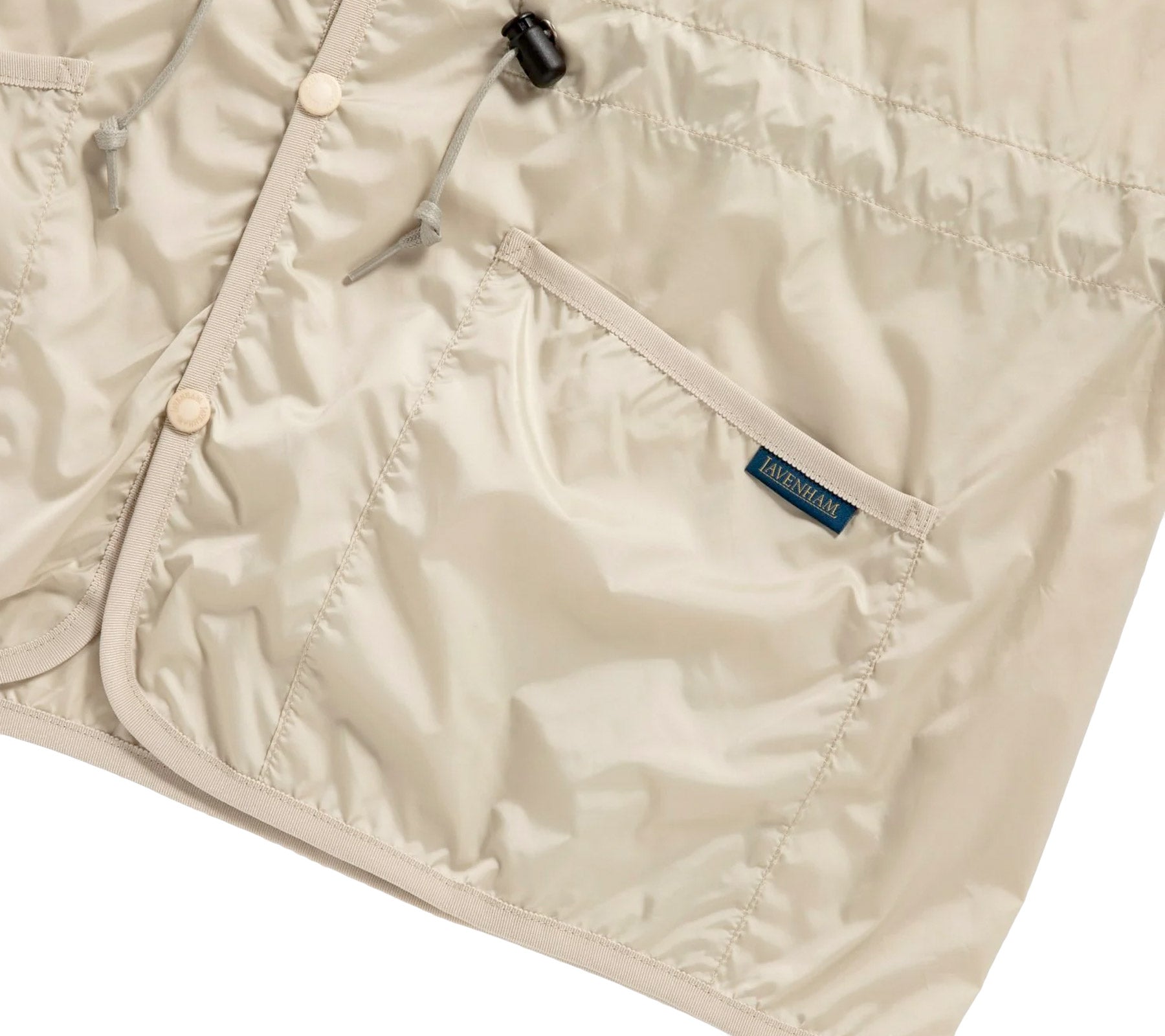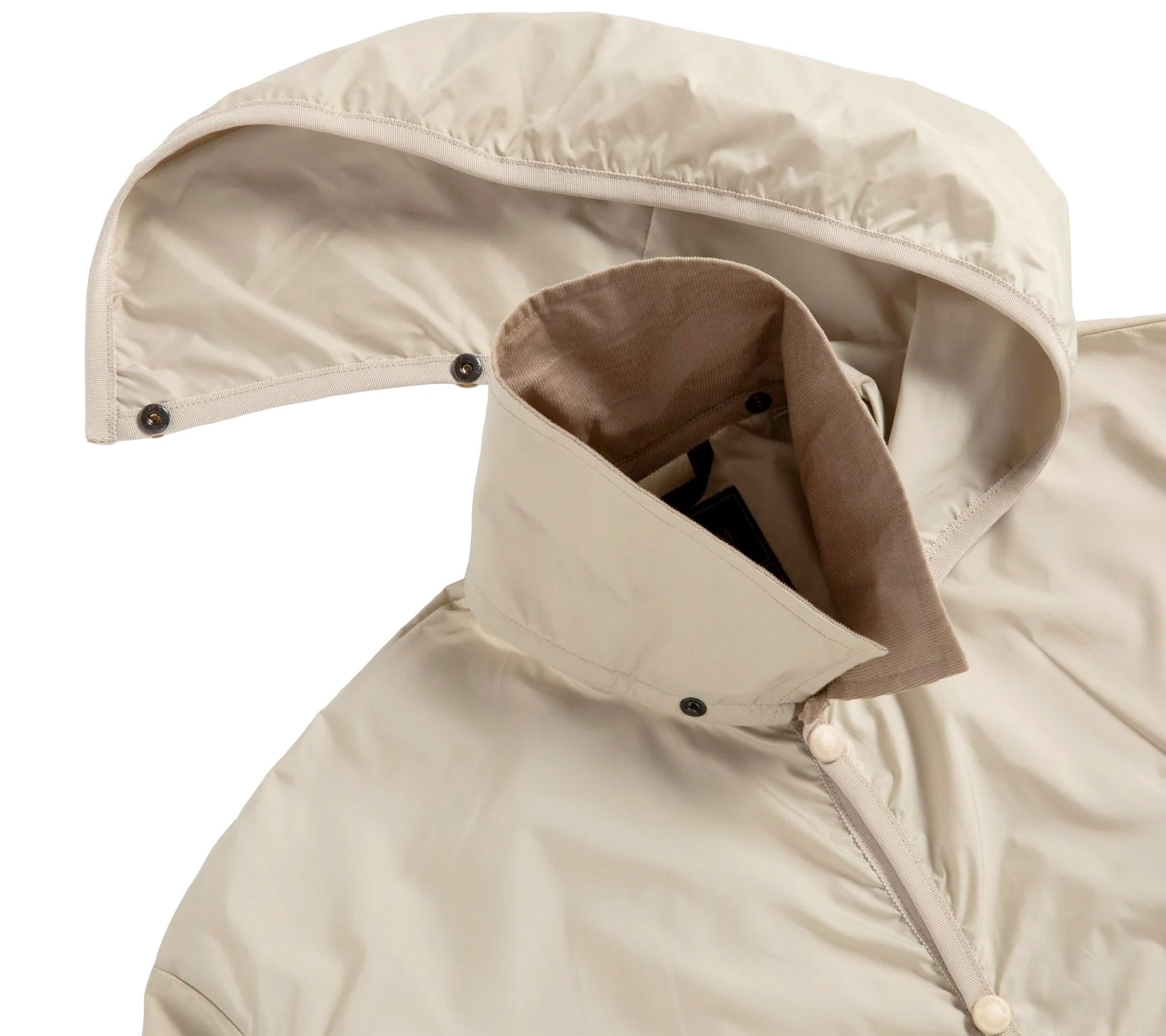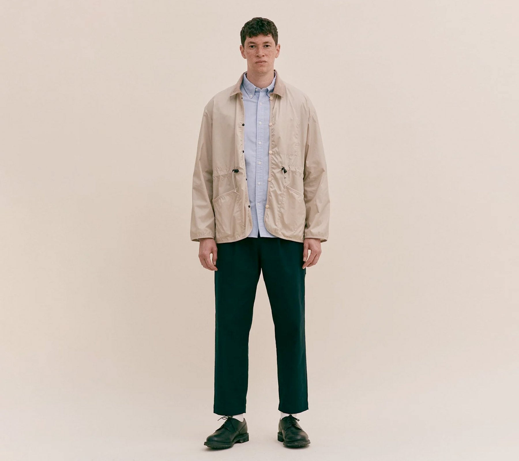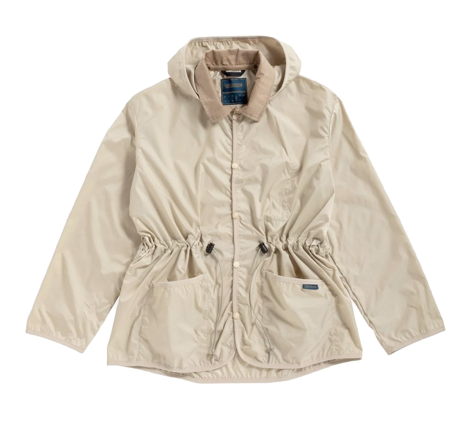 Inspired by 1980’s sportswear, this jacket features a draw cord waist and removable hood. Lightweight and durable it packs down making it ideal for travel as it can easily be stowed away ready if the weather takes a turn. Finished with a durable Japanese grosgrain binding, two patch pockets and a single internal chest pocket.