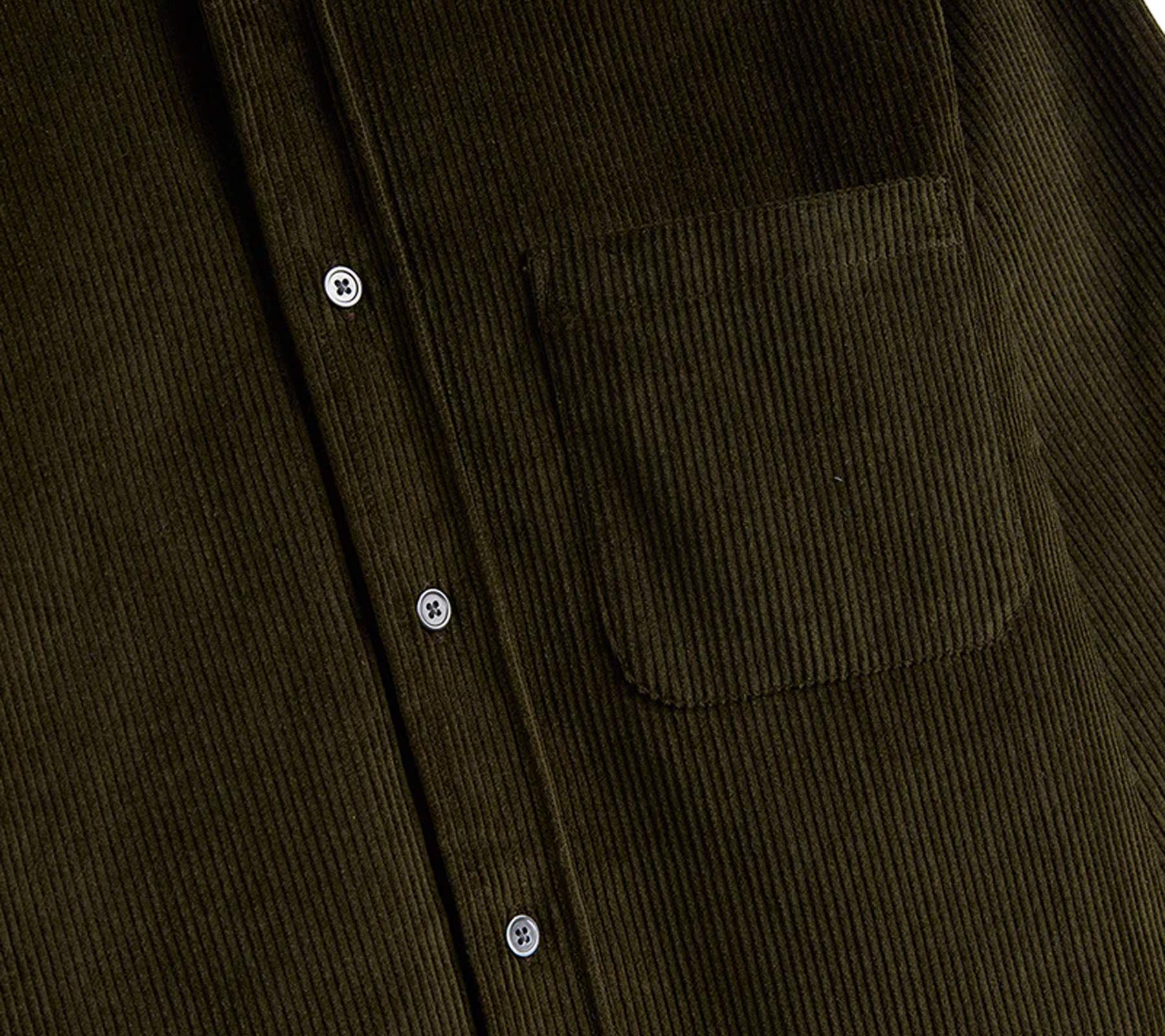 The Lobo shirt is made using heavyweight cotton corduroy, adding a bit of texture to this season's mix. Featuring a patch pocket on chest, buttoned placket, and button-down collar at front and back.