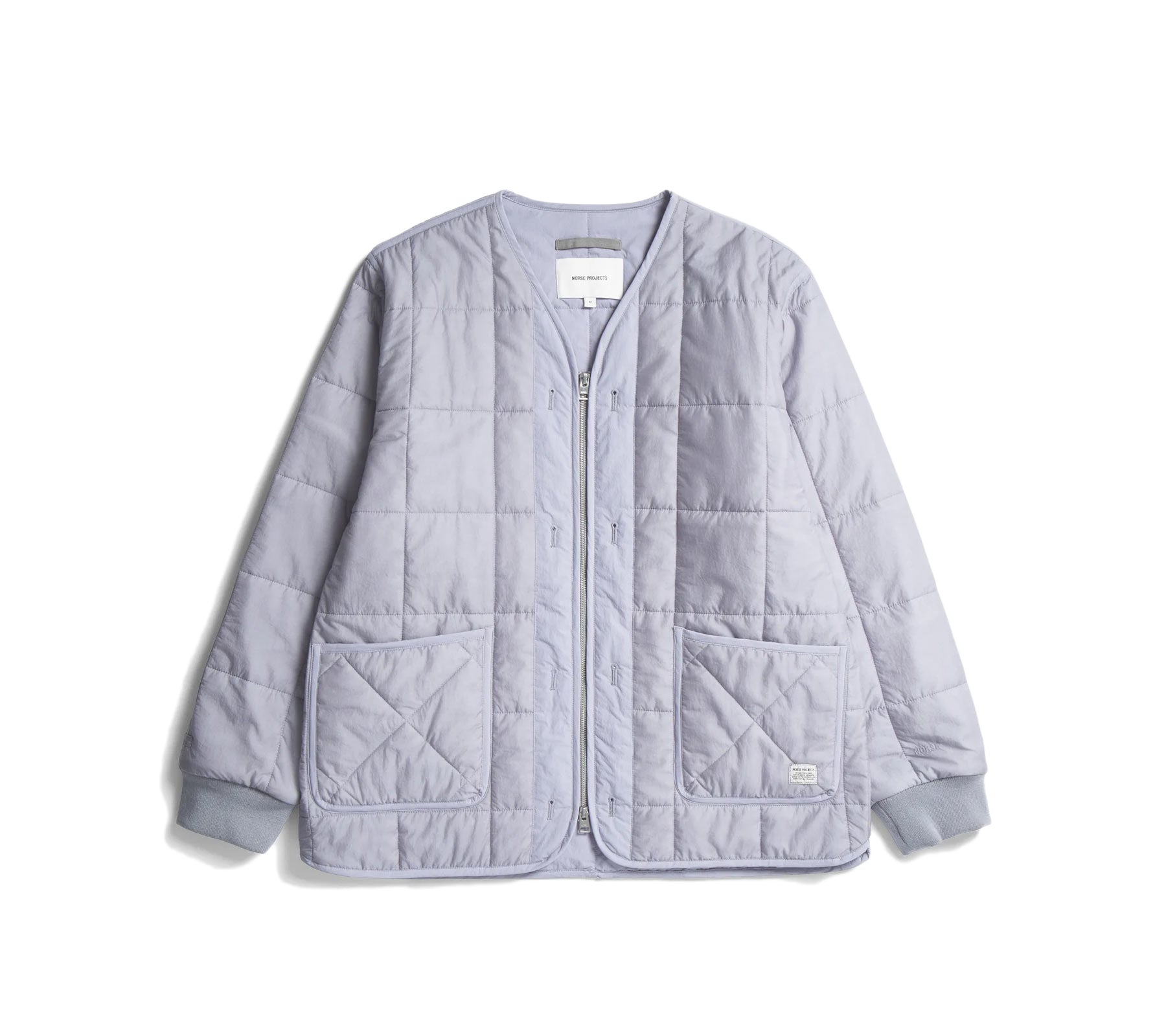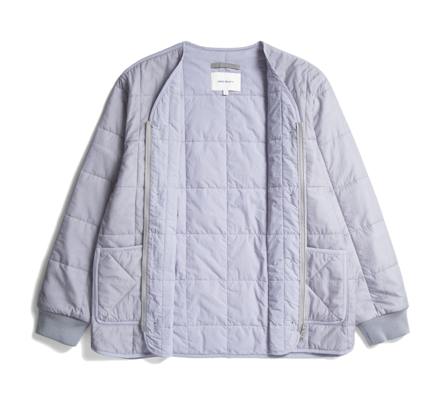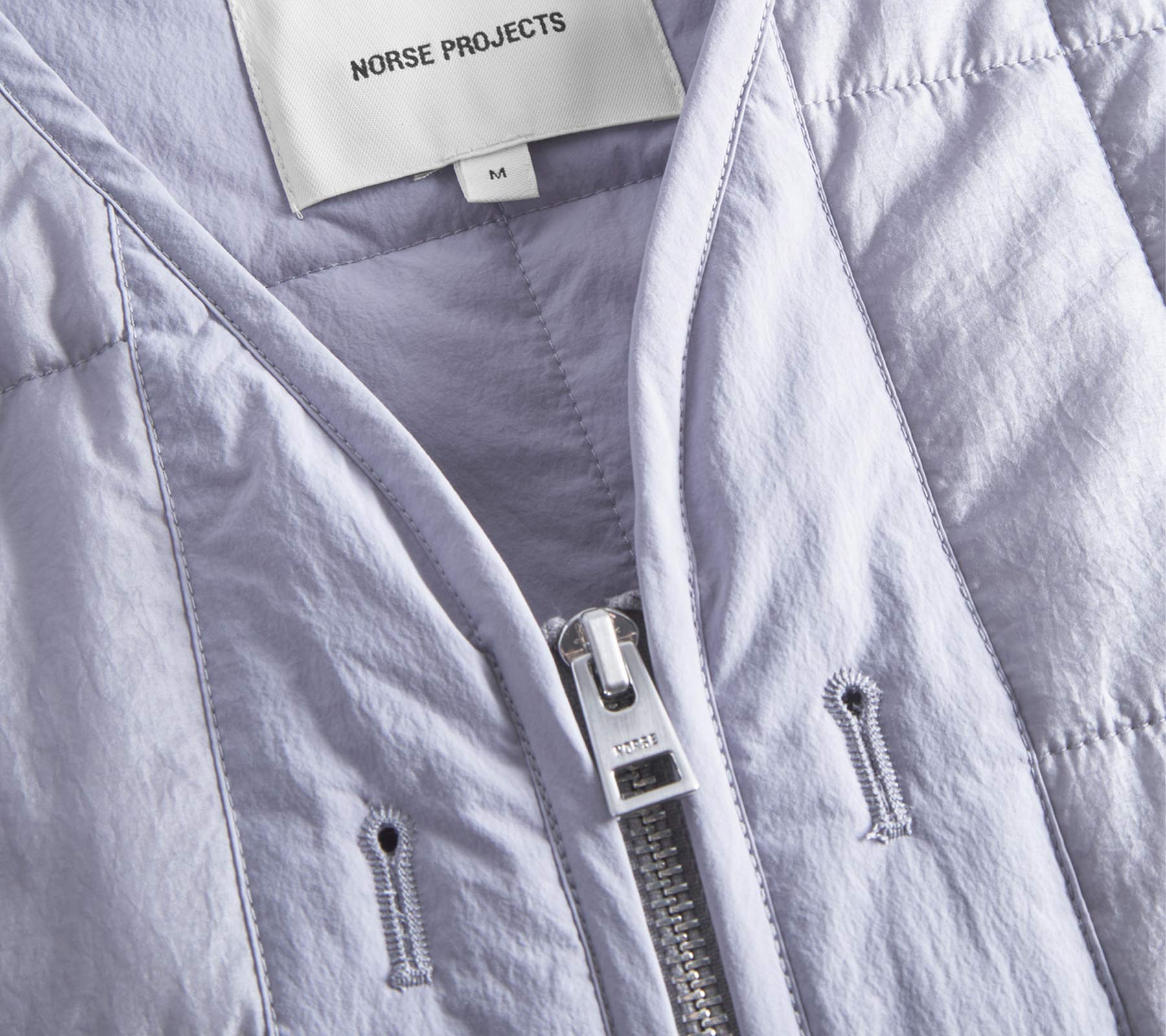 The Military Liner is inspired by US M-65 parka liners. It is an insulated jacket designed for layering developed in a water repellent Japanese parachute nylon. A light and soft technical fabric that allows insulation to fully loft. Features include front patch pockets, contrast fabric binding and trim, large quilting pattern, and zip front closure. This jacket has a hidden back attachment strap making it compatible to wear with Norse shell pieces.