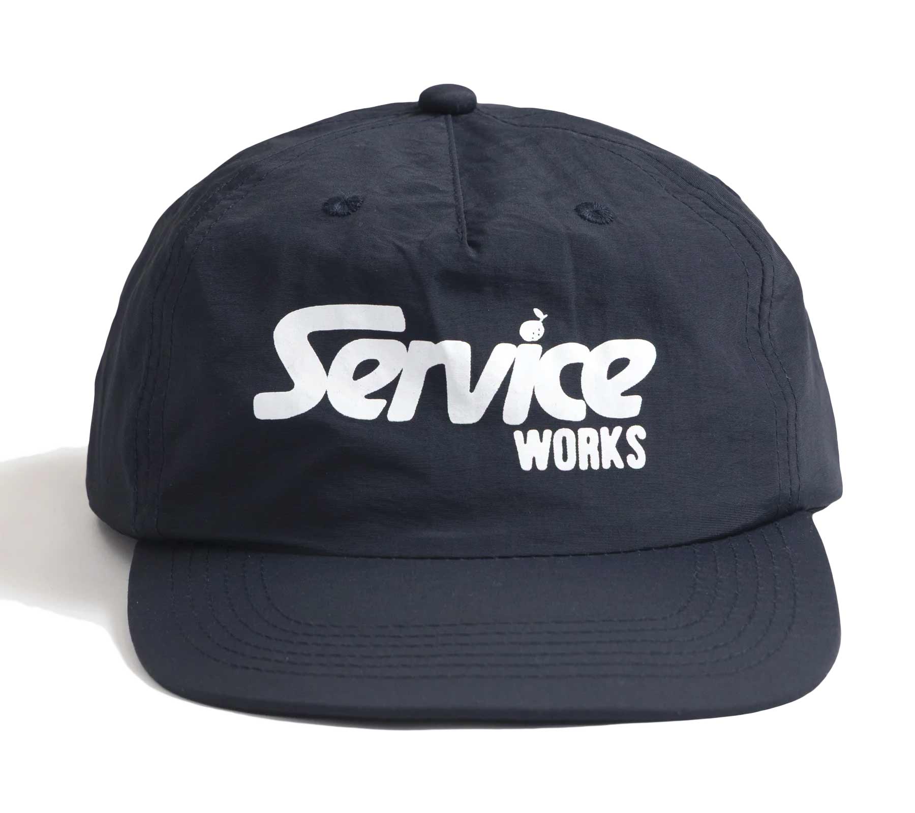 Nylon Drivers Cap by Service Works. A low profile trucker style cap constructed from 100% nylon. Features an elastic adjuster and screen printed graphic.