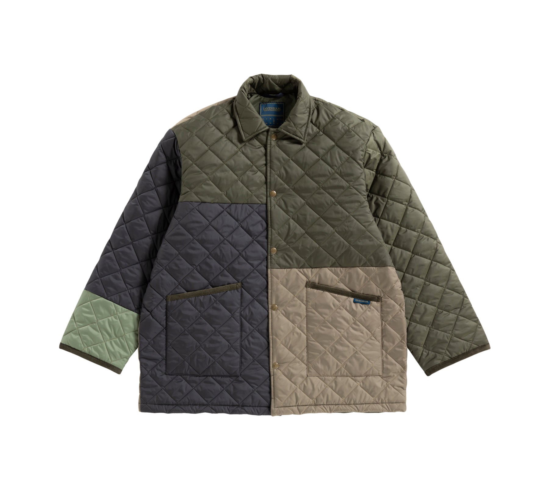 The art of patchwork quilting has long been used as a way to make use of small bits of fabric and transform what would of ended up as a waste product into something beautiful and functional. At the Lavenham factory they are committed to ‘using up’ as much of their existing fabric stock as possible before buying anything new. This patchwork collection brings these two ideas together, and utilizes quilt types from across the collection, piecing them together to create something new and unique. This specific jacket is an oversized version of the classic Denham jacket, in patchwork quilt. "Oversized" for a modern, casual look, it still fits true to size with plenty of room for layering. Features 2 patch pockets, silver press stud fastening and cut from the signature 2” diamond quilted recycled polyester, affectionately named ‘Lavenster’. #LV6064