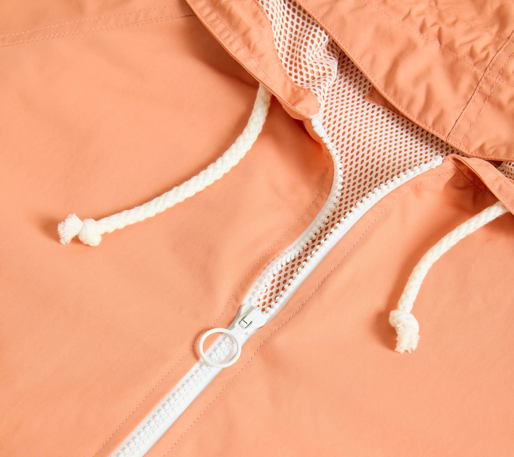 A vibrant lightweight windbreaker jacket that will add some flair to your wardrobe. Crafted especially from a fabric known for its durability, strength, and resistance to water, with over half the fibers being upcycled. Features drawstring hem & hood, elasticated cuffs, and double-way zip.
