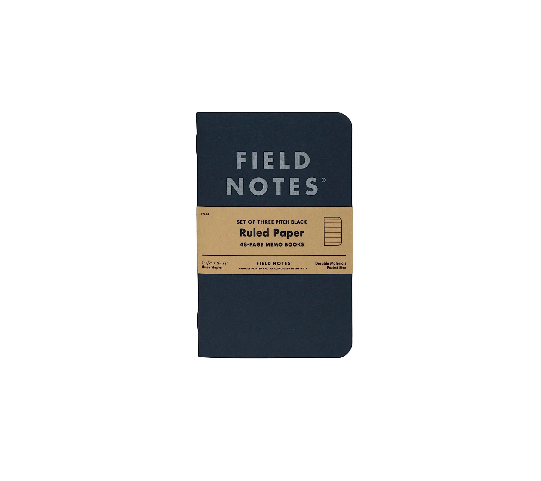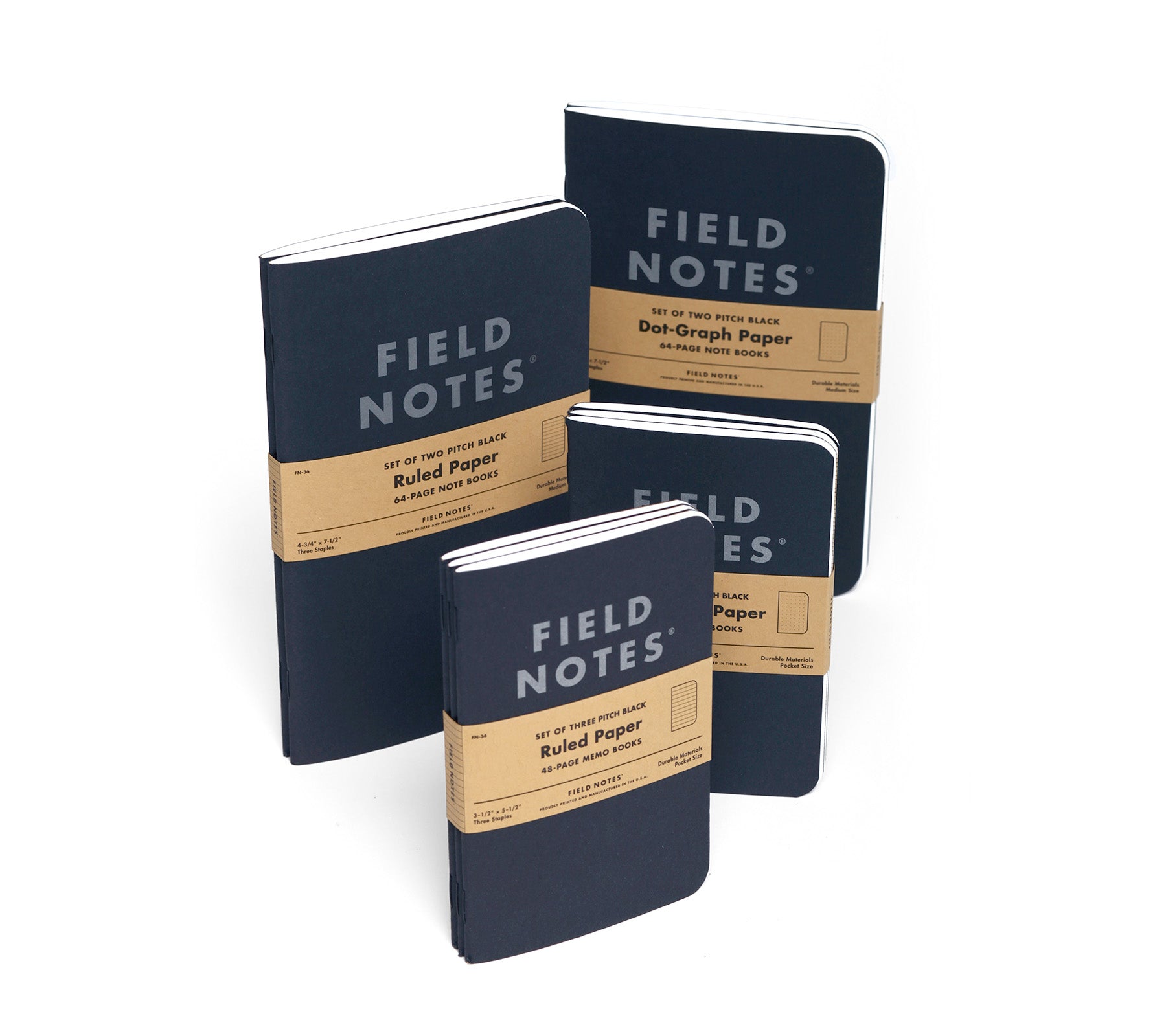and it quicky became one of the most popular memo books in the Field Notes lineup. After a few reprints, some upgrades have been made, and it is now offered in a range of Pitch Black books with a variety of options. Duplexed covers, two sizes, and two paper line types.
