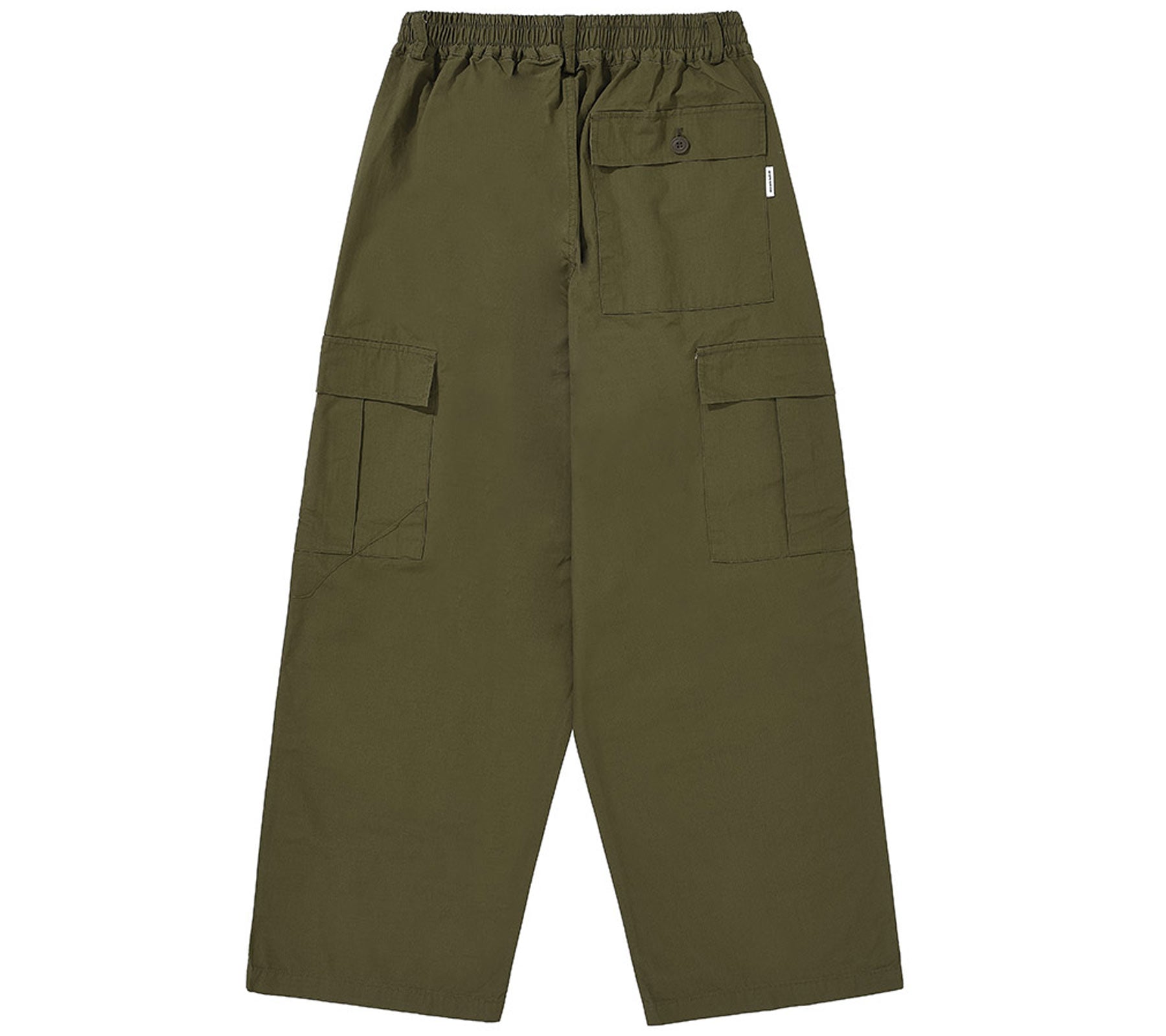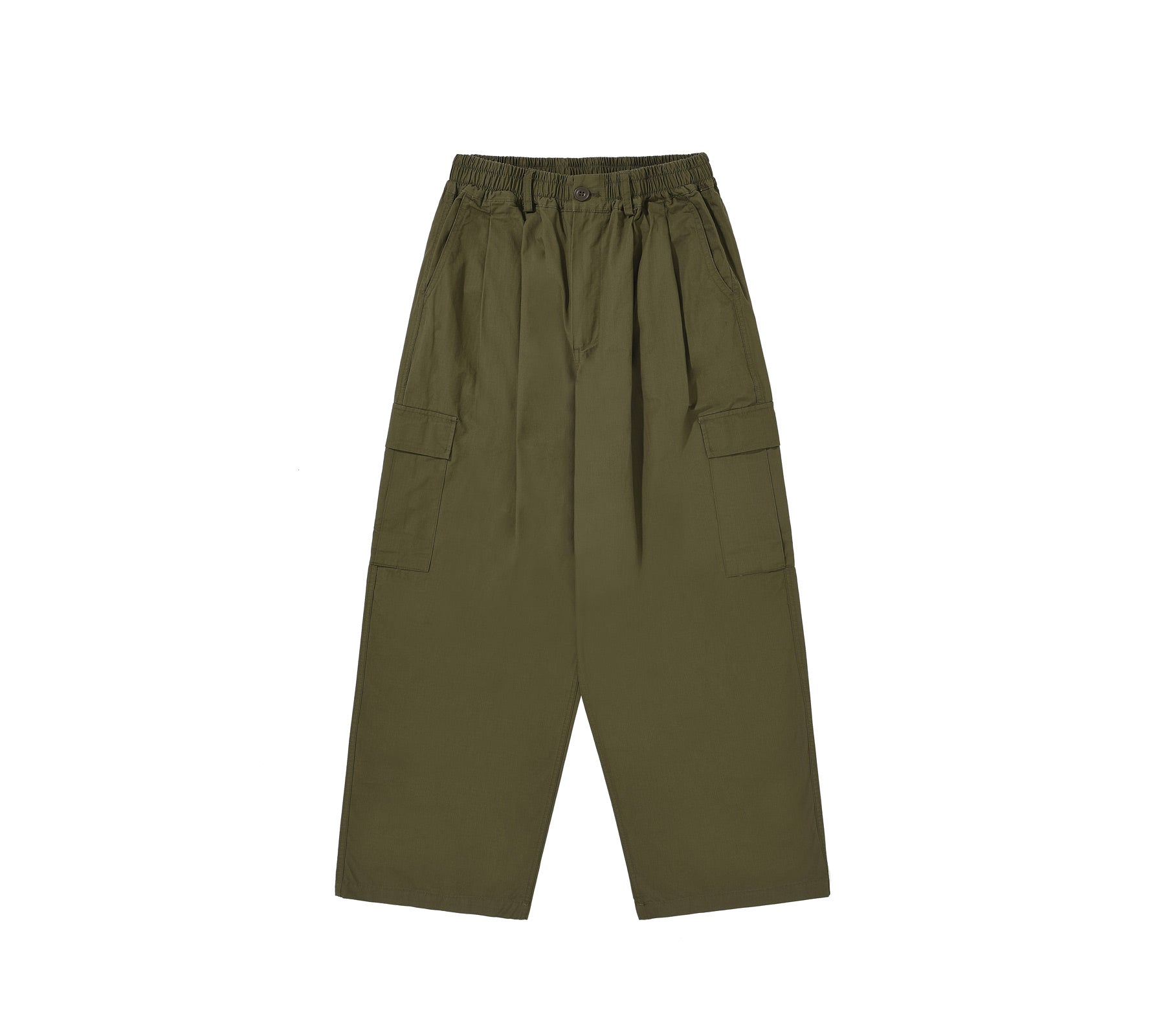 Very loose cargo pants featuring a side pocket for practicality. Elasticated waistband (with belt loops) for comfort, regardless of size or body type. Loose-fitting and utilitarian, yet stylish enough for everyday wear.