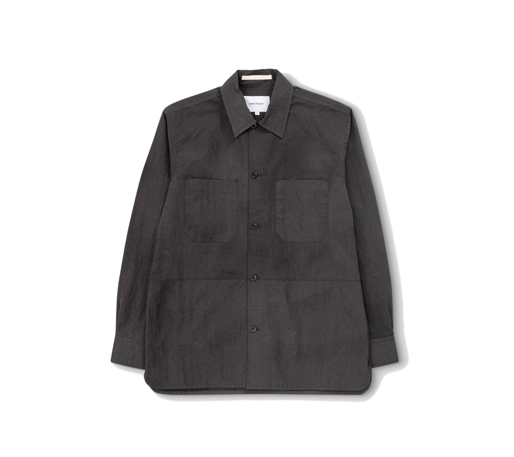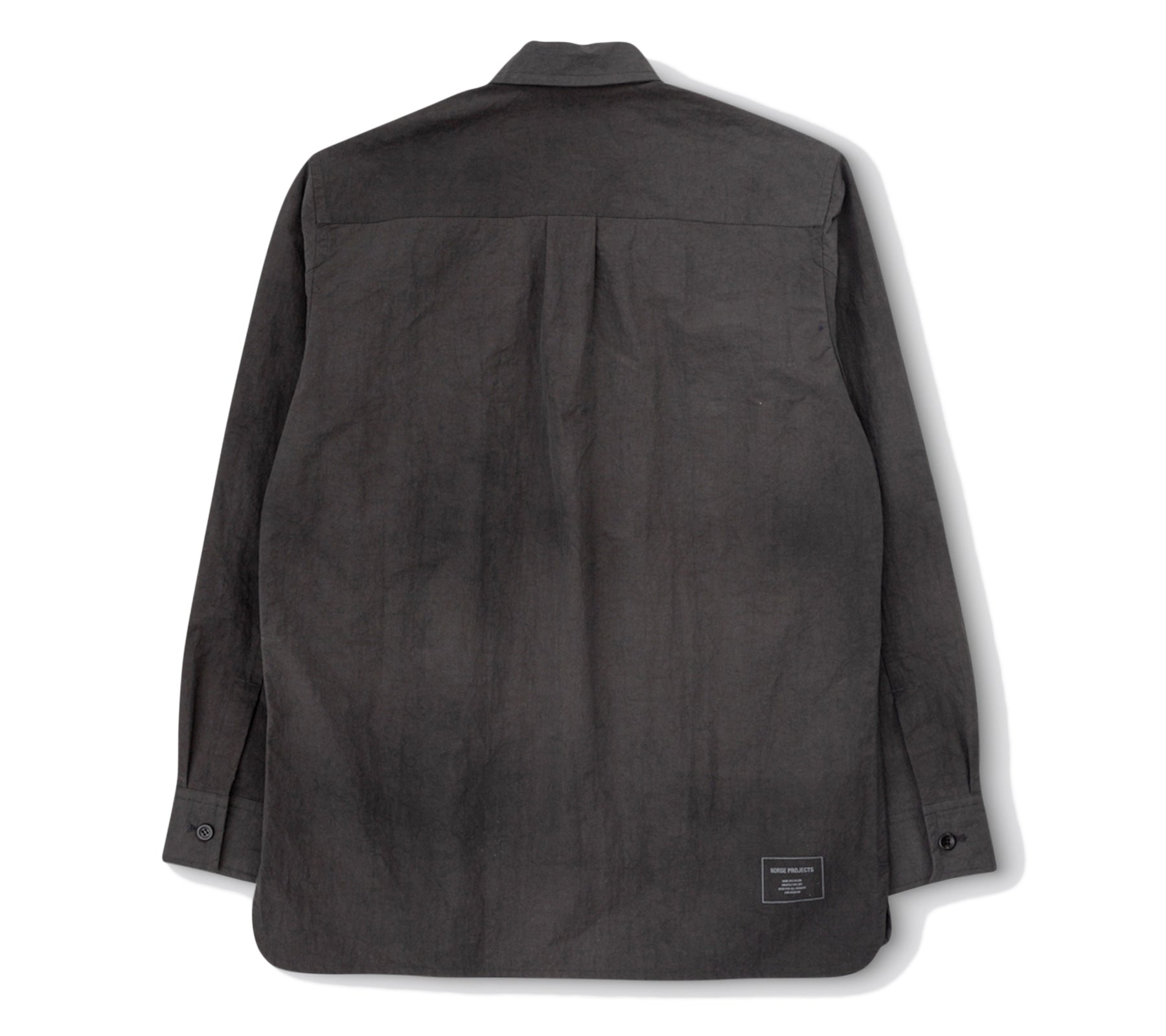 A relaxed overshirt, constructed from a densely woven nylon. This fabric is finished with a special garment dye process resulting in a distinct and irregular dyed surface, and finally treated with a PFC-free DWR finish. This style features two chest pockets, and panel detail on the front. Finished with box pleat at back, and corozo button closure. Due to the unique dye effect, no two garments will look the same.