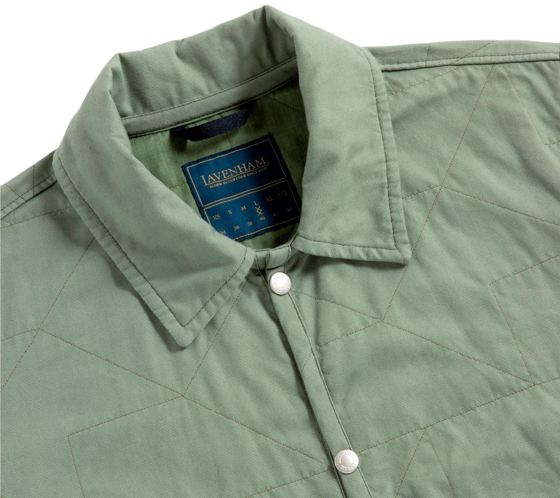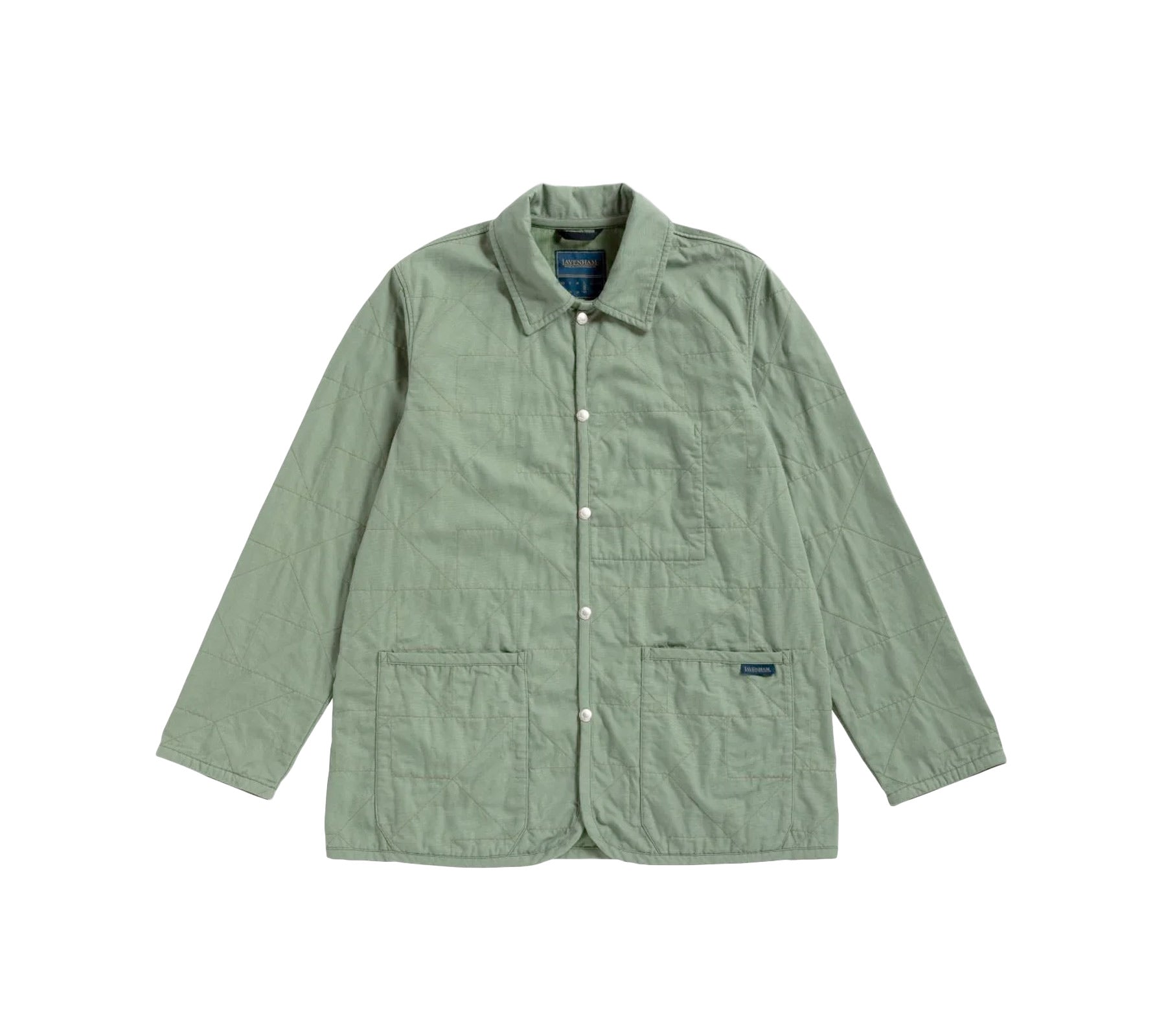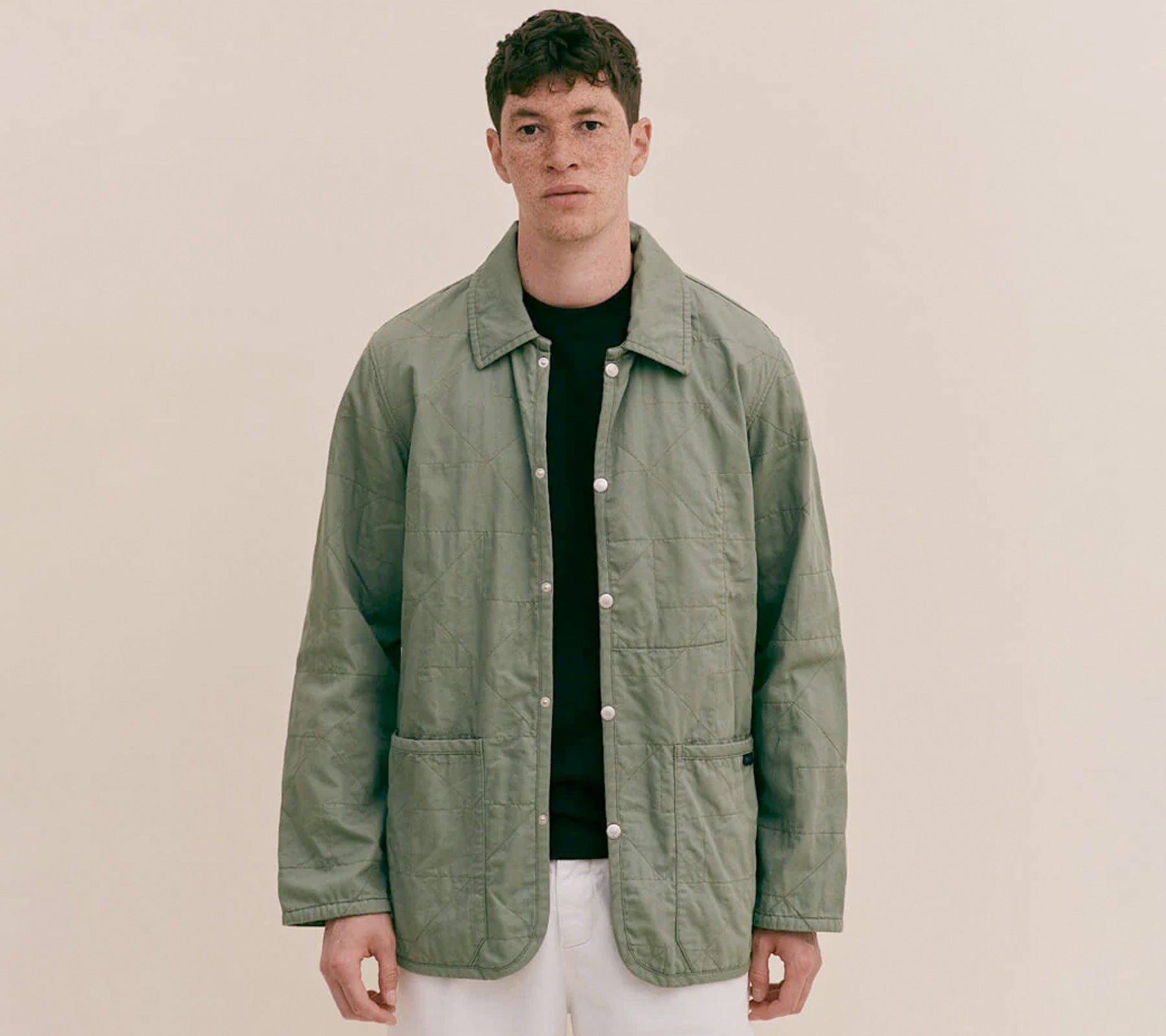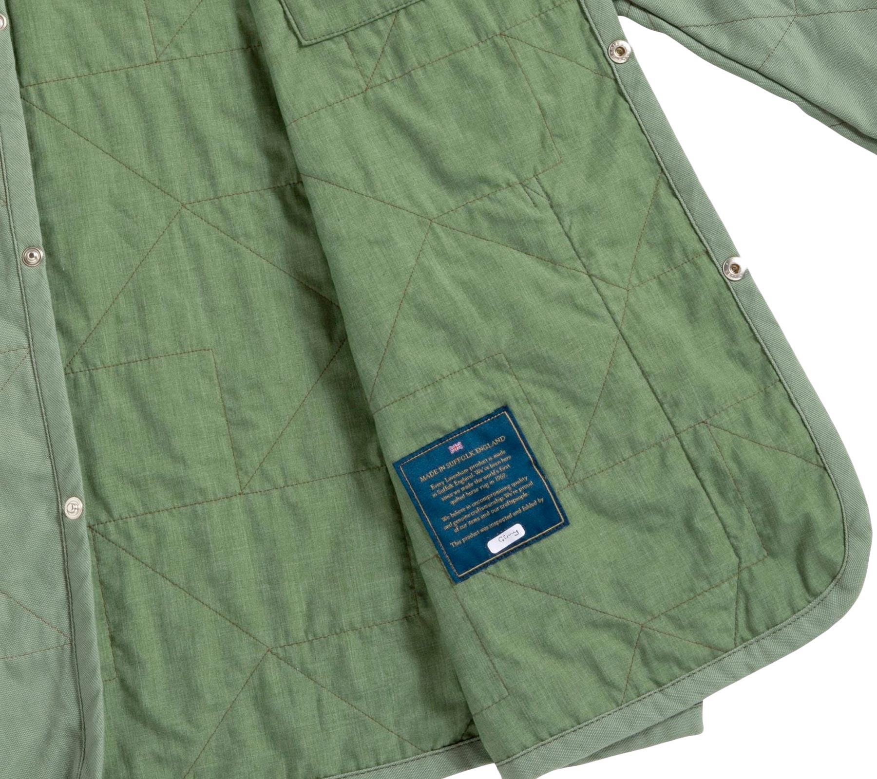 Made from a substantial cotton originally used to make traditional workwear garments, the jacket has been washed for a slightly worn appearance and softer hand feel. Quilted with a unique geometric pattern and without wadding for a lighter garment ideal for spring and summer. With a relaxed workwear inspired fit.