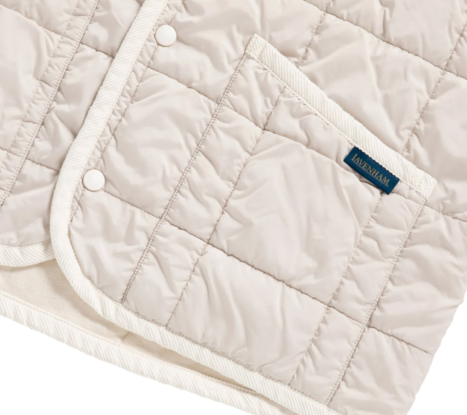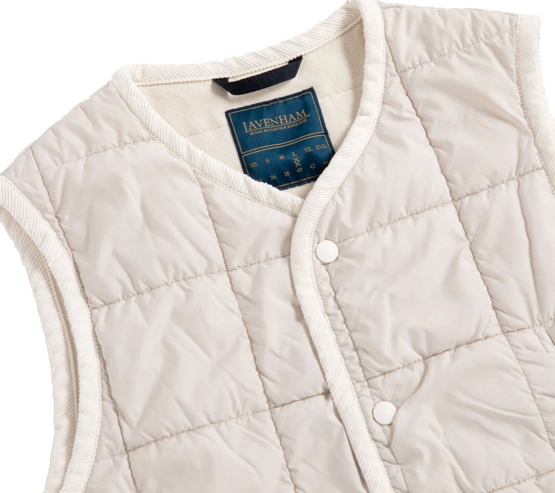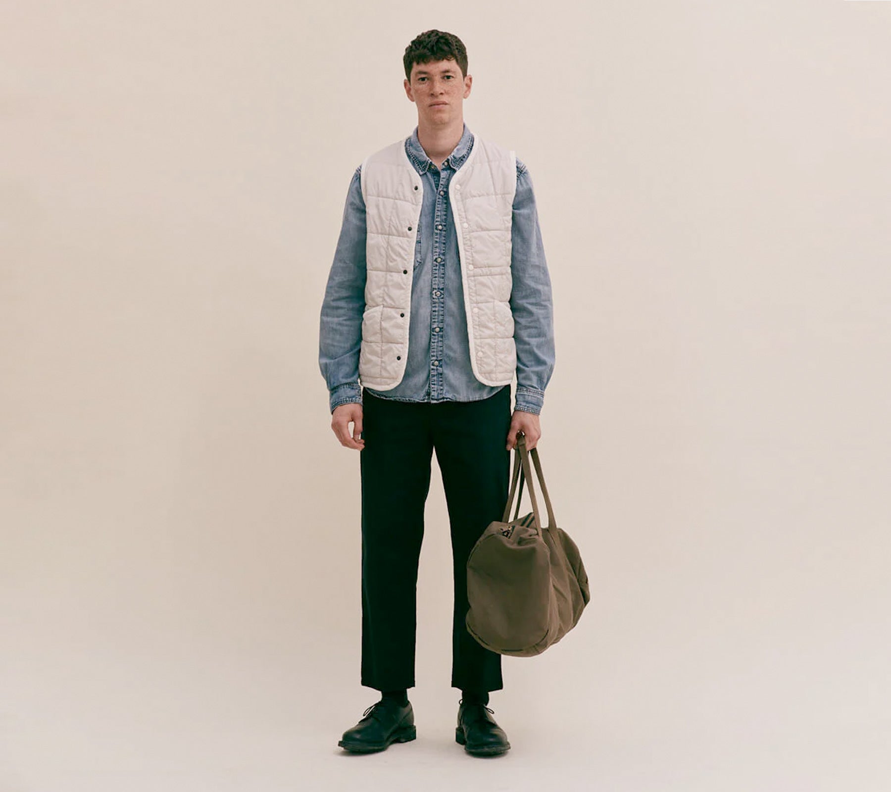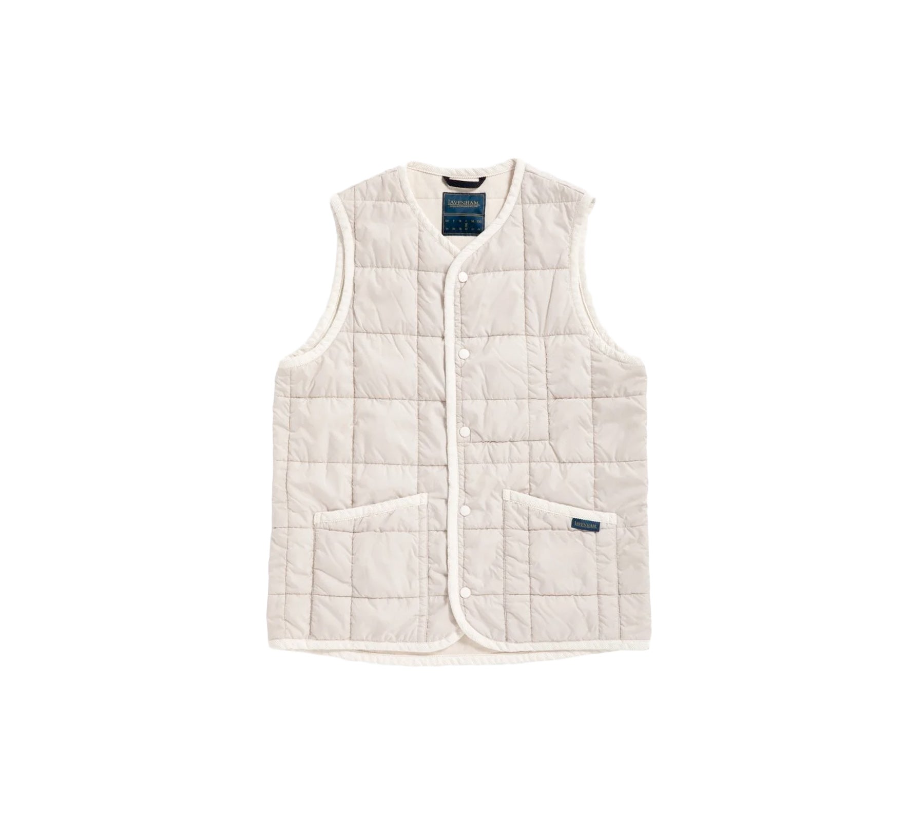 Quilted in a large square pattern the gilet is lined with a soft cotton jersey and features a 100% recycled polyester outer fabric. Garment washed for a puckered, slightly aged appearance, the piece features a straight fit and can be worn either as an inner or an outer layer.