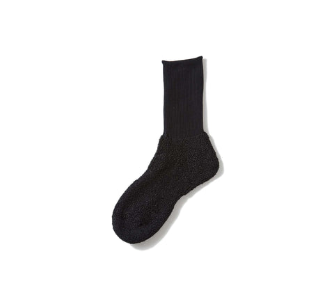 These WASHI PILE CREW SOCKS are made of crisp Washi (Japanese paper) yarn, featuring refreshing pile lining. Made out of natural Manila hemp fiber that is also used to make paper currency, the Washi yarn has excellent water-absorbent and moisture-wicking properties. Although it is usually difficult to pile knit Washi yarn, a special machine and artisanal craftsmanship make it possible. Ref 1511.