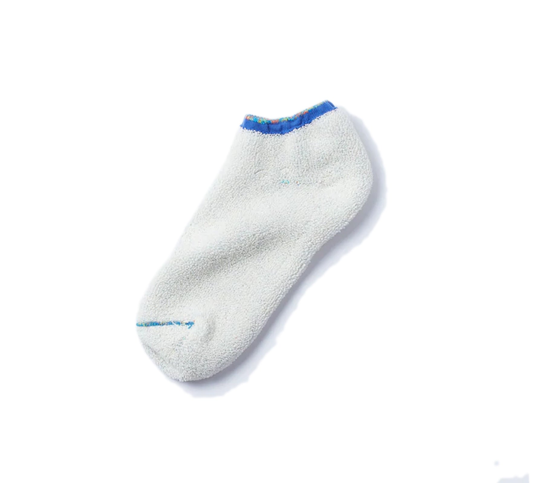These WASHI PILE SHORT SOCKS are made of crisp Kasuri dyed Washi (Japanese paper) yarn, featuring refreshing pile lining. Made out of natural Manila hemp fiber that is also used to make paper currency, the Washi yarn has excellent water-absorbent and moisture-wicking properties. Although it is usually difficult to pile knit Washi yarn, a special machine and Japanese artisanal craftsmanship have made it possible.