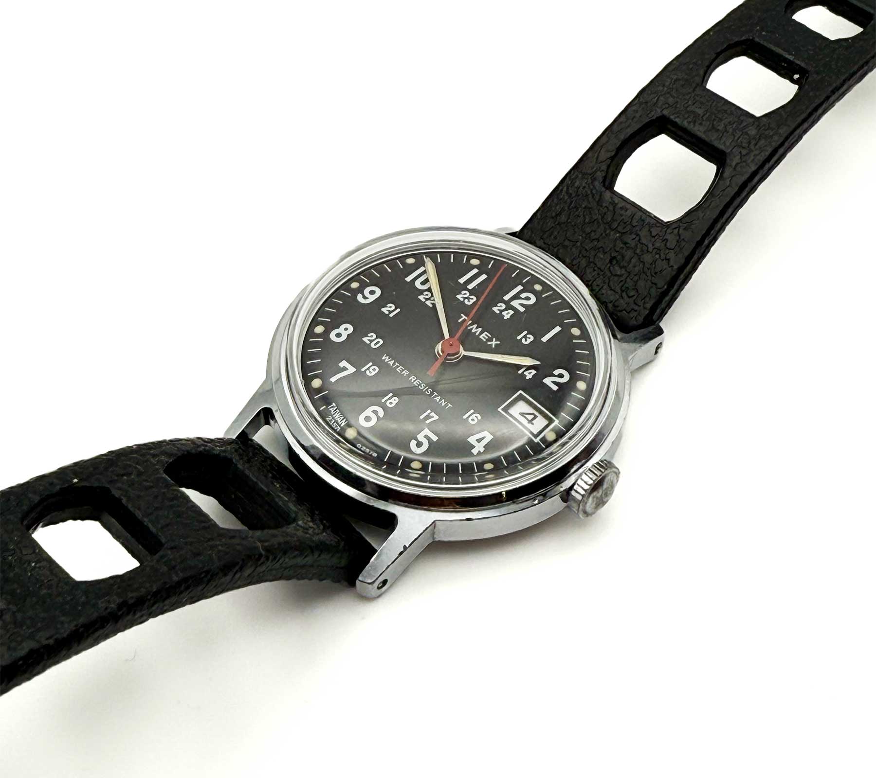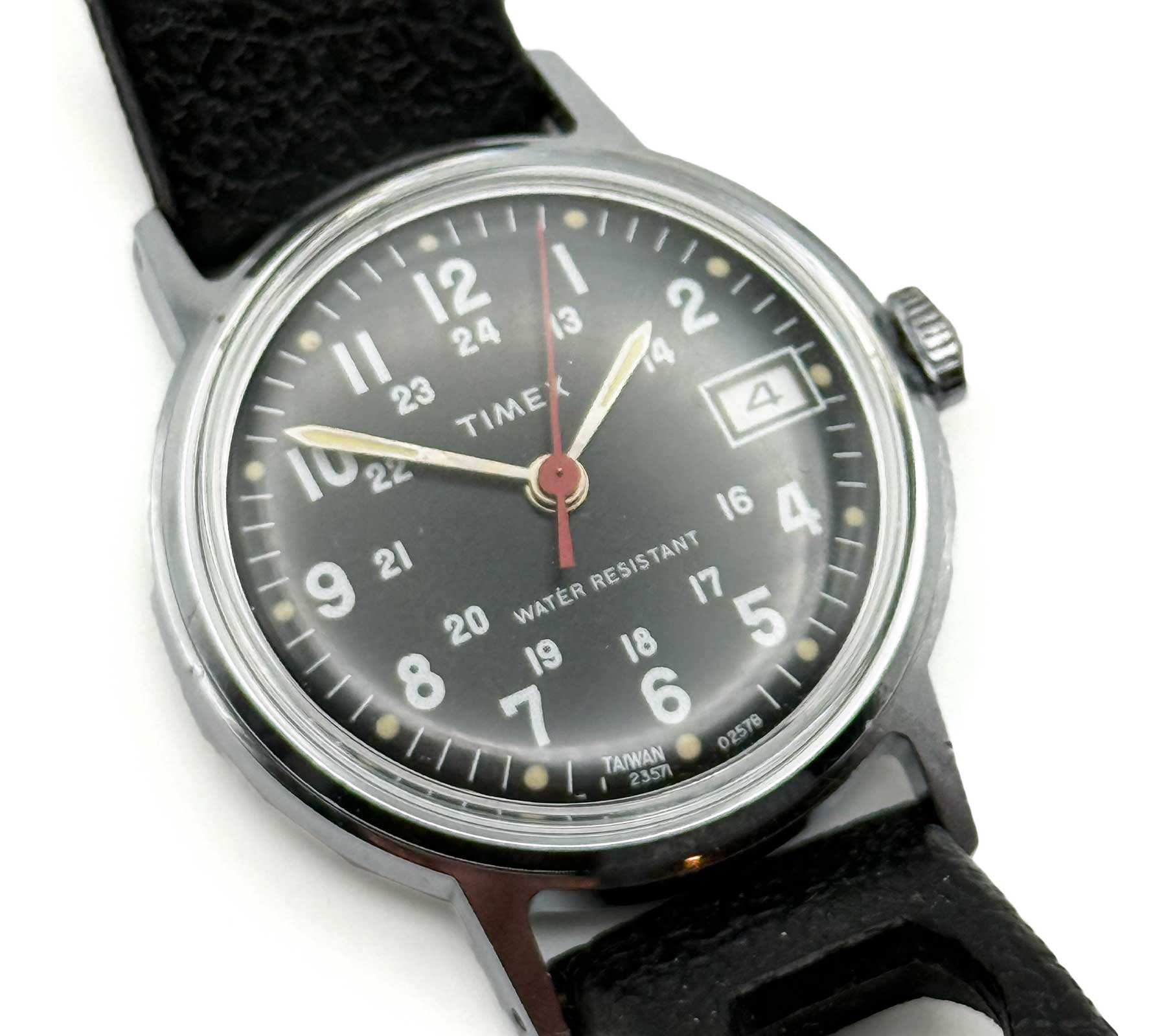 Montre Timex Marlin vintage avec cadran militaire 24h dans un boîtier argenté.