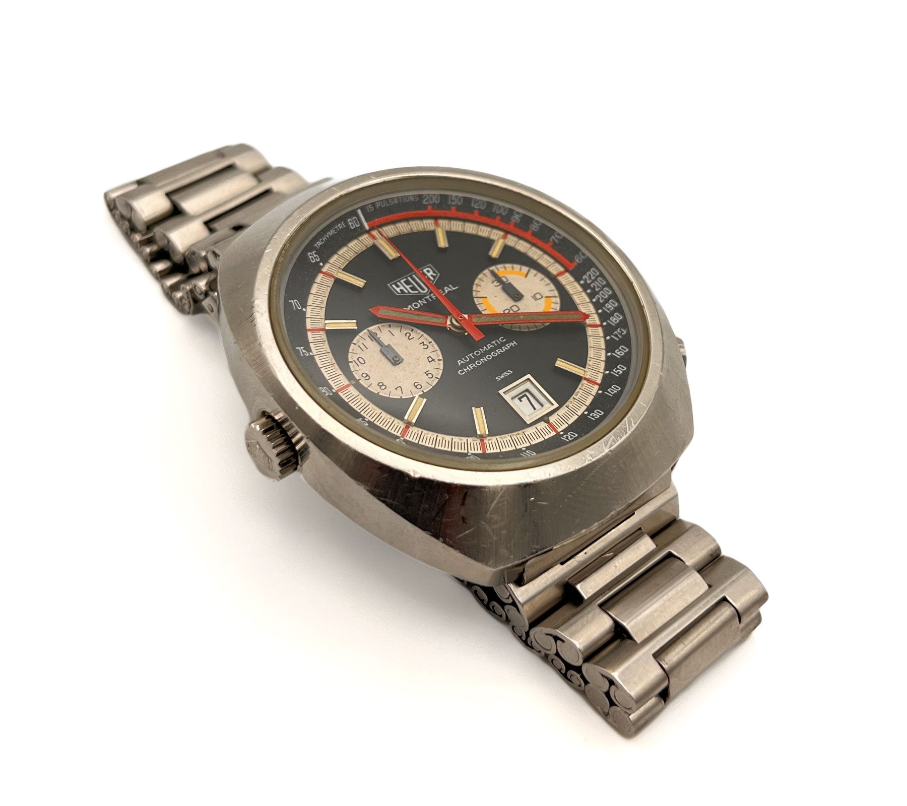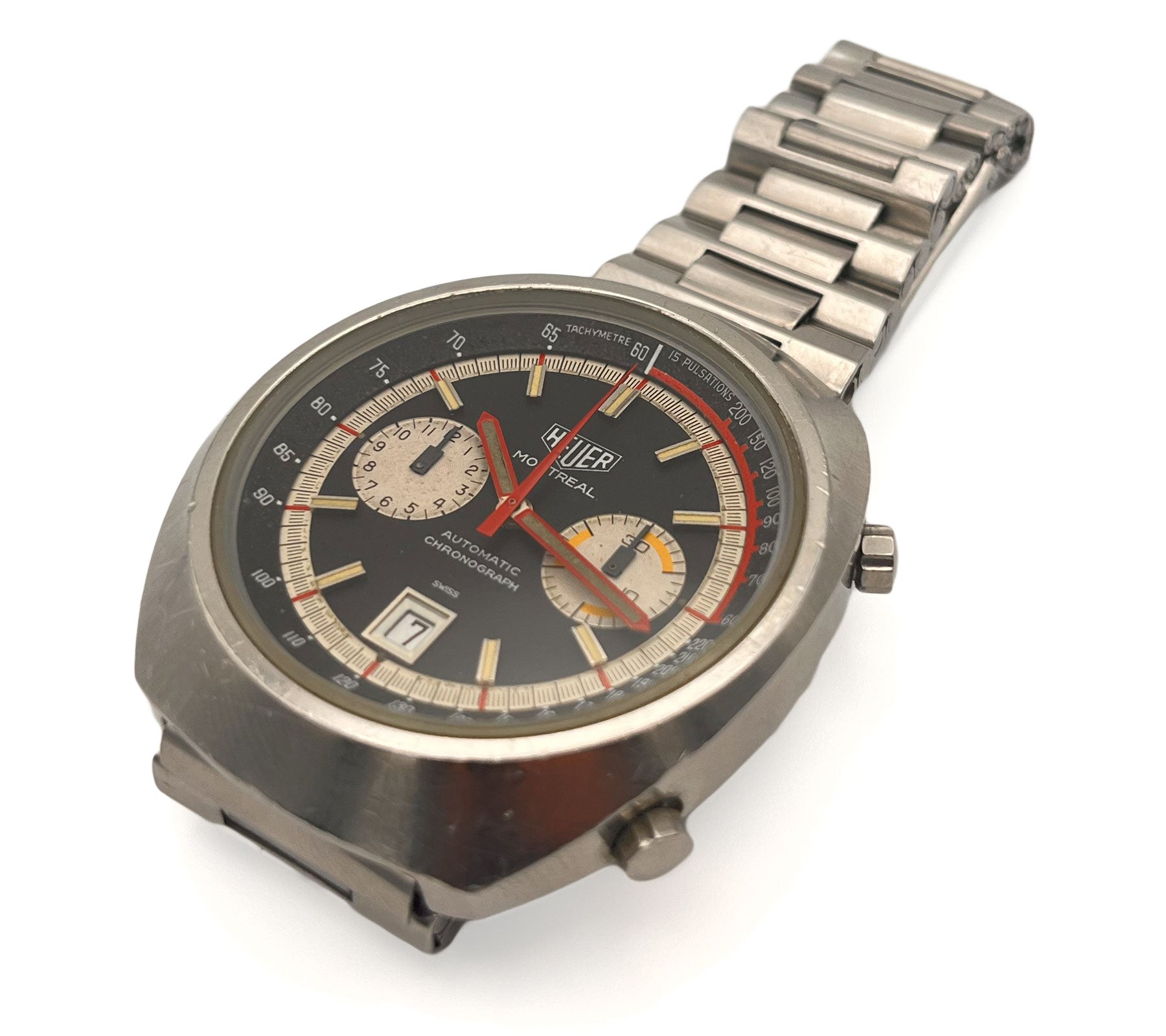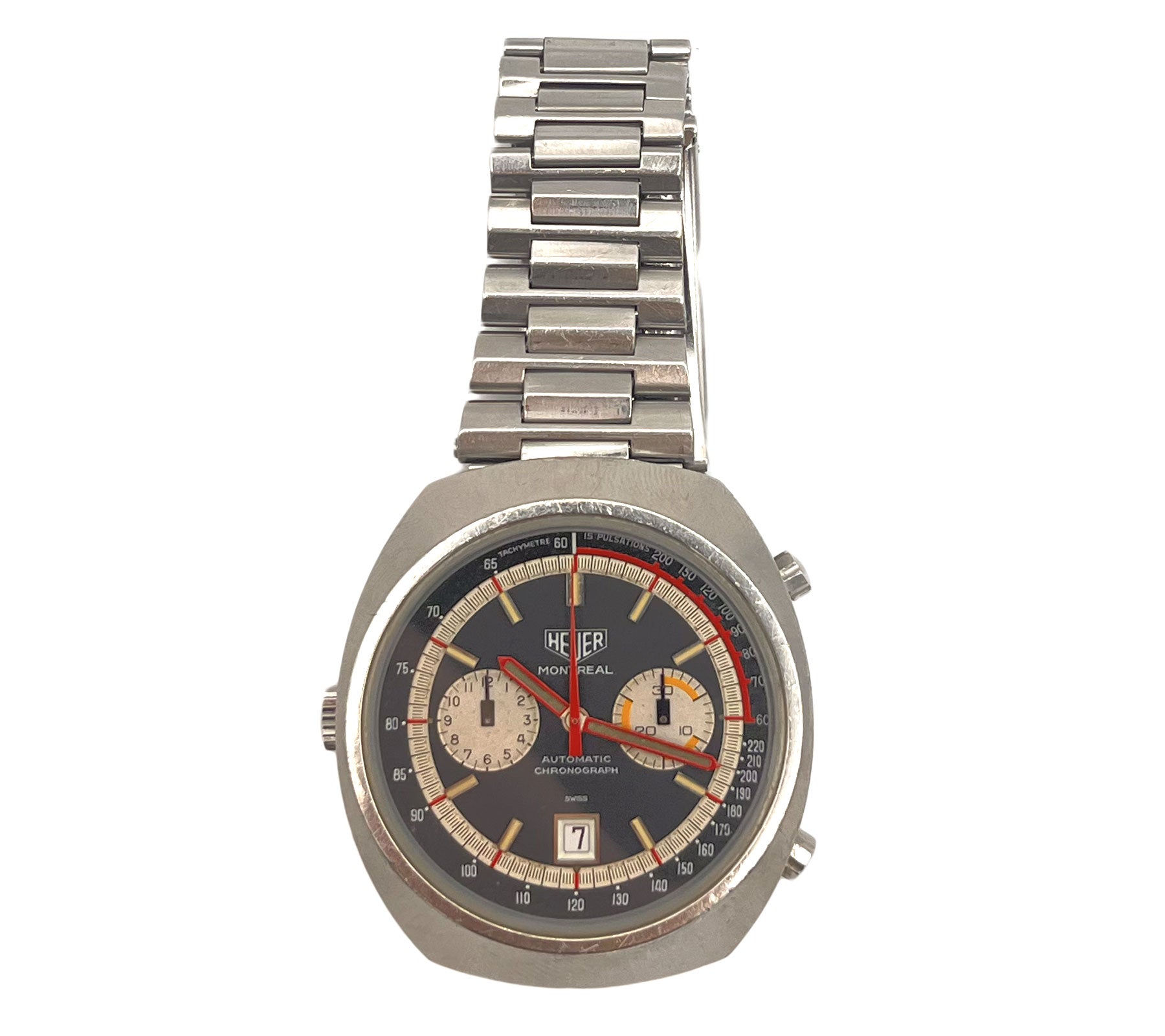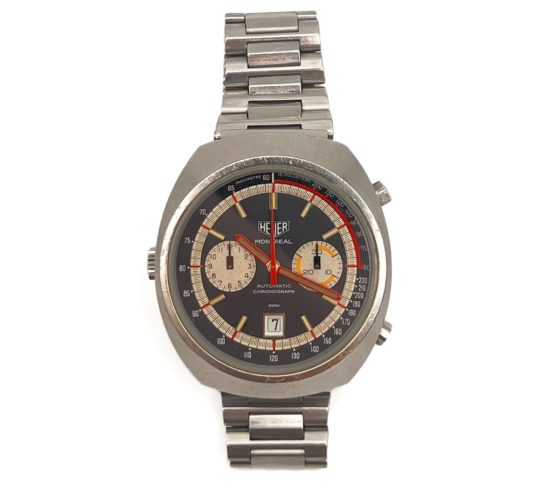 Le chronographe Heuer Montreal 110.503 est une montre vintage emblématique, reconnue pour son design audacieux et coloré ainsi que pour ses liens étroits avec le monde de la course automobile. Elle se distingue par un boîtier coussin de 42 mm, un mouvement automatique Heuer Calibre 12 avec micro-rotor, ainsi qu’un cadran unique intégrant des échelles tachymétrique et pulsométrique.