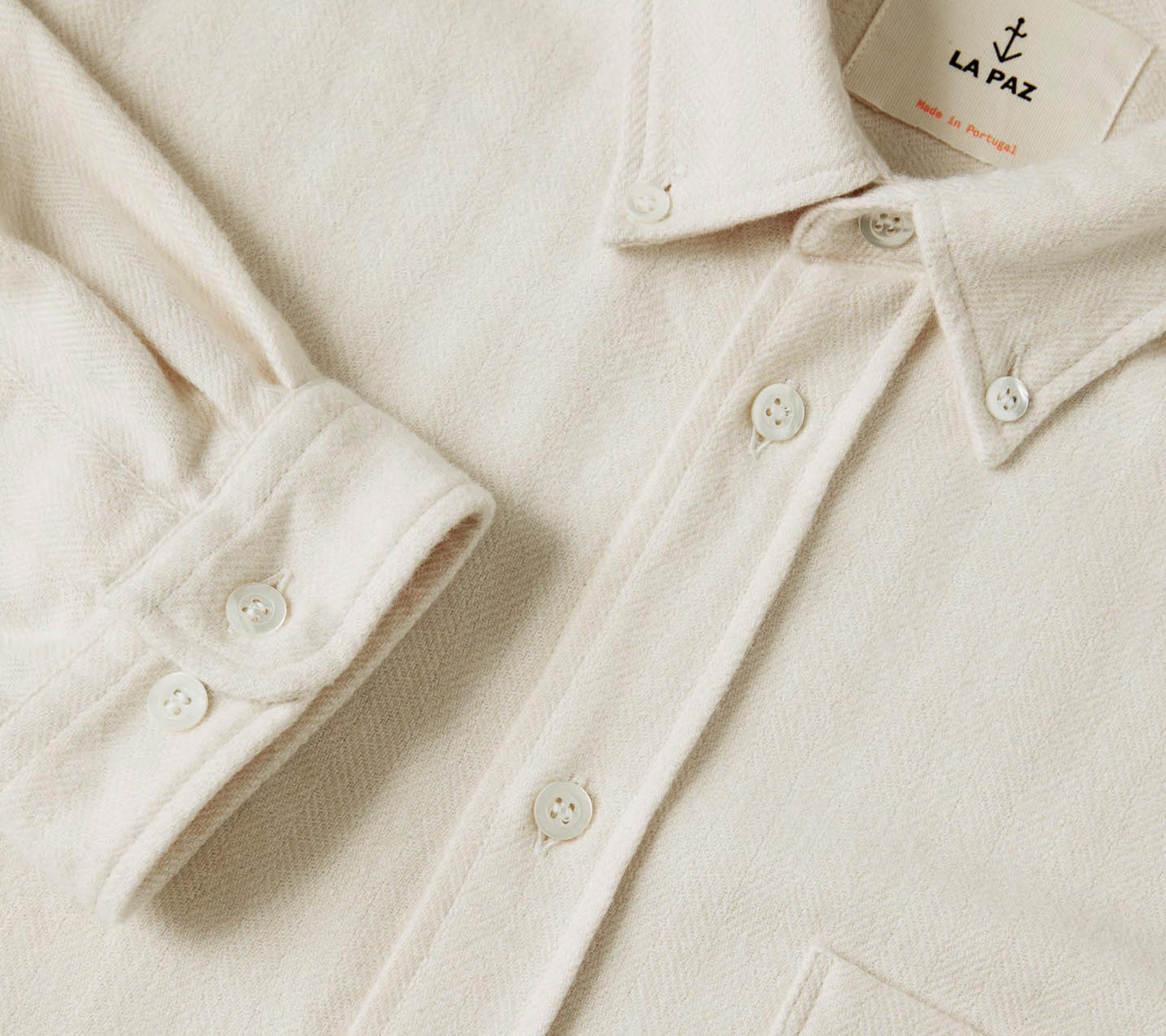 Le Branco est votre chemise classique à col boutonné, légèrement ajustée et parfaite pour toutes les occasions ou tenues. Confectionnée en 100 % coton doux de poids moyen avec un motif subtilement en chevrons, elle est dotée d’une poche poitrine unique et de boutons en nacre.