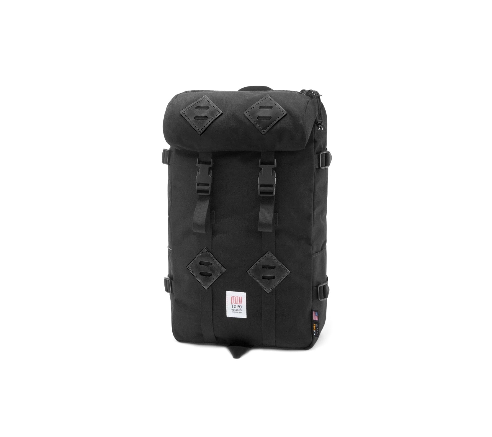 Le Klettersack classique de Topo Designs. Le compagnon de voyage idéal qui a l'air aussi élégant sur le campus que lors d'une réunion d'affaires, d'une randonnée sur le sentier ou d'une sortie de la ville. Conçu pour gérer n'importe quel environnement avec un extérieur en Cordura® 1000D et une doublure en tissu enduit, du matériel en plastique résistant et une fermeture éclair YKK. Utilisez les languettes de cils en cuir naturel pour fixer du matériel supplémentaire ou attacher un éclairage de vélo. Caractéristiques : poches latérales pour bouteille d'eau, fermeture par cordon de serrage au compartiment principal, pochette interne pour la plupart des ordinateurs portables 15", poche de sécurité intérieure zippée, poche à rabat supérieure zippée, bretelles rembourrées renforcées avec sangle de ceinture de sécurité, poignée de transport supérieure, boucle pour piolet, etc.