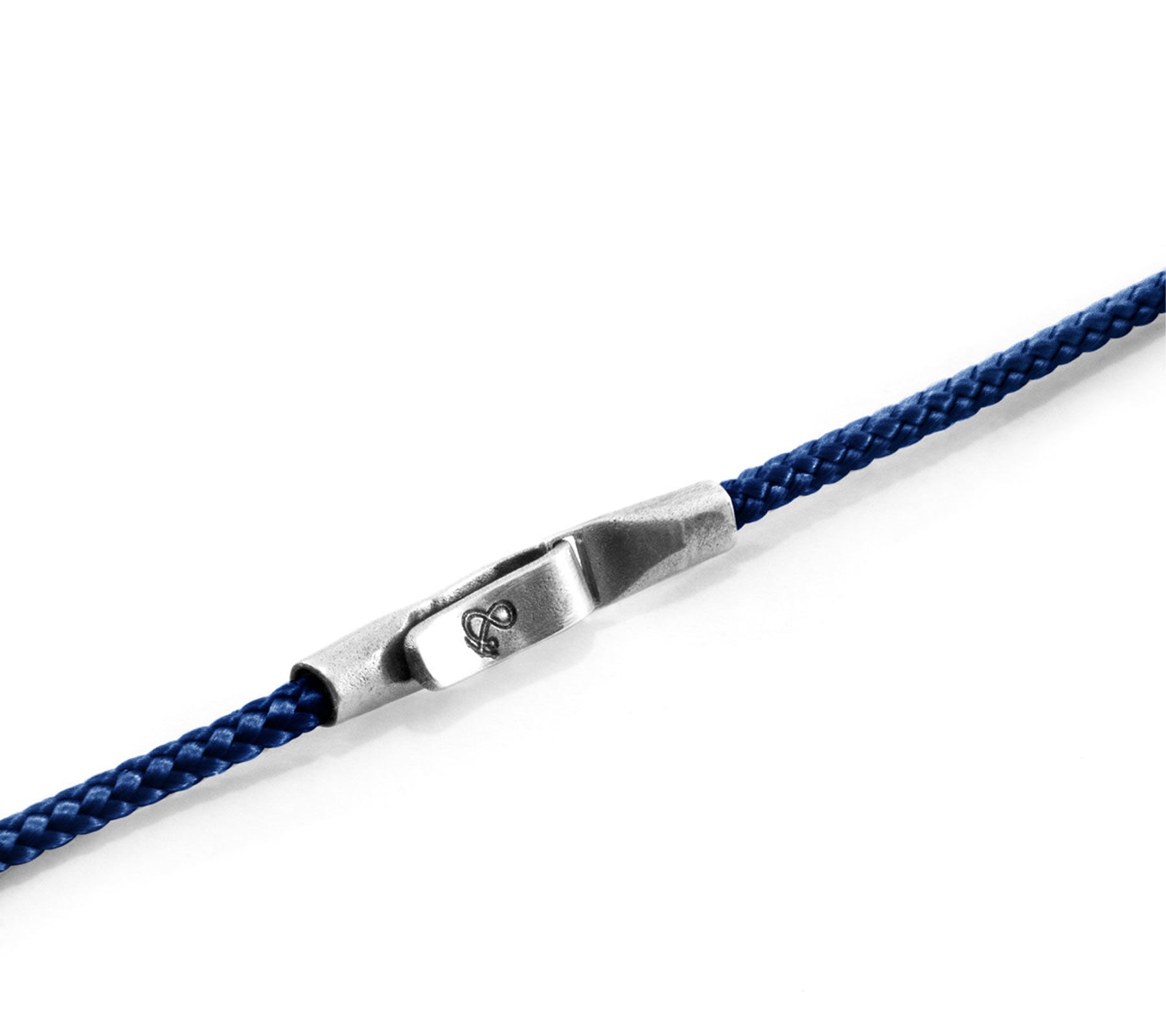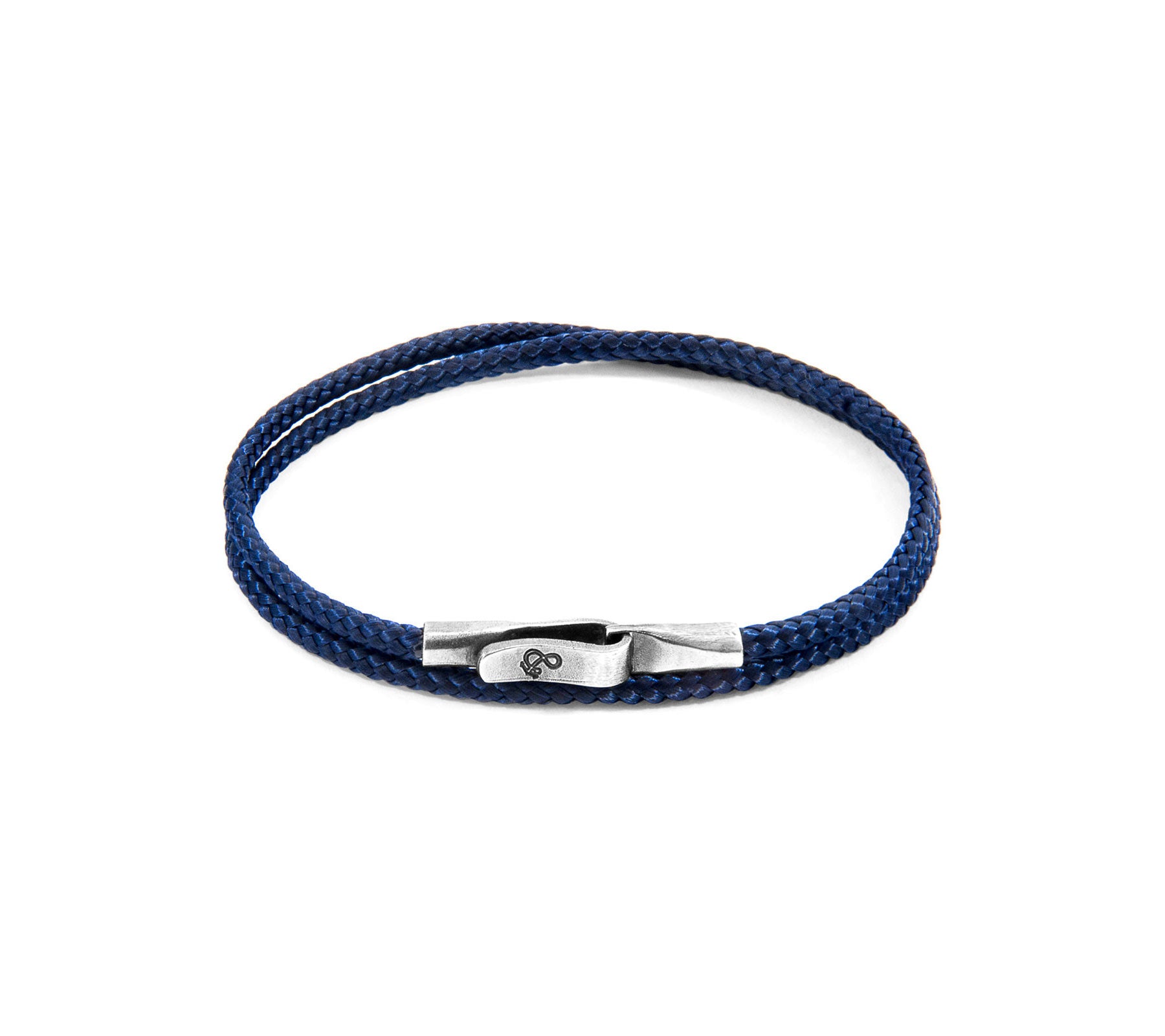 The Navy Blue Liverpool Silver and Rope Bracelet was both designed and skillfully handcrafted completely in Great Britain. Combining British craft manufacturing with a discerning modern-minimalist style, this ANCHOR & CREW bracelet features: 3mm diameter performance Marine Grade polyester and nylon rope (GB), secure solid .925 sterling silver flat clasp and hook (GB). To take the bracelet on or off your wrist, simply double wrap the bracelet, then slide the hook over the flat clasp and secure.