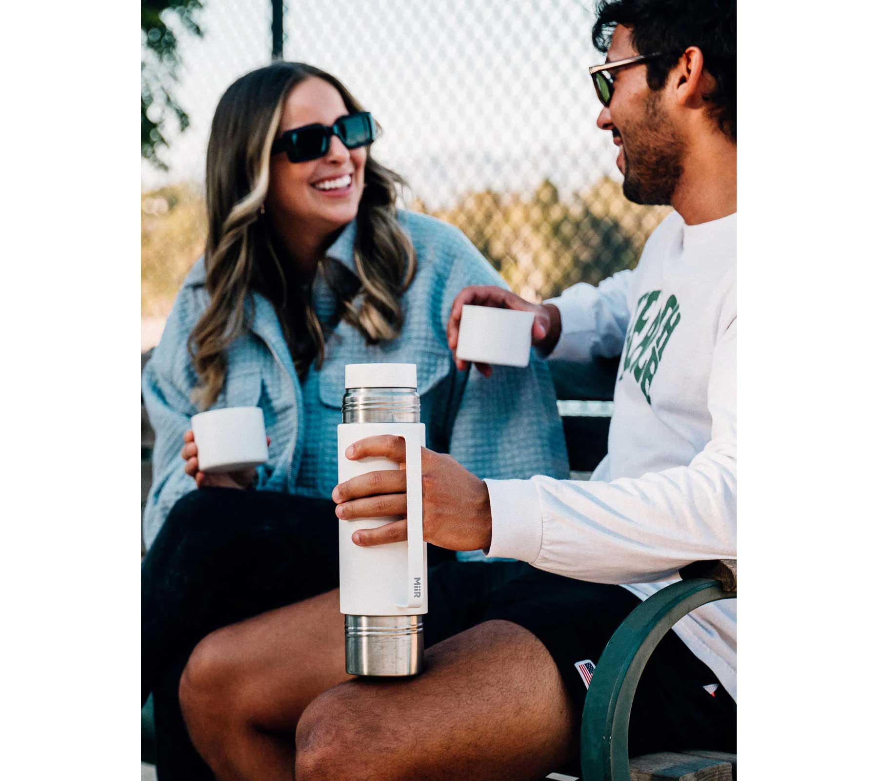 Tirant son nom du mot japonais signifiant « ami » ou « compagnon » (友), la MiiR Tomo de 1000 ml (33 oz) vous accompagne à travers le monde au rythme du partage. Cette capsule isotherme dotée d’une poignée antiroulis est conçue pour transporter, stocker et conserver vos boissons à la température souhaitée jusqu’au moment de les verser dans deux tasses isothermes à visser. Ou, si vous préférez, buvez directement sous n’importe quel angle grâce au couvercle intérieur étanche 360 Leakproof.