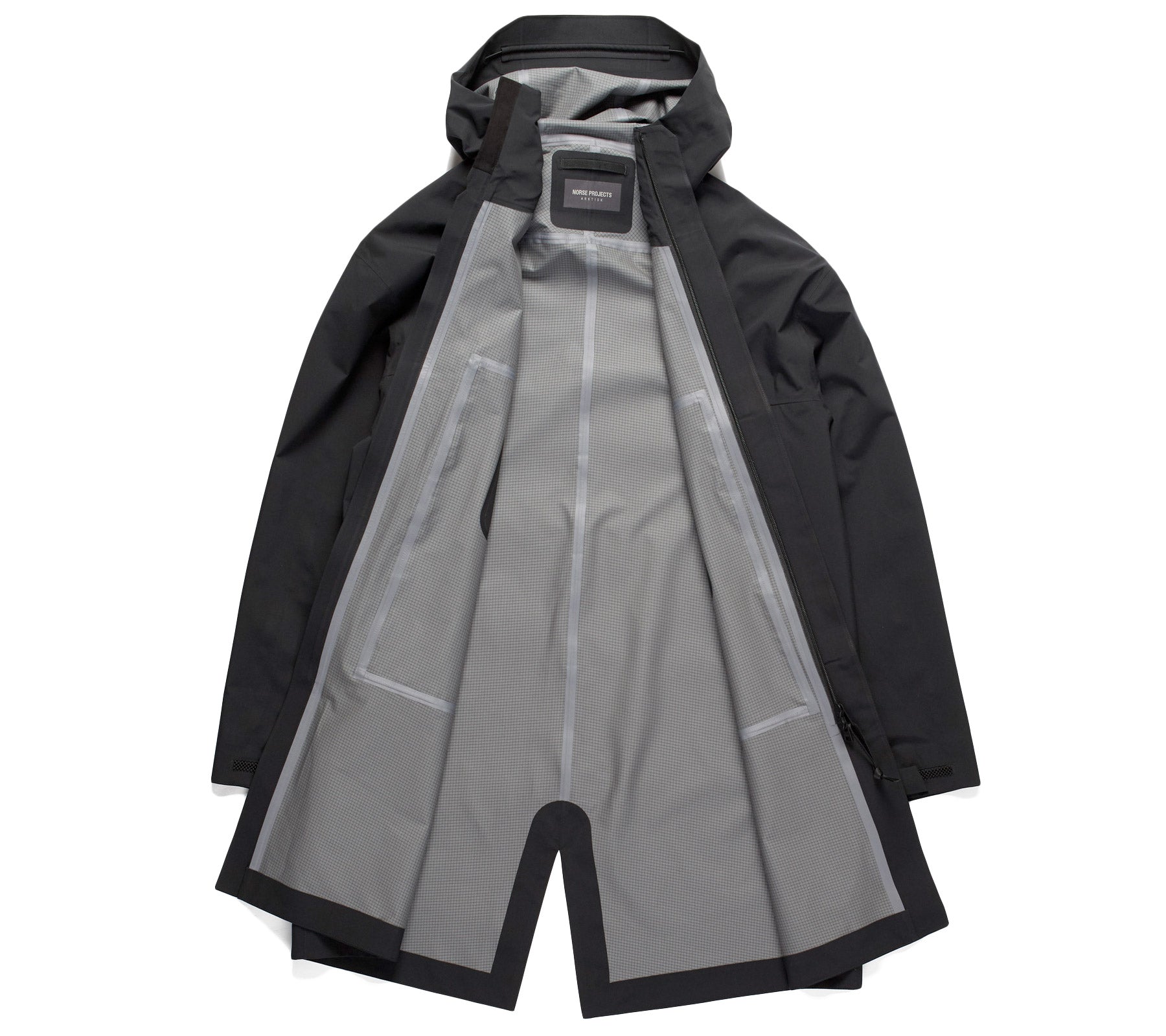 This garment uses proprietary Norse Projects technology. Combining lightness and performance. Constructed in a light weight plain weave face, using recycled polyester. With a recycled grid structure backer and PFC free DWR. The garment is fully seam taped to ensure waterproofness.