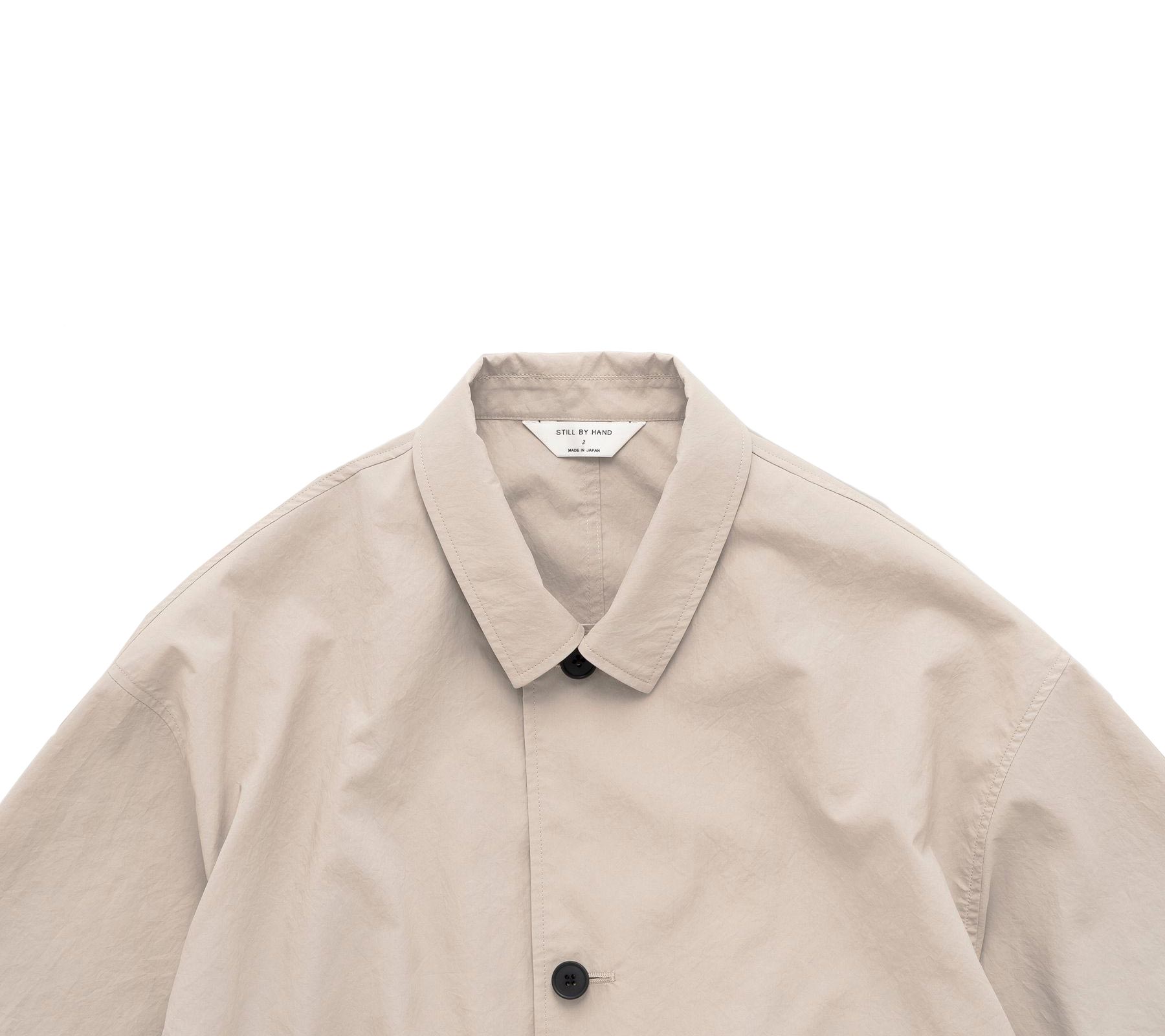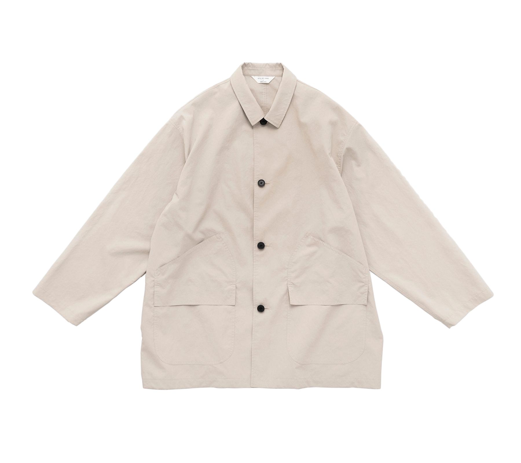 Crafted from a super lightweight 100% polyester fabric that drapes so well, and is fairly dry on the skin. This summer jacket is super quick to dry and has slight water repellency. Regular fit it is made with single fabric, no lining. The collar is just about rigid enough to stay up, with wide armpits, hand warmer pockets with diagonal openings, form flaps for the lower pockets and fairly wide sleeve openings with no buttons. Not your standard K-Way...