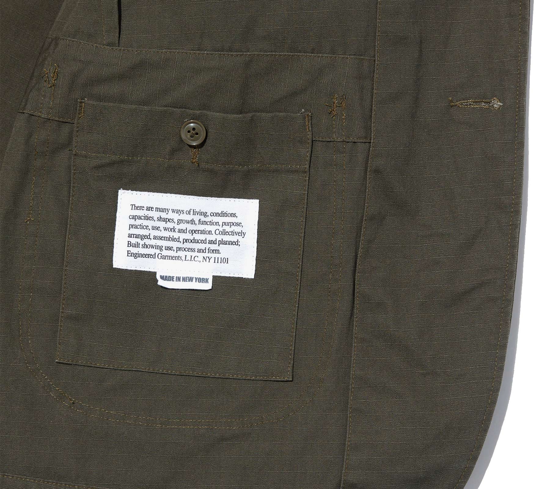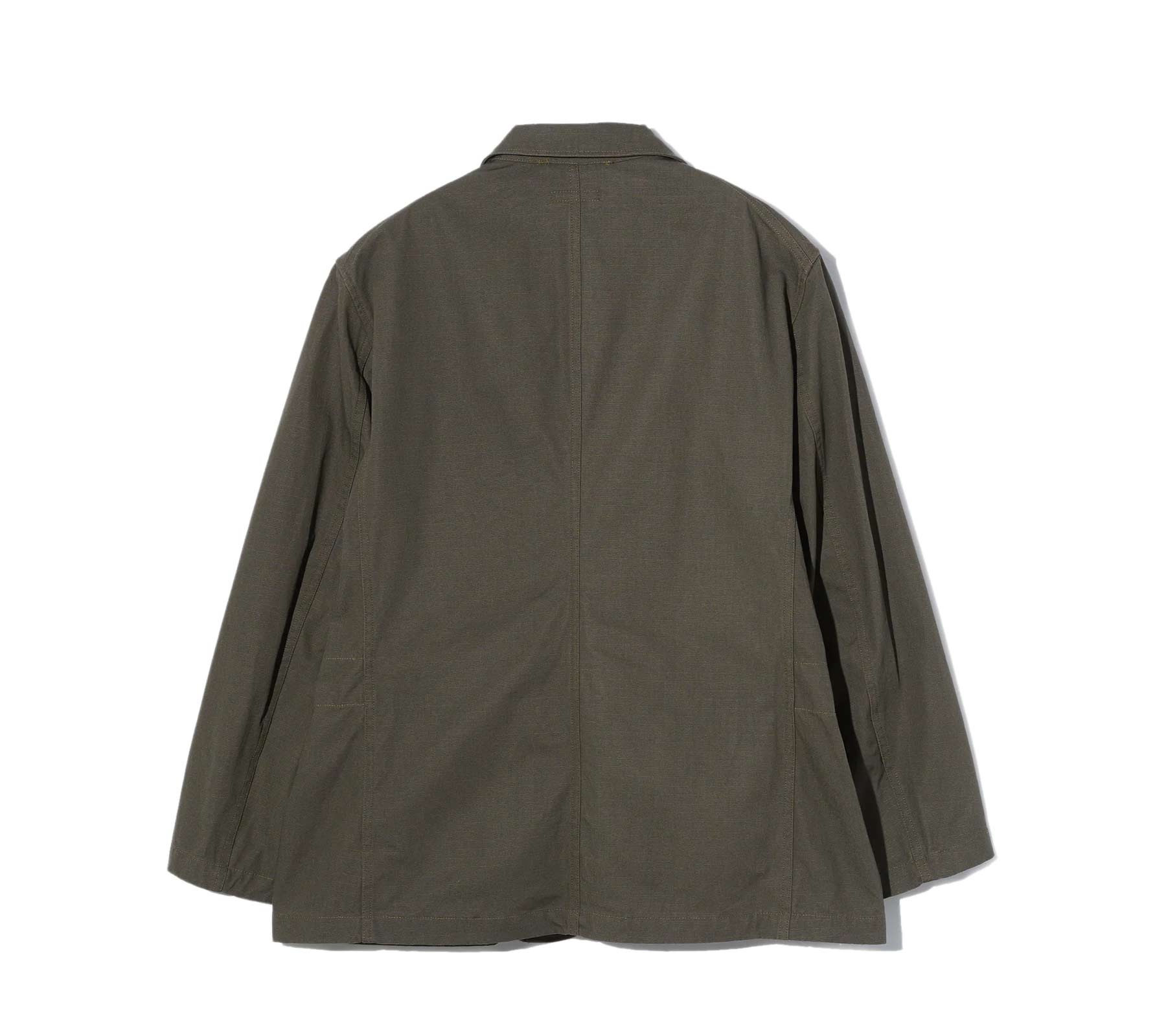 The staple jacket in EG's collection, the perennial favourite Bedford Jacket. Features a peak lapel and 4 patch pocket design and tough workwear details. Made from a heavyweight cotton ripstop, with reinforced fabric on the pocket openings and the back of the shoulders give the piece a rugged look. The front ring buttons are inspired by vintage work jackets.