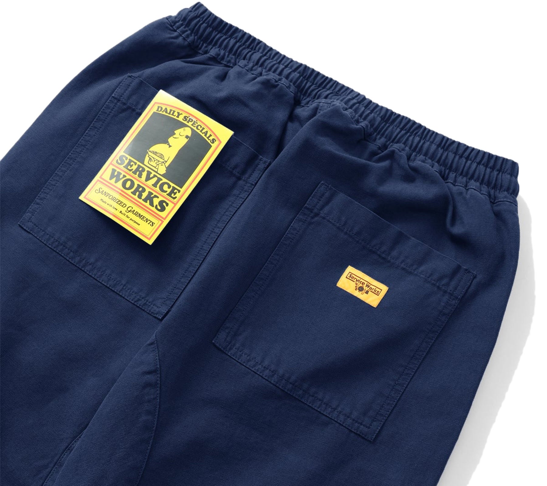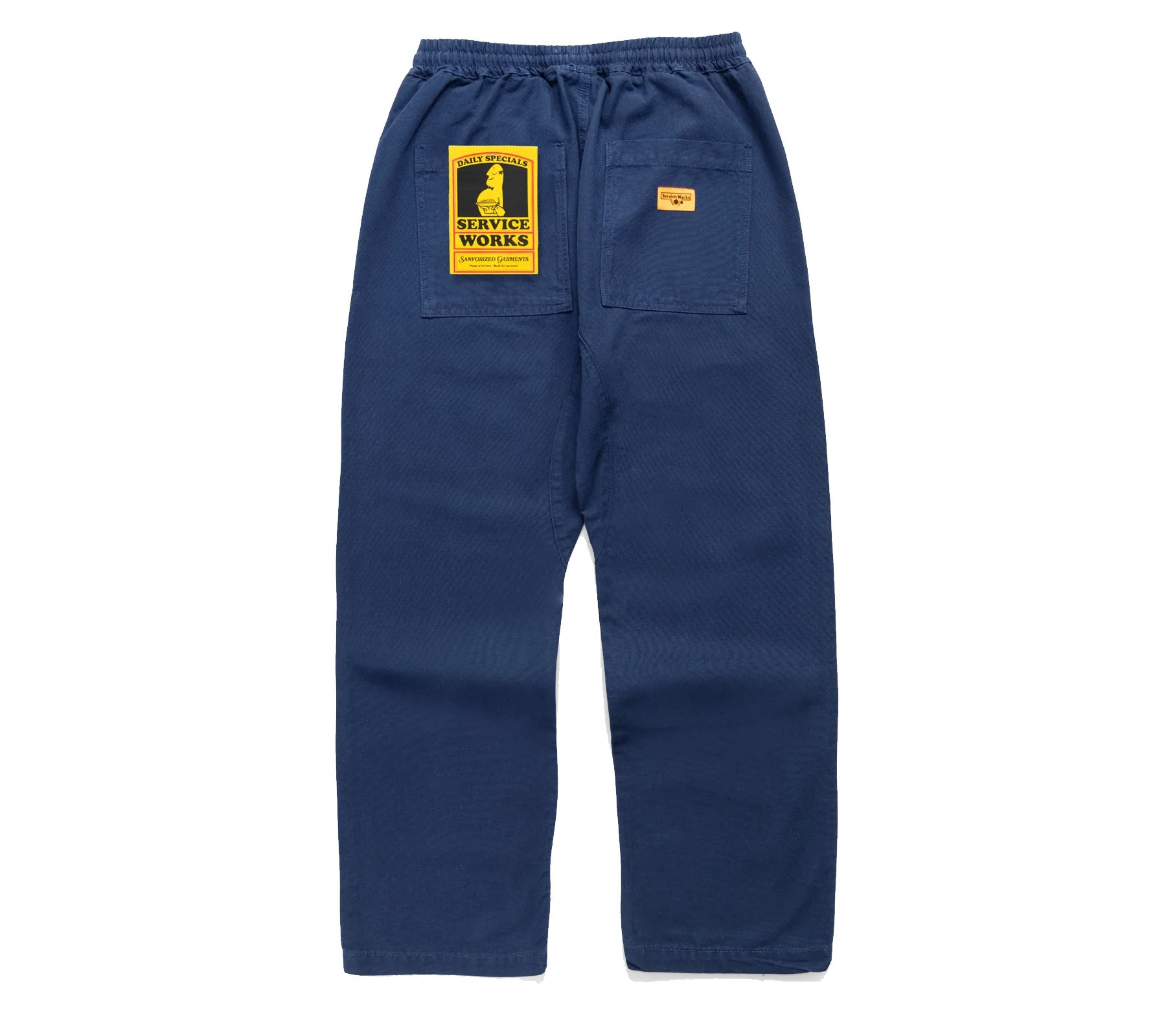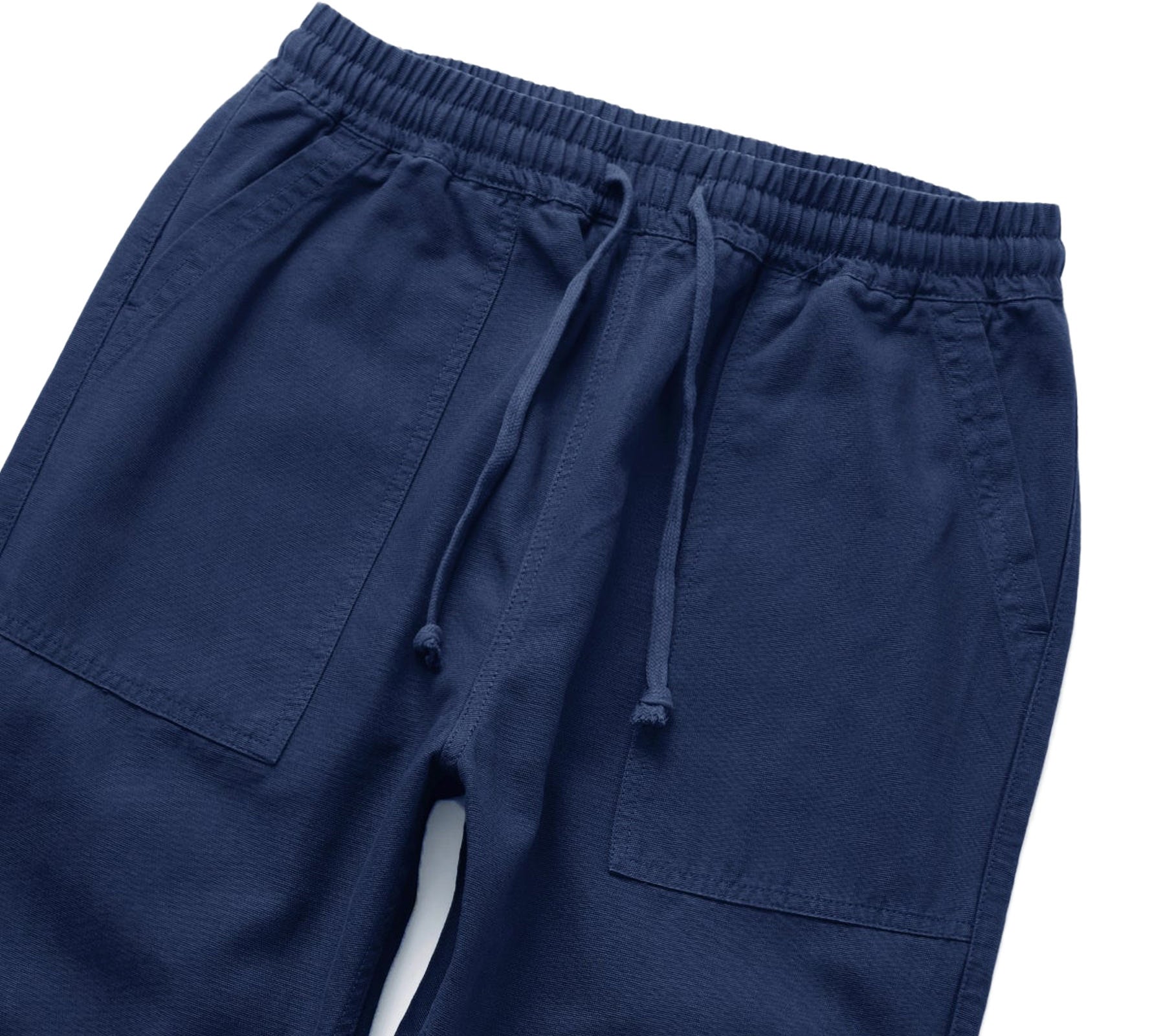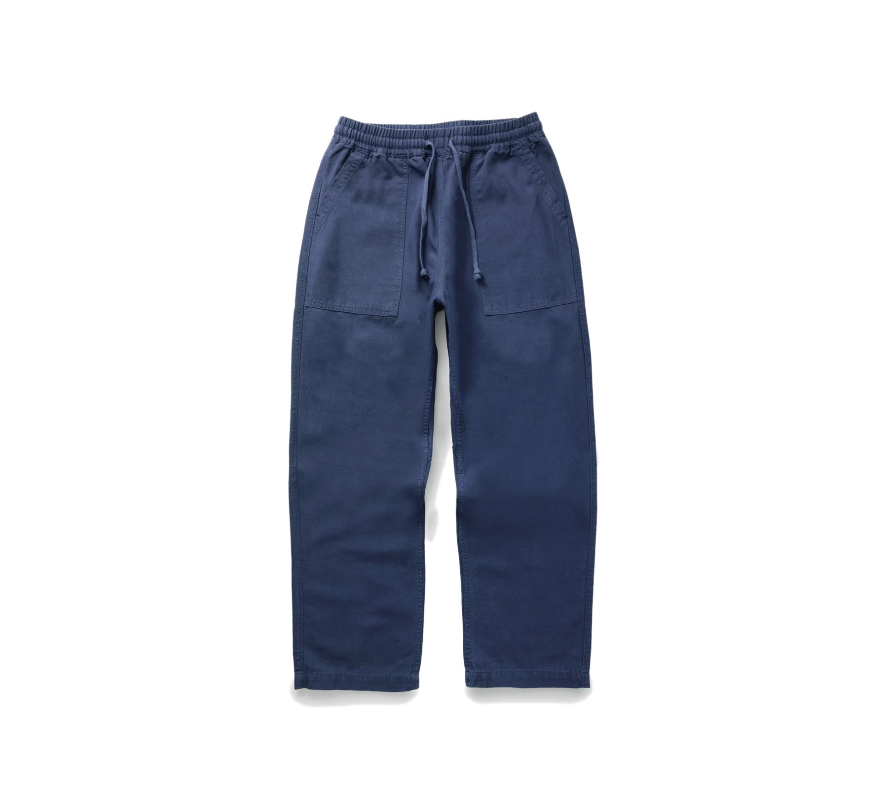 An homage to the classic elasticated waist Chef Pant - those pants you wear for comfort & utility first, but then end up falling in love with how you look & feel in them and end up wearing them everyday, all day. These trousers are a relaxed, straight leg fatigue style pant, crafted from GOTS organic 360gsm (11oz) cotton canvas. Features an adjustable waistband with drawstring, fatigue front pockets, and rear pockets with woven label. Perfect for any use.