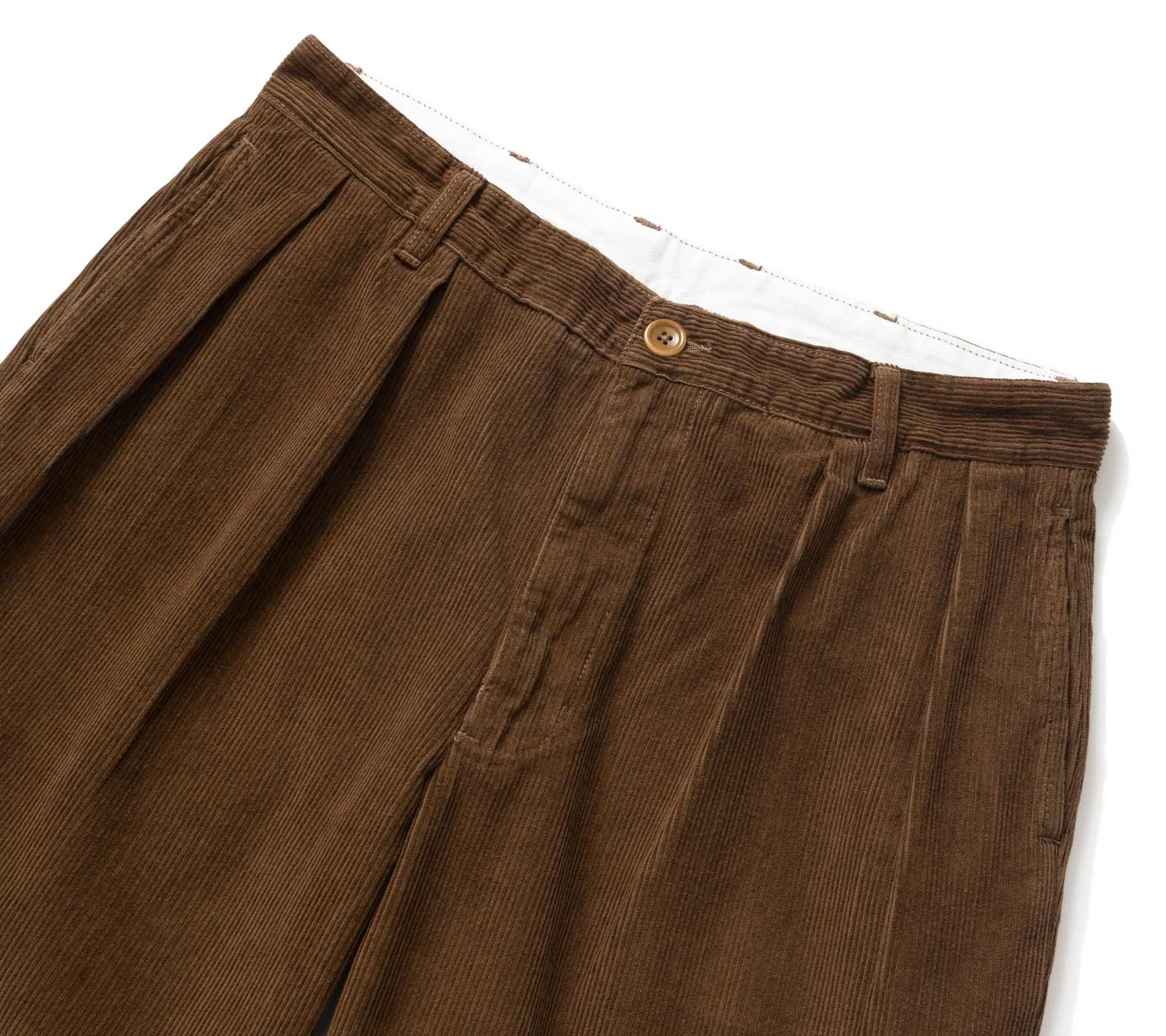 These Corduroy Part-Timer Pants feature a double pleat and a baggy balloon fit with a subtle taper, combining comfort with a modern silhouette. Made from GOTS Organic garment-dyed corduroy, they offer sustainable style and durability.