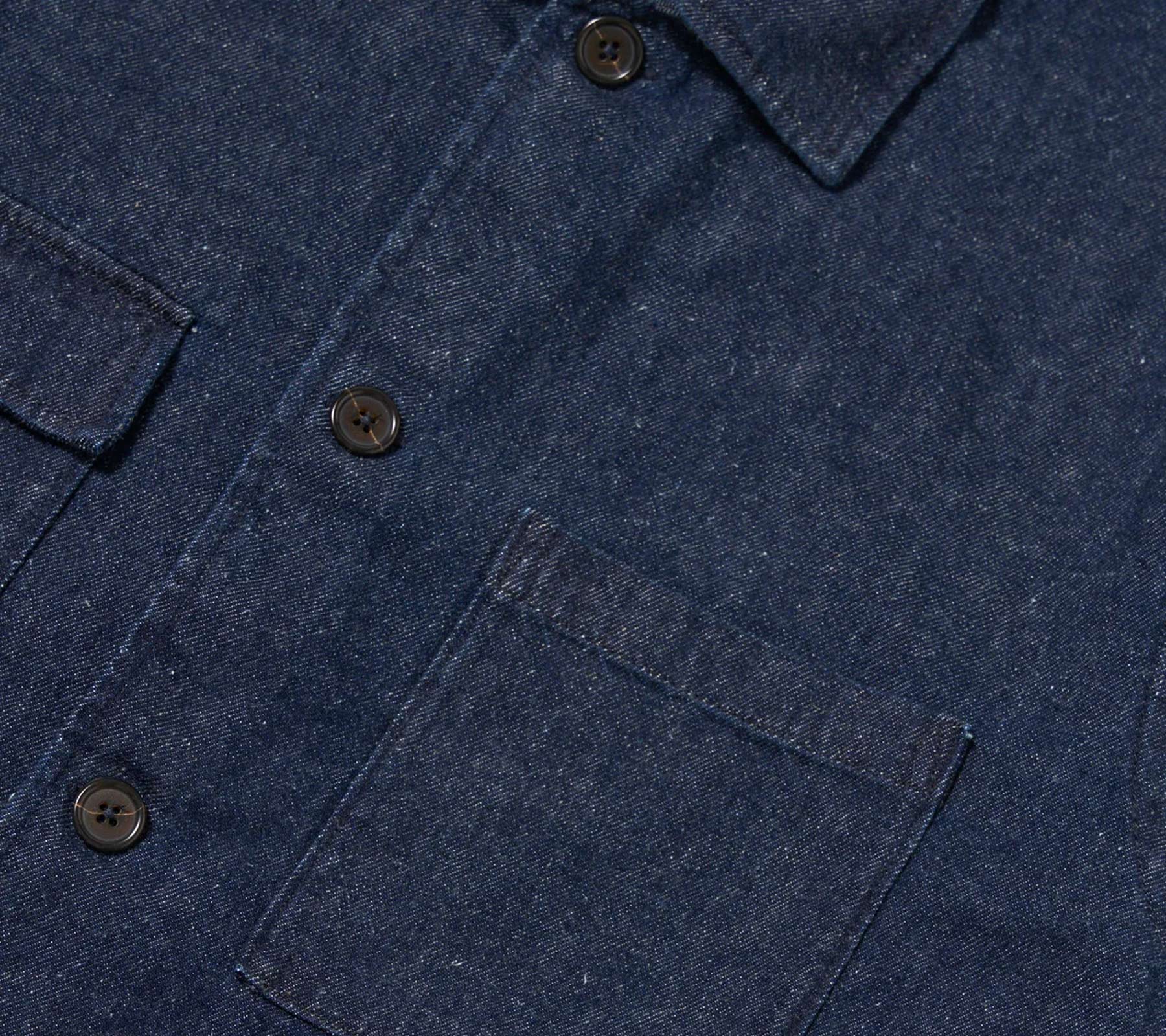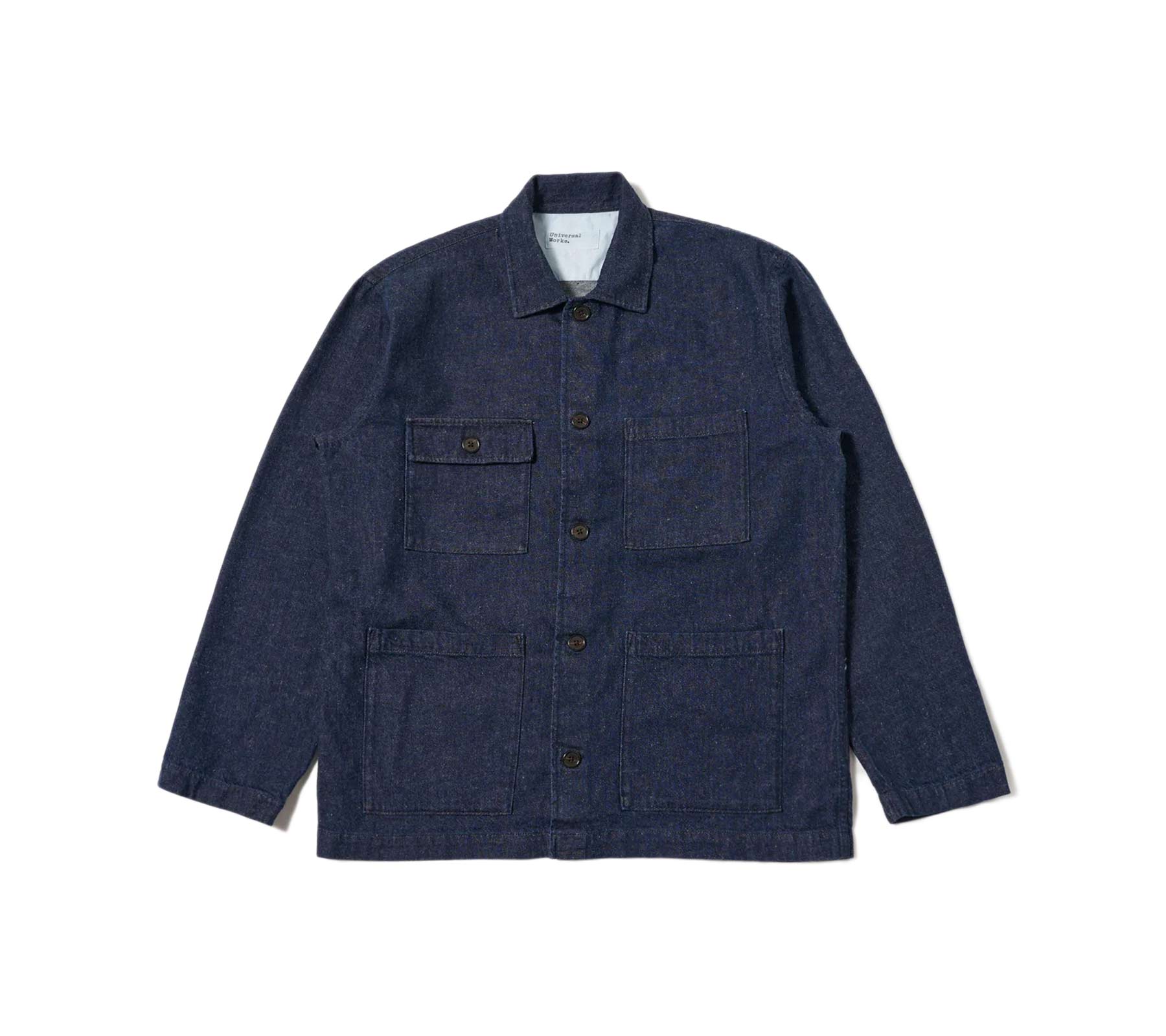 The Dockside is practical and purposeful, with an unstructured shape, complete with a back yoke with back pleats, and four front pockets that take inspiration from military fatigue styles. Generous fit. Two lower patch pockets. Two chest patch pockets, one buttoned.