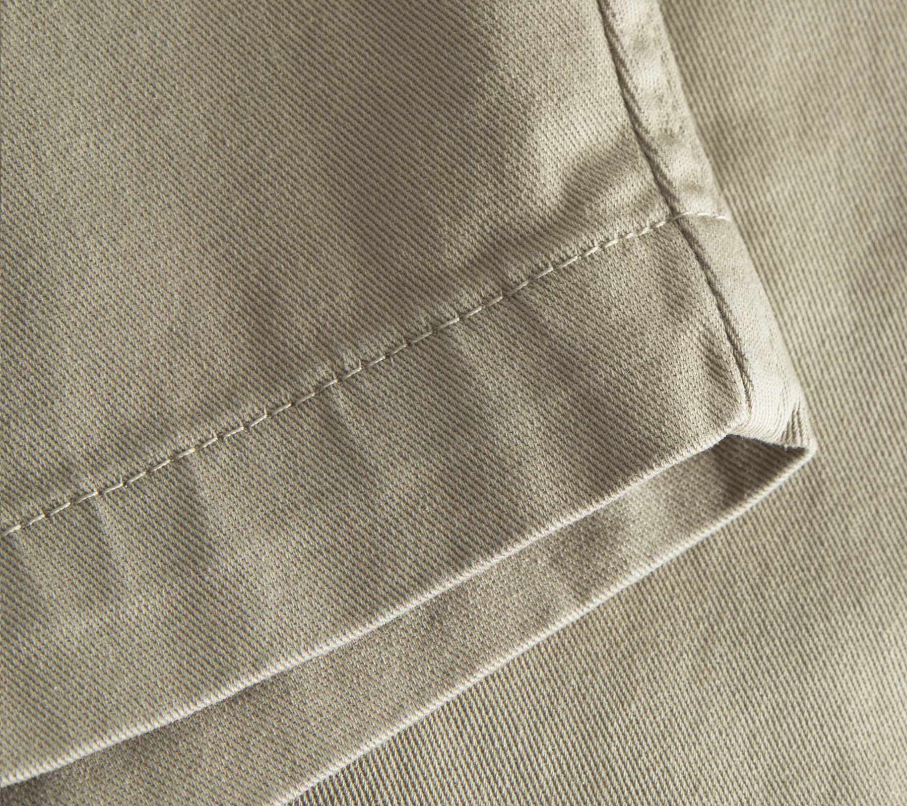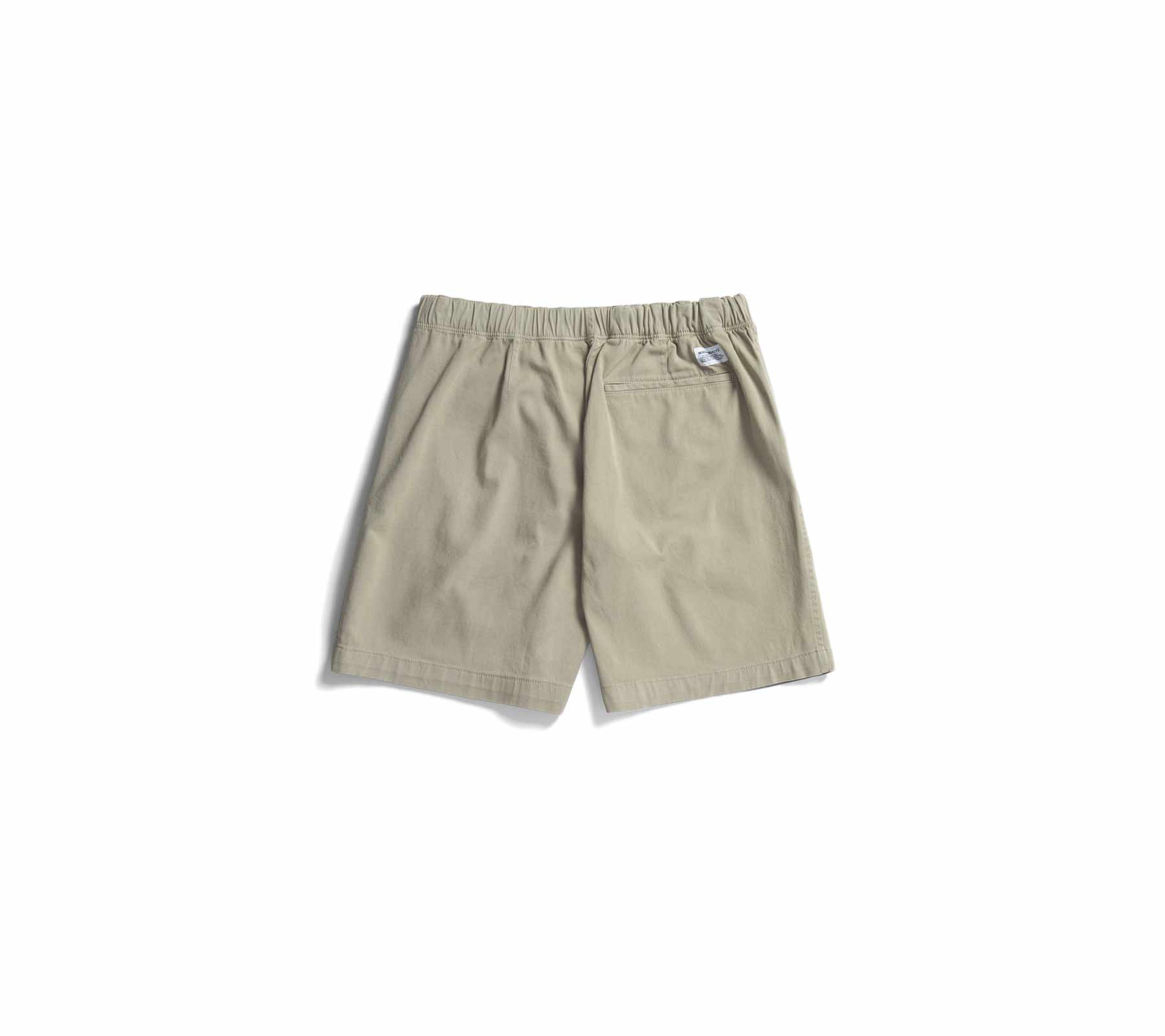A relaxed fitting short with a loose leg constructed from a stretch organic cotton twill. The pants are garment-dyed for a rich colour, with a lived-in touch. Finished with a zip fly, snap closure and drawstring waist.