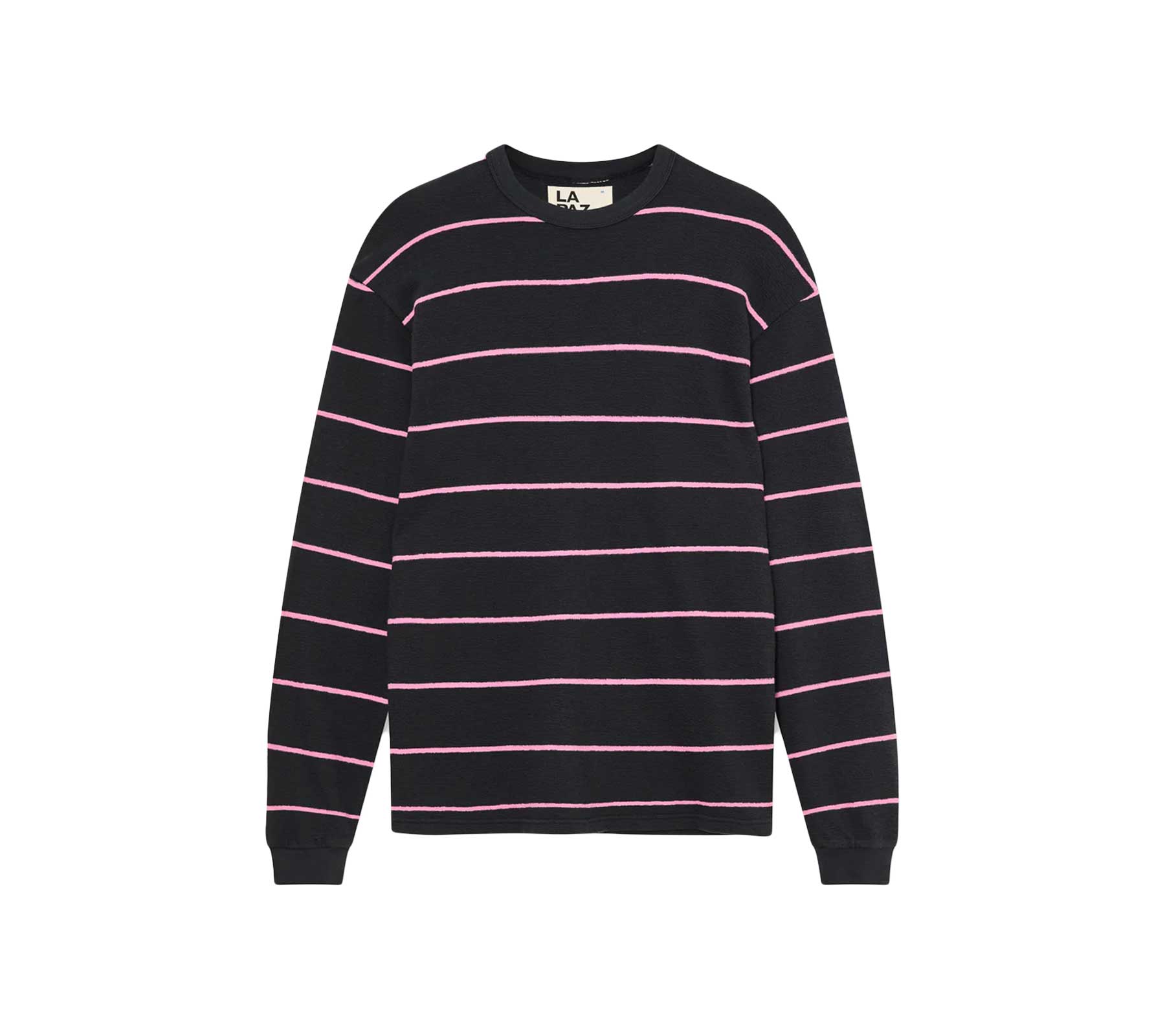 A clean-cut long sleeve t-shirt with a La Paz anchor logo. Not much more to say but you'll love it. Soft long sleeve terry with bubblegum pink stripes... a warm and playful layer for the changing seasons. Heavyweight 100% cotton fabric, regular fit, true to size and pre-washed to minimize shrinkage.