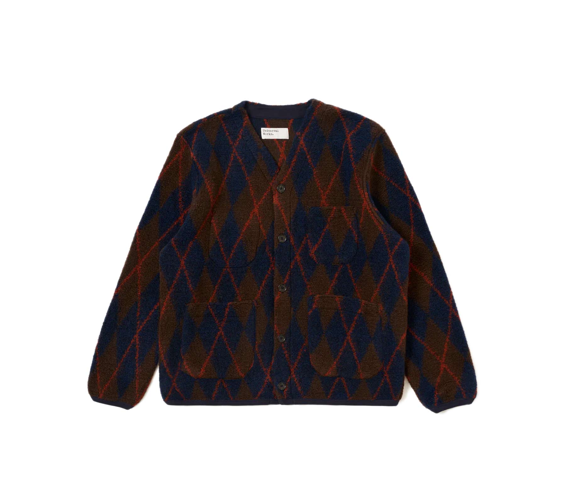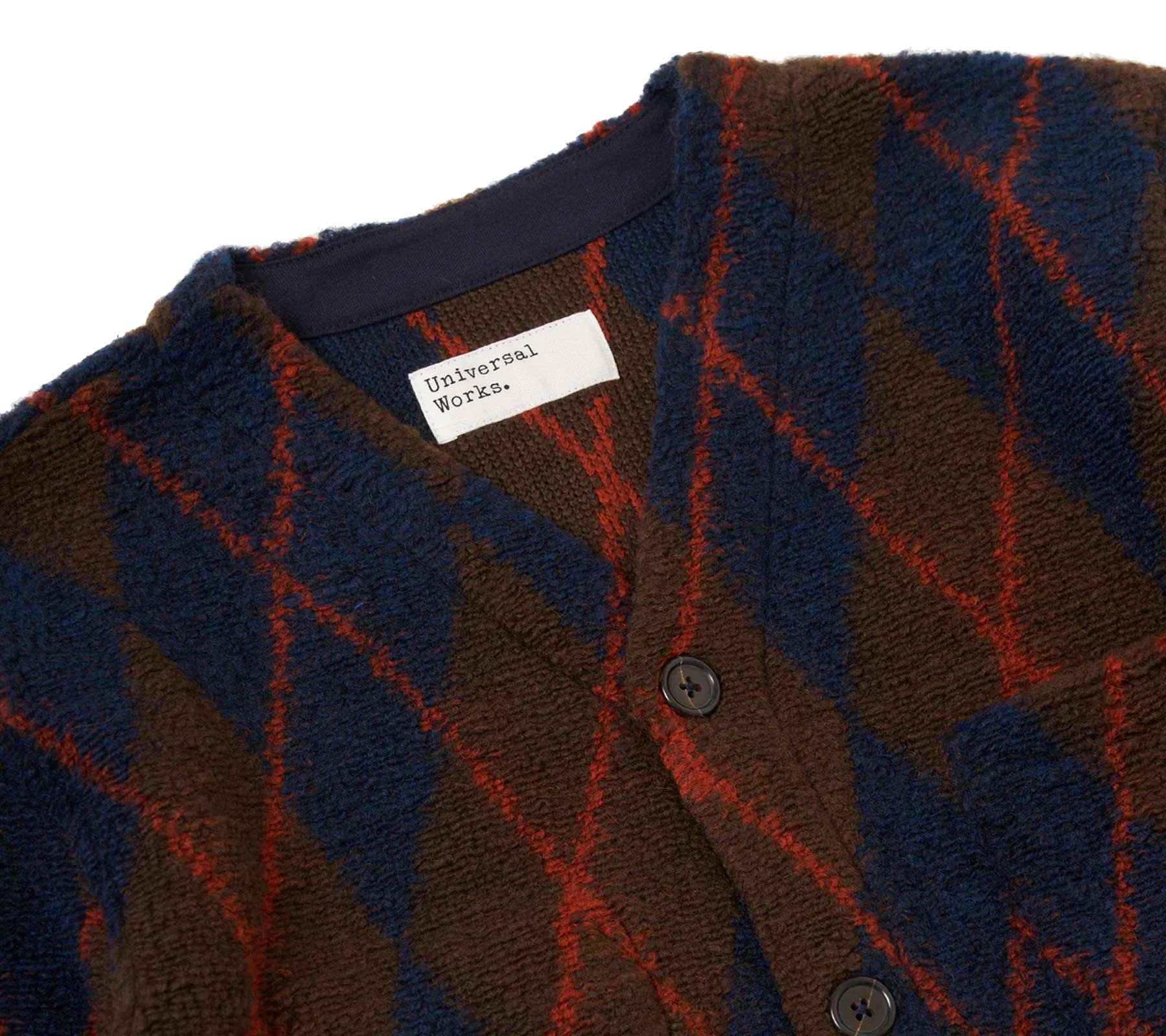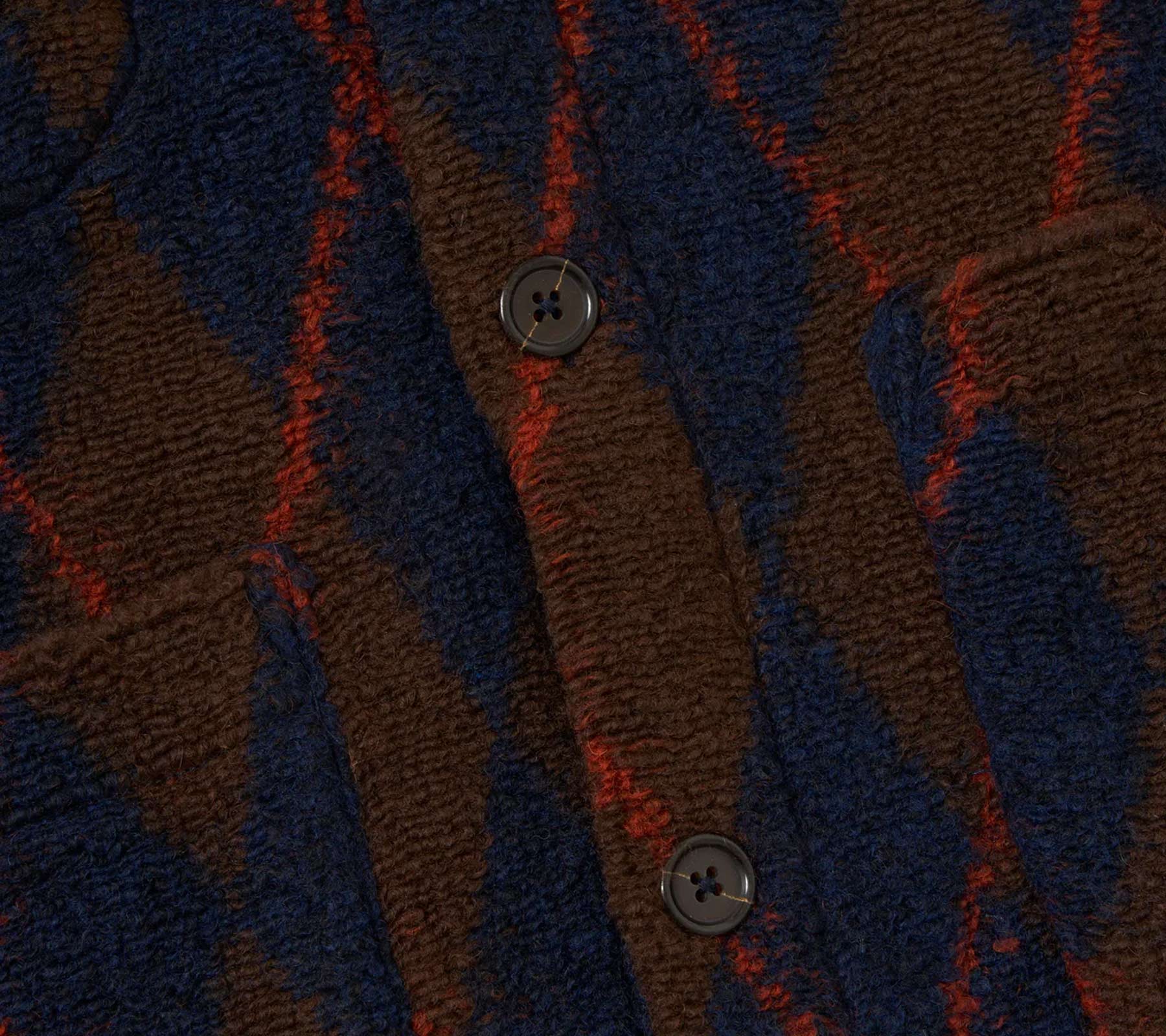 An exclusive colourway in-house designed exploded Argyll pattern, in a boucle yarn creating a bobbly surface texture. Fabric Composition: 30% Recycled Polyester, 27% Polyester, 24% Wool, 19% Acrylic.