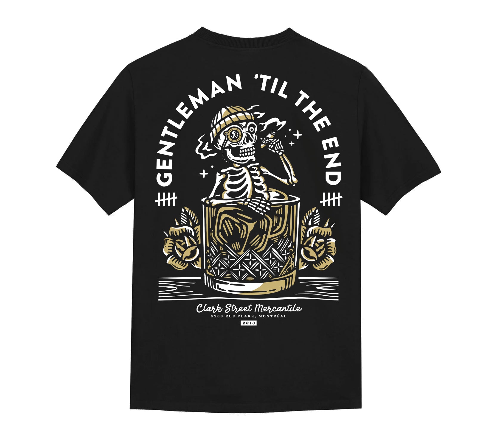 For our 10 year anniversary we have partnered up with local artist Edith Boucher to capture the essence of our shop's ethos for the past decade. This one is extra special... Glow in the dark ink + a metallic gold fleck gentlemanly flair.