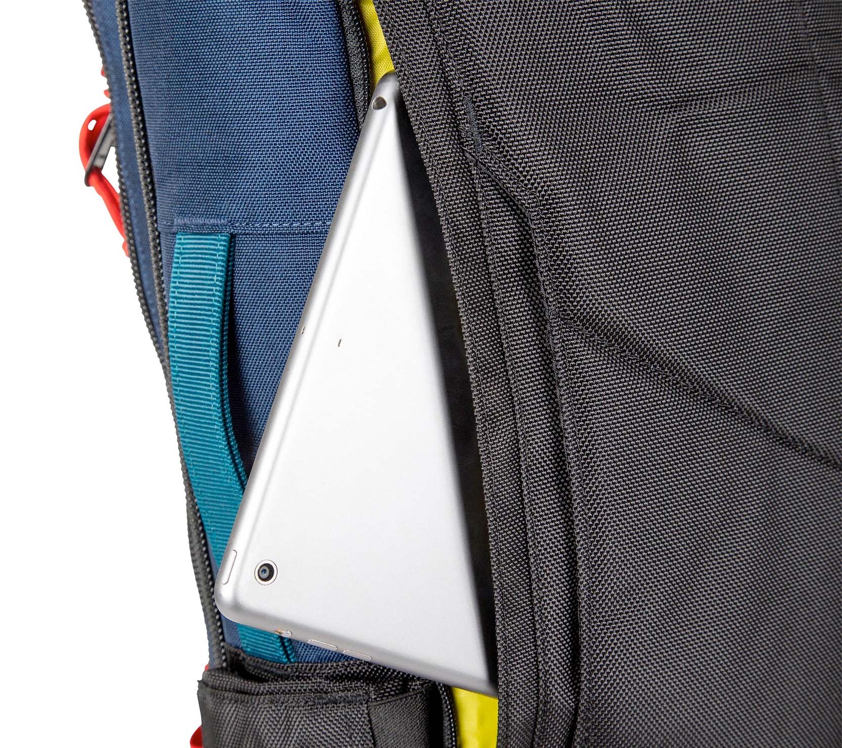 Easy access to back panel laptop compartment, fits most 15” laptops.