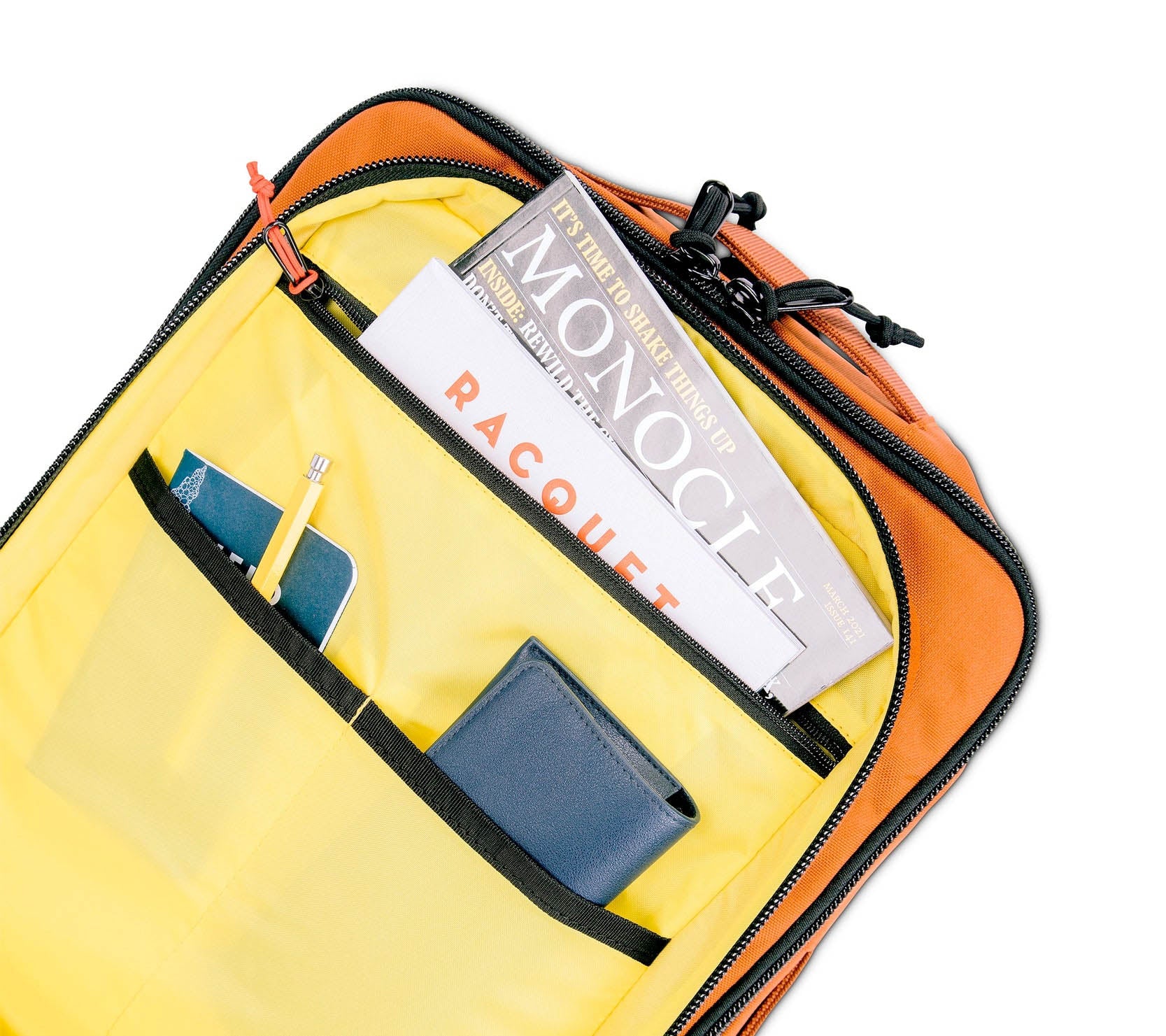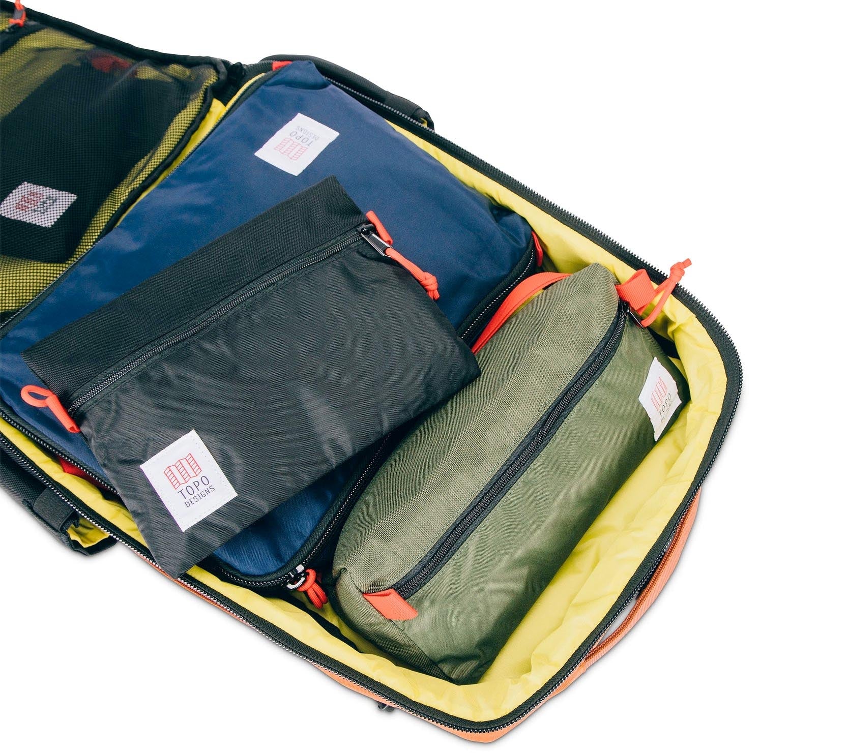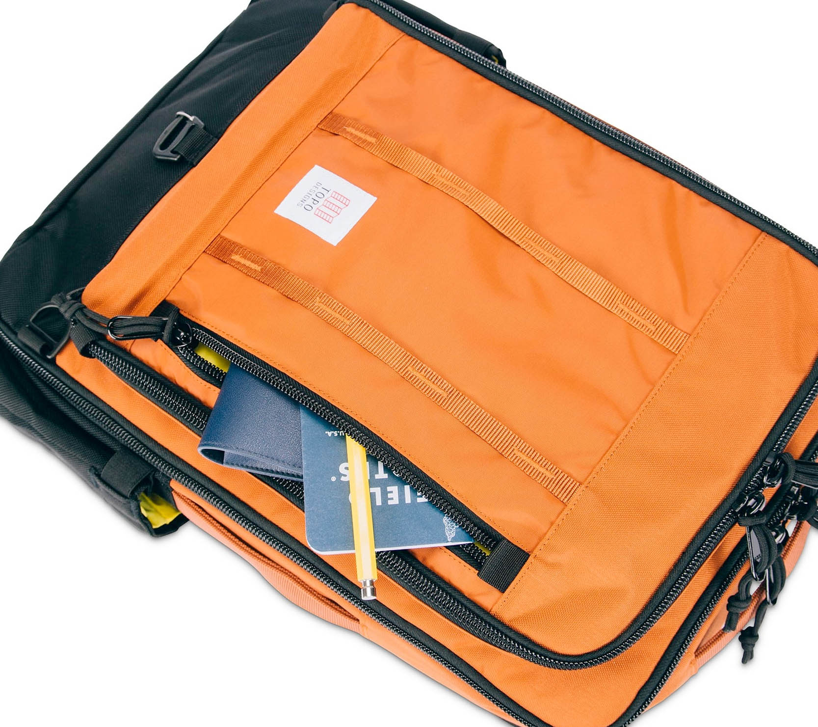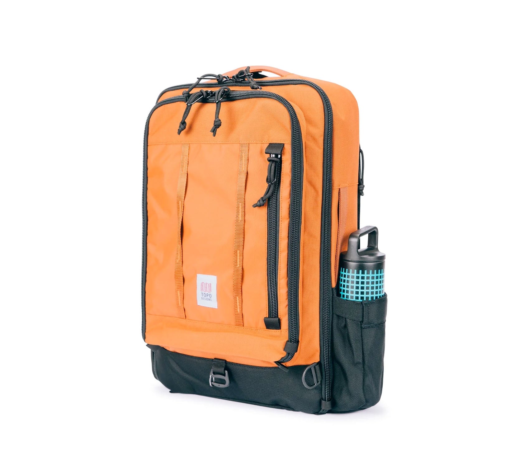 Your ideal one bag travel companion. This carry-on compliant Global Travel Bag 30L is made with recycled materials and offers 3-way carry options, plenty of internal organization, expandable side water bottle pockets, and an external laptop sleeve for easy access. The size is perfect for a long weekend getaway. Built for breezing through the concourse, it performs perfectly as an agile, durable pack for shorter trips. Compact enough to pass as a carry-on, it's equipped with a sleeve to allow for easy attachment to a roller suitcase handle. For maximum flexibility, the Global Travel Bag works with many of Topo's other packs and bags as a modular carry system, streamlining cumbersome travel.