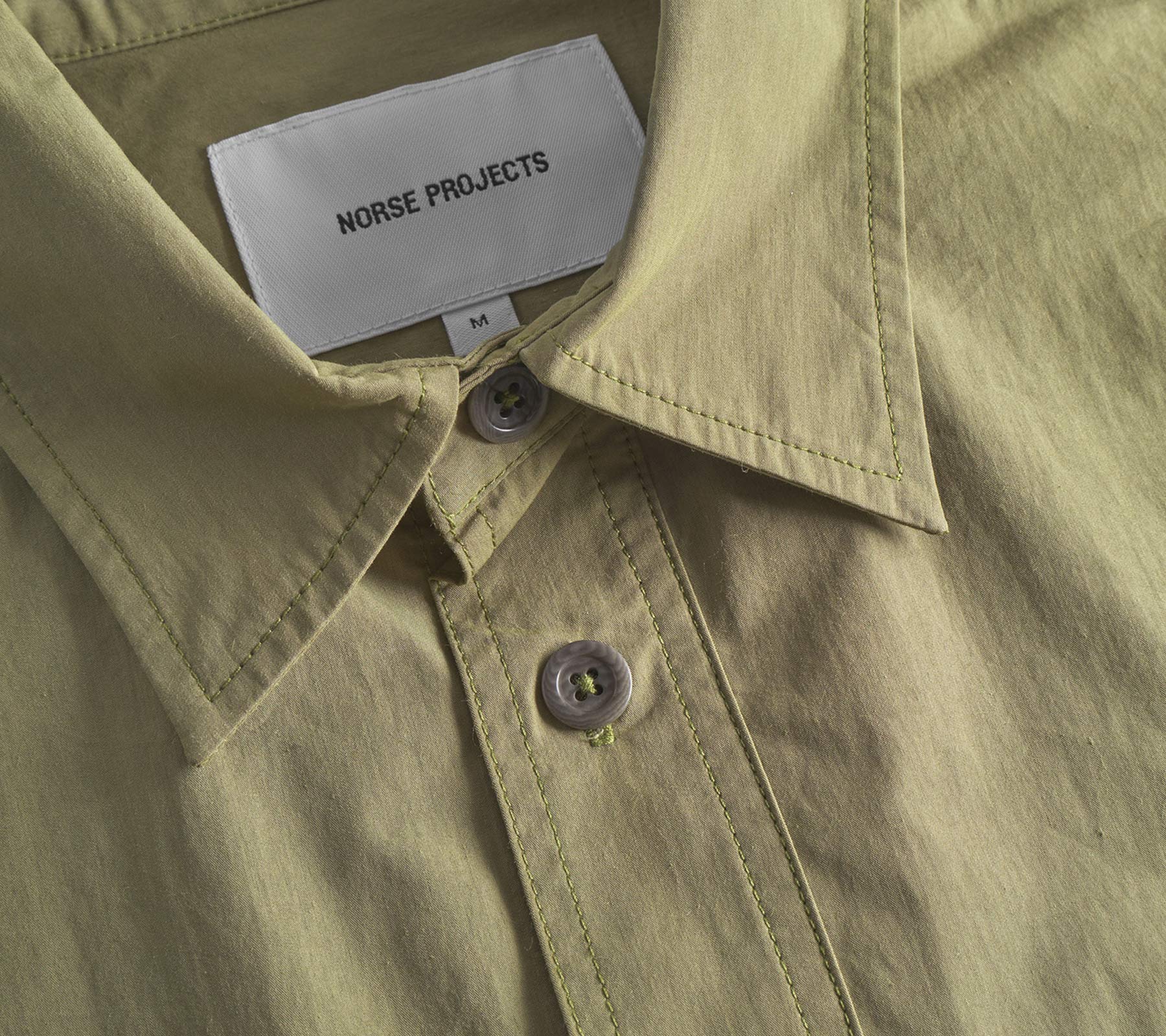 A regular fit short sleeve shirt, cut in a light and crisp cotton nylon poplin cloth. The nylon adds durability, whilst the cotton provides a natural handfeel. Features a two chest pocket construction. This shirt is finished with corozo buttons.