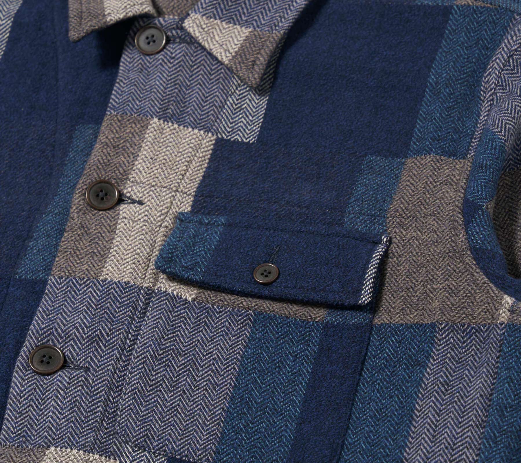 L/S Tech Overshirt | Navy Japanese Patchwork