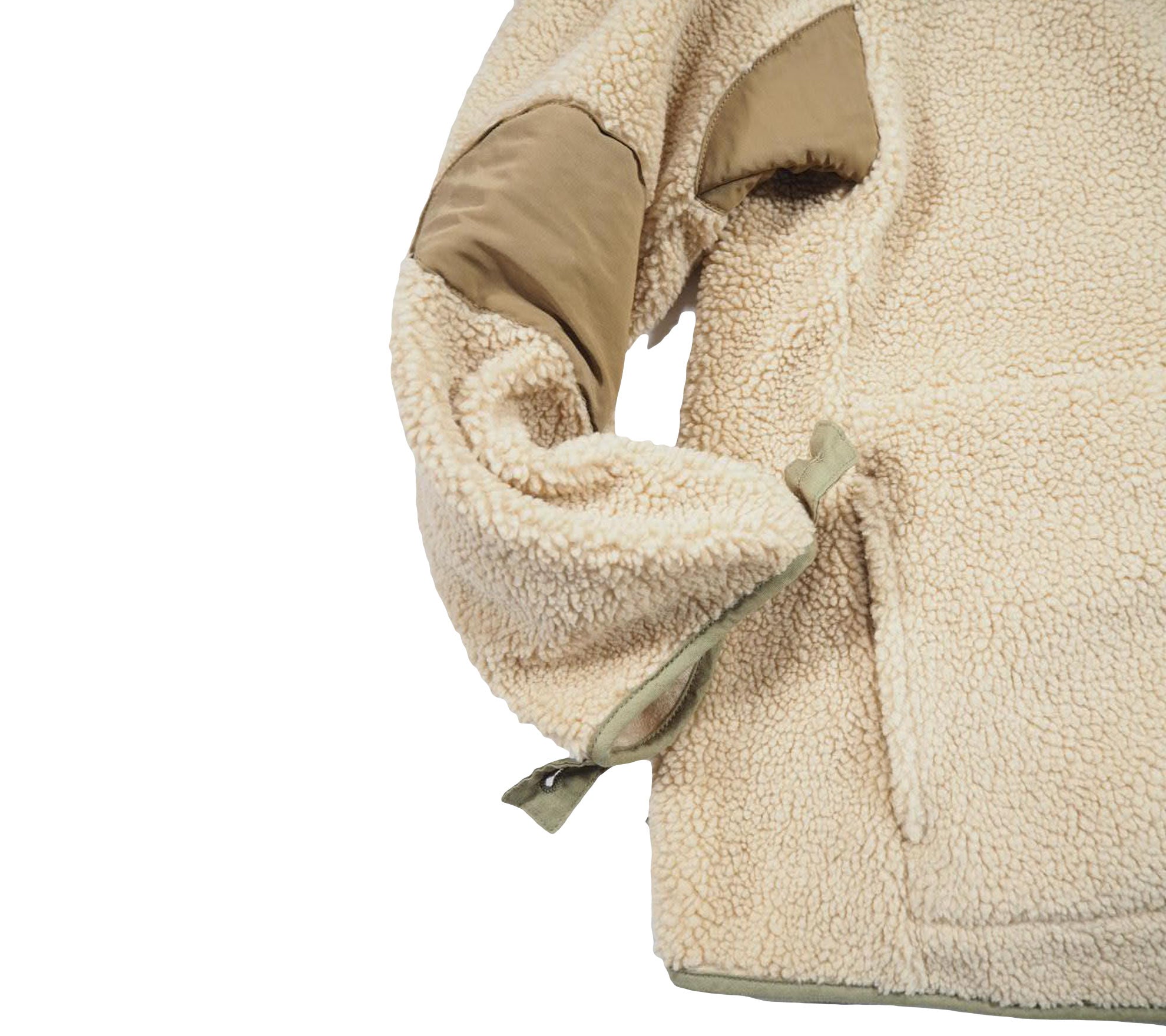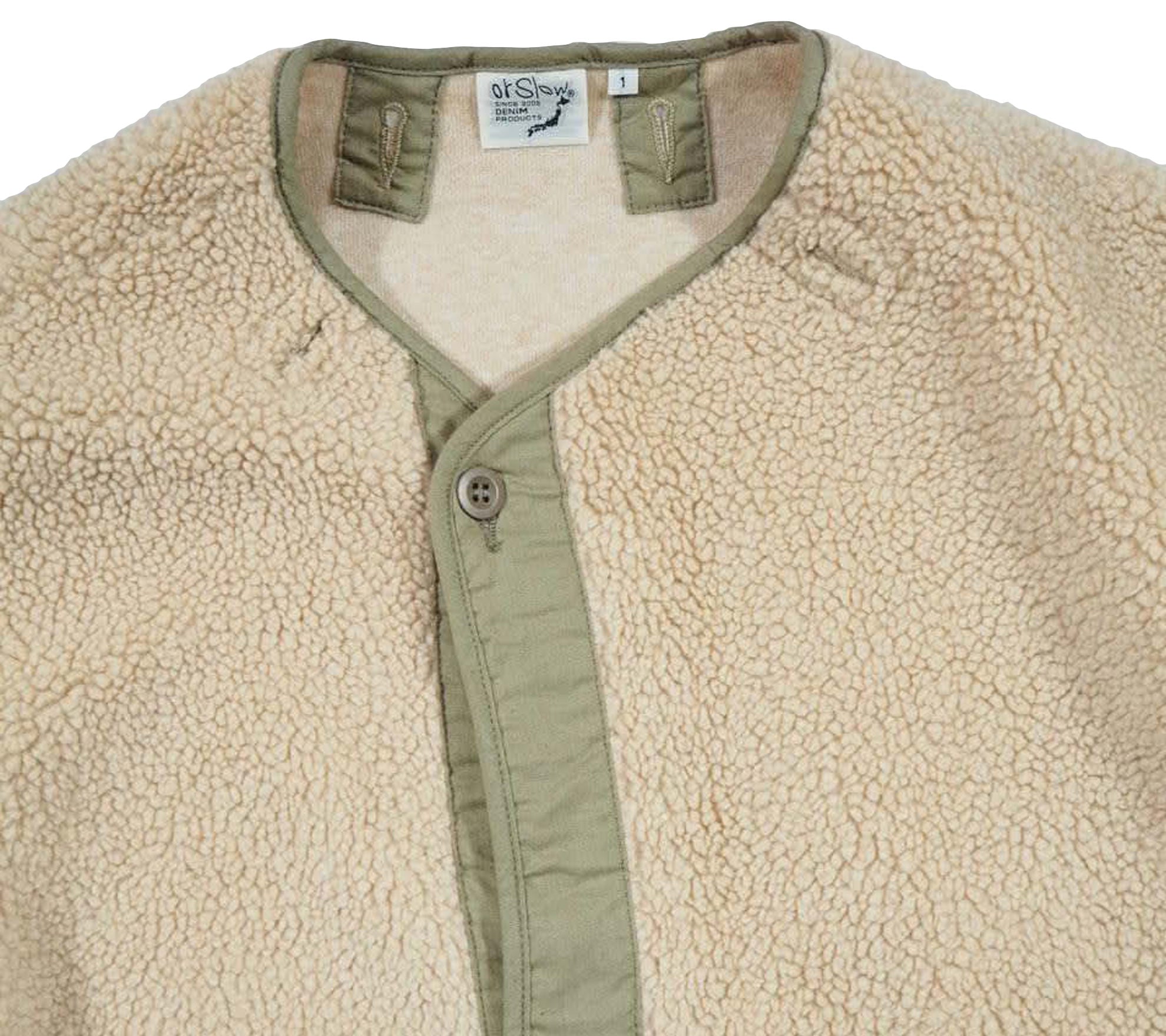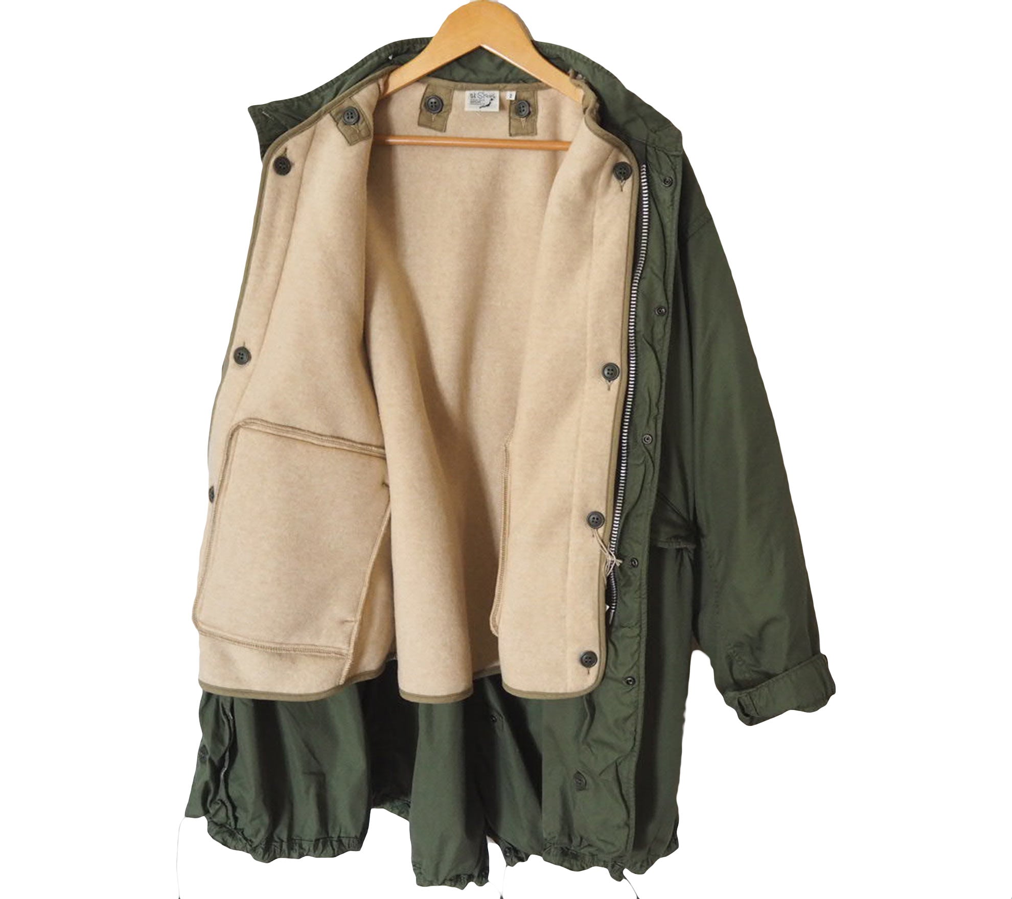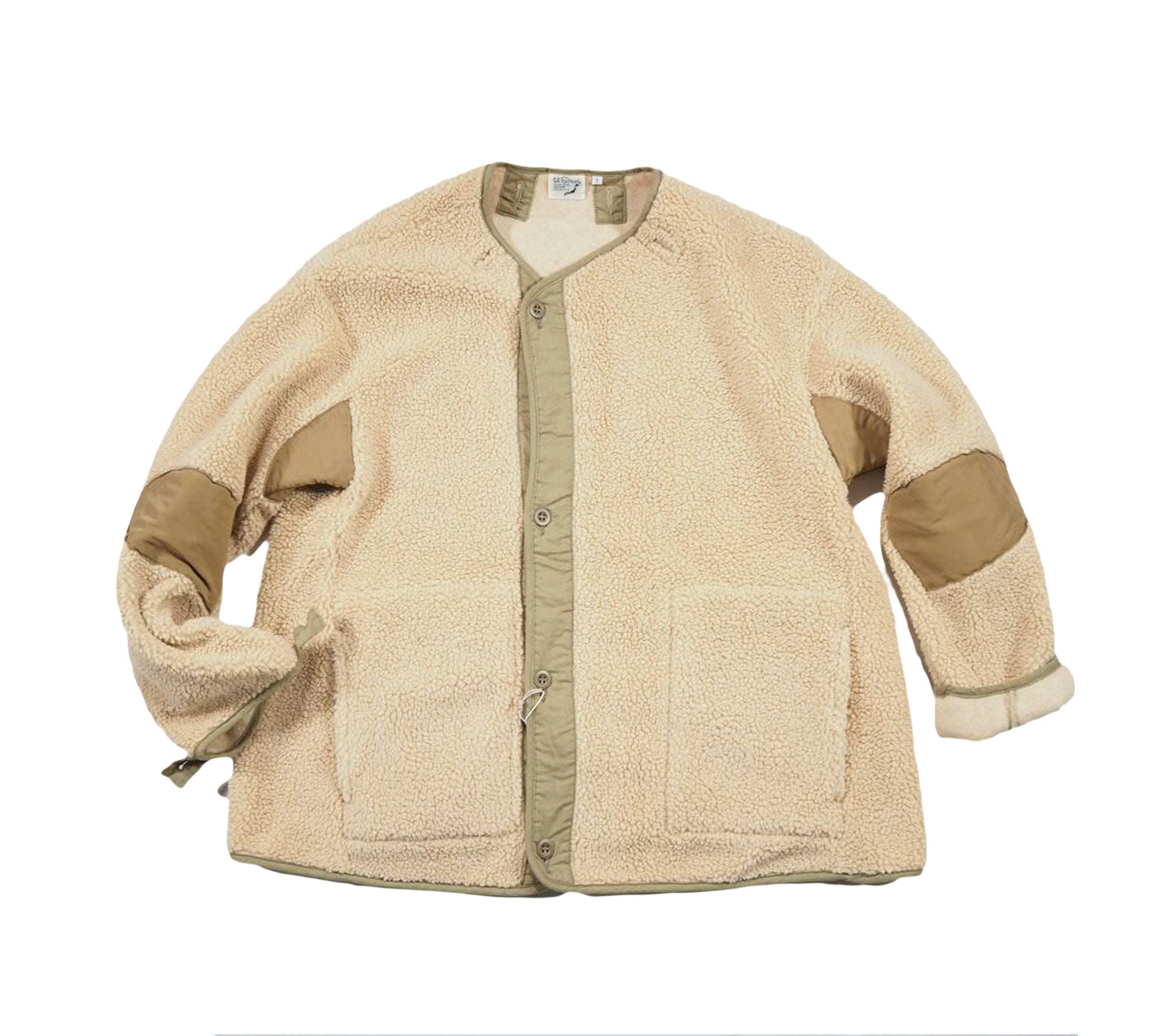 The BOA M-65 Fish Tail Liner Jacket takes inspiration from the classic liners of the Military Parkas. Crafted from a BOA Fleece (75% Polyester 25% Acrylic), the liner features all the relative liner button holes and sleeve fixtures you would expect in a vintage piece, a "V" collar and two frontal hand pockets. Fit is oversized.