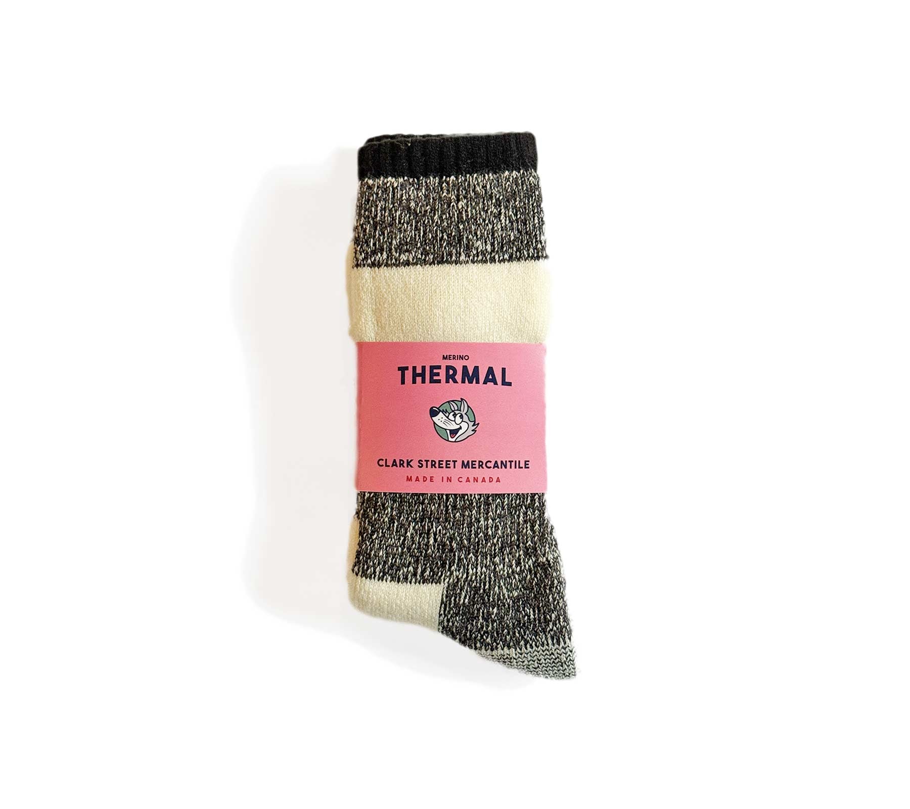 Built for the coldest days, our Merino Thermal Sock delivers lasting warmth and durability in temperatures down to –30°C. Knit in Canada from 70% Merino wool, it offers natural moisture management and temperature regulation with a full heavyweight cushion for comfort and insulation. A double cuff and elastic arch support ensure a secure fit, while reinforced heel and toe zones add strength where it’s needed most.