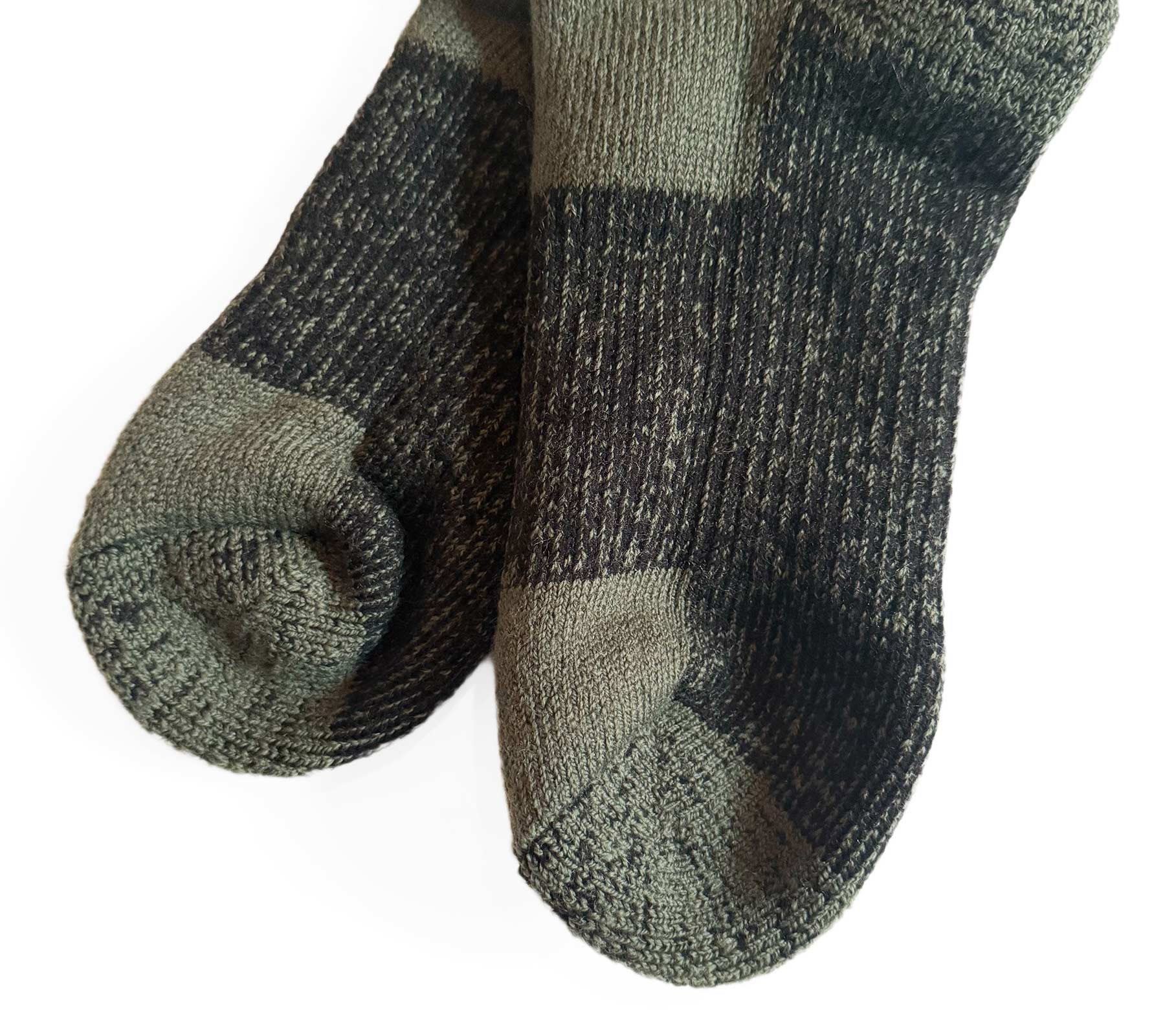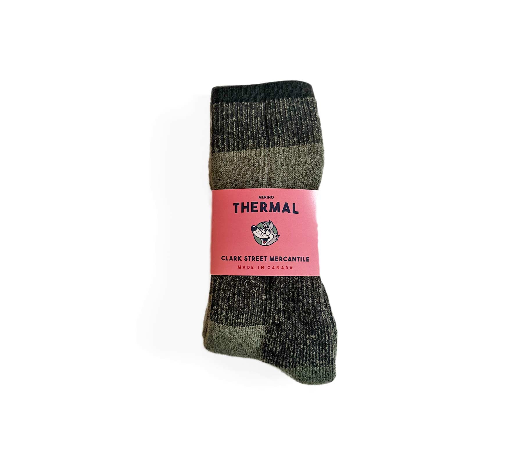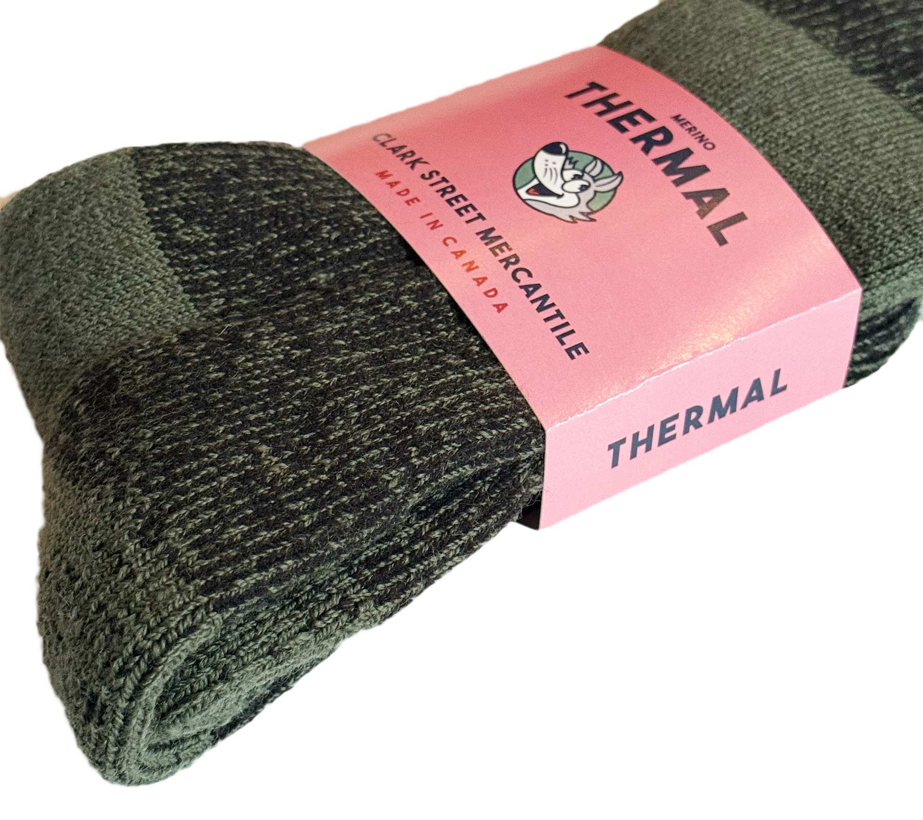 Built for the coldest days, our Merino Thermal Sock delivers lasting warmth and durability in temperatures down to –30°C. Knit in Canada from 70% Merino wool, it offers natural moisture management and temperature regulation with a full heavyweight cushion for comfort and insulation. A double cuff and elastic arch support ensure a secure fit, while reinforced heel and toe zones add strength where it’s needed most.