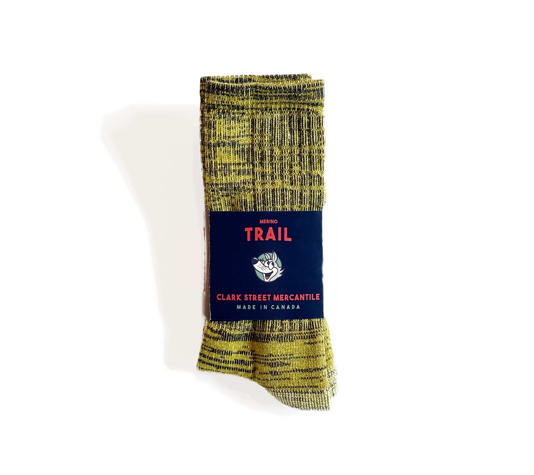 Engineered for the trail or city streets, the Merino Trail Socks deliver all-day comfort, durability, and moisture management. Knit in Canada from 74% Merino wool, they offer natural softness, temperature regulation, and moisture-wicking performance. Half-cushion padding, arch support, and reinforced heel and toe zones provide stability and durability on every step, while the double cuff and calf ribbing ensure a secure, snug fit.