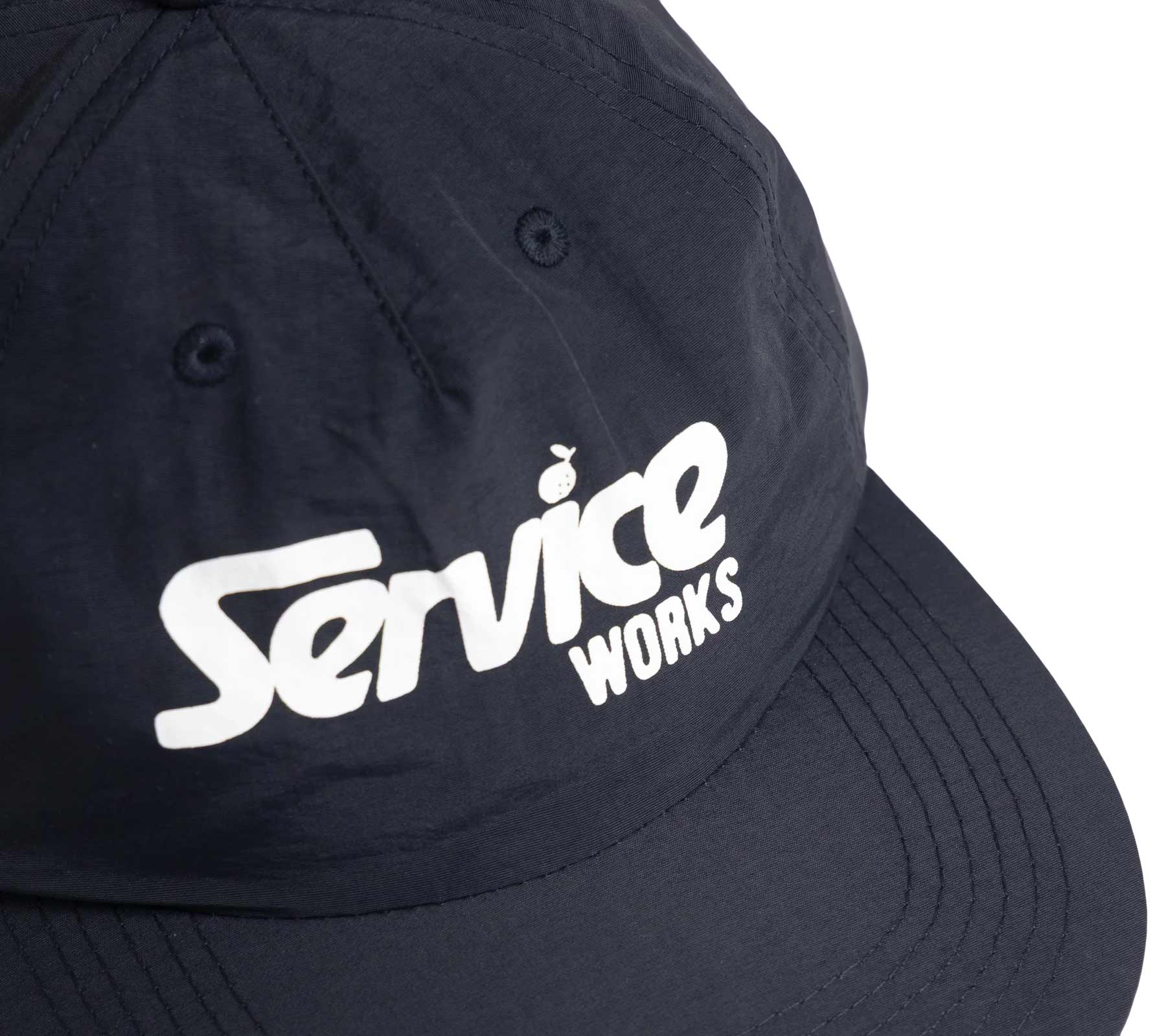 Nylon Drivers Cap by Service Works. A low profile trucker style cap constructed from 100% nylon. Features an elastic adjuster and screen printed graphic.