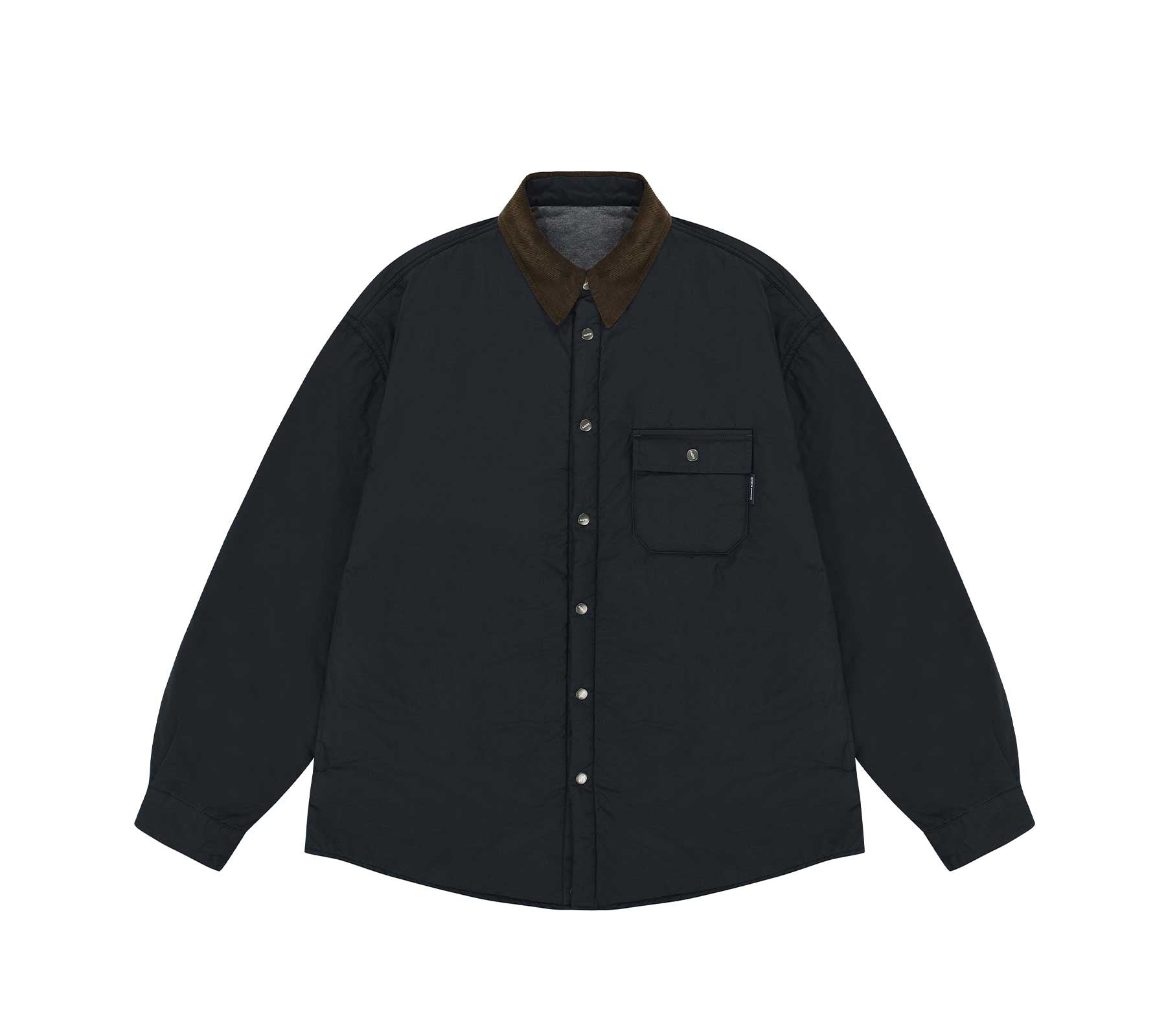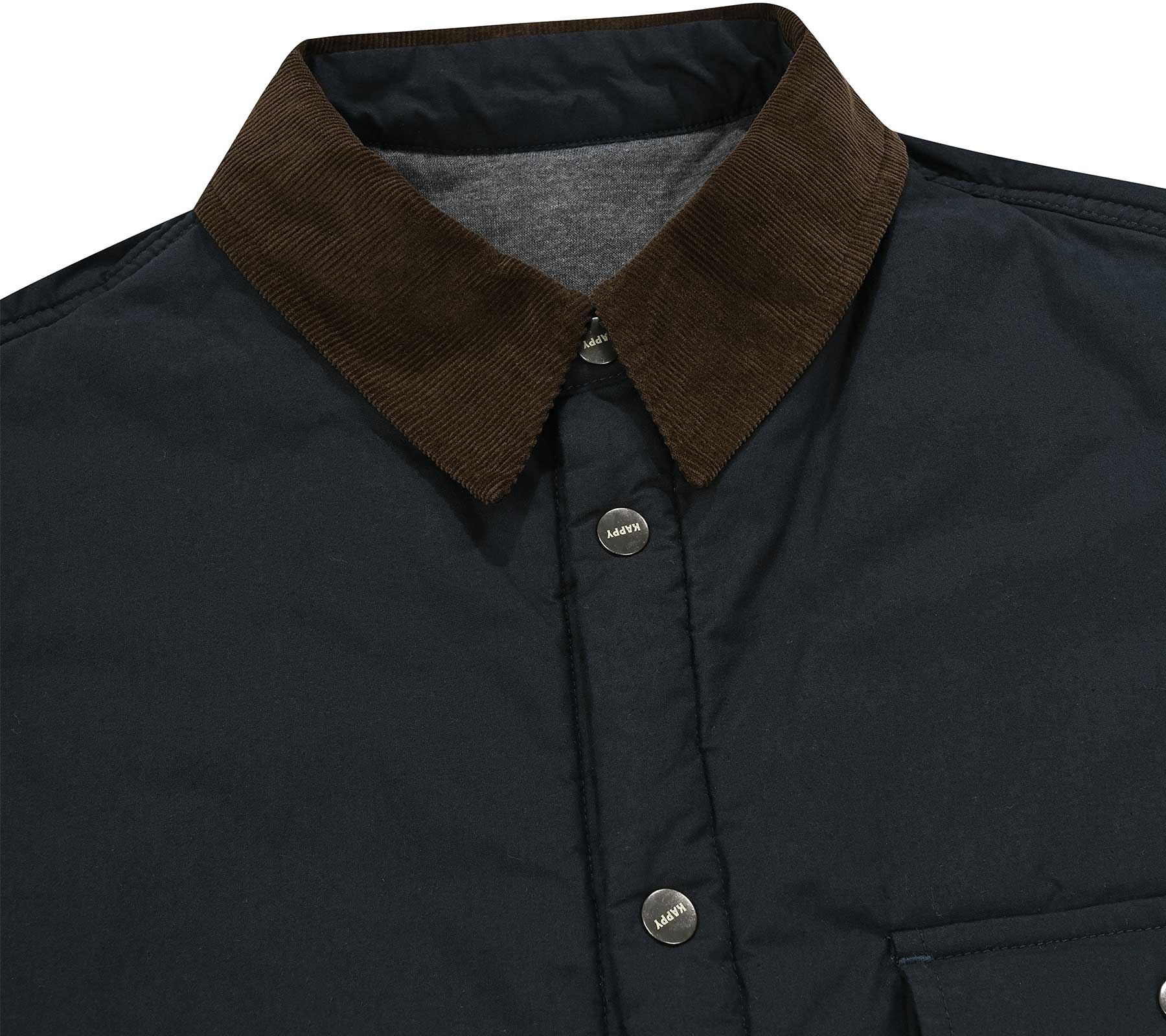 Wearable on its own, or under another jacket as a liner, this Padded Shirt-Jacket is inspired by your classic hunting jacket. Featuring a contrasting corduroy collar for a vintage feel, the water-resistant nylon outer is lined with cotton padding for warmth during colder times. Signature Kappy snaps throughout, this is a great relaxed-fitting jacket for the season.