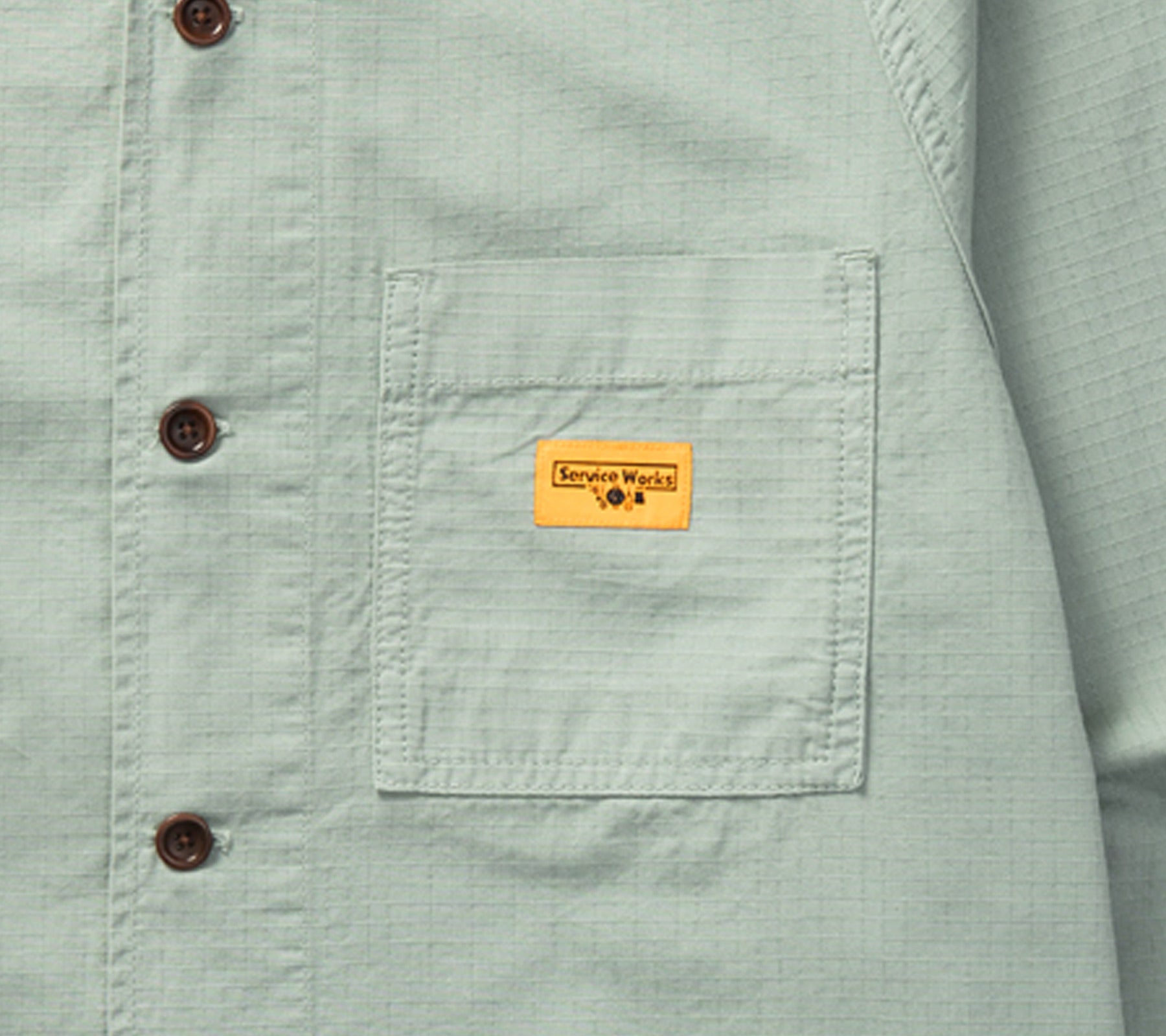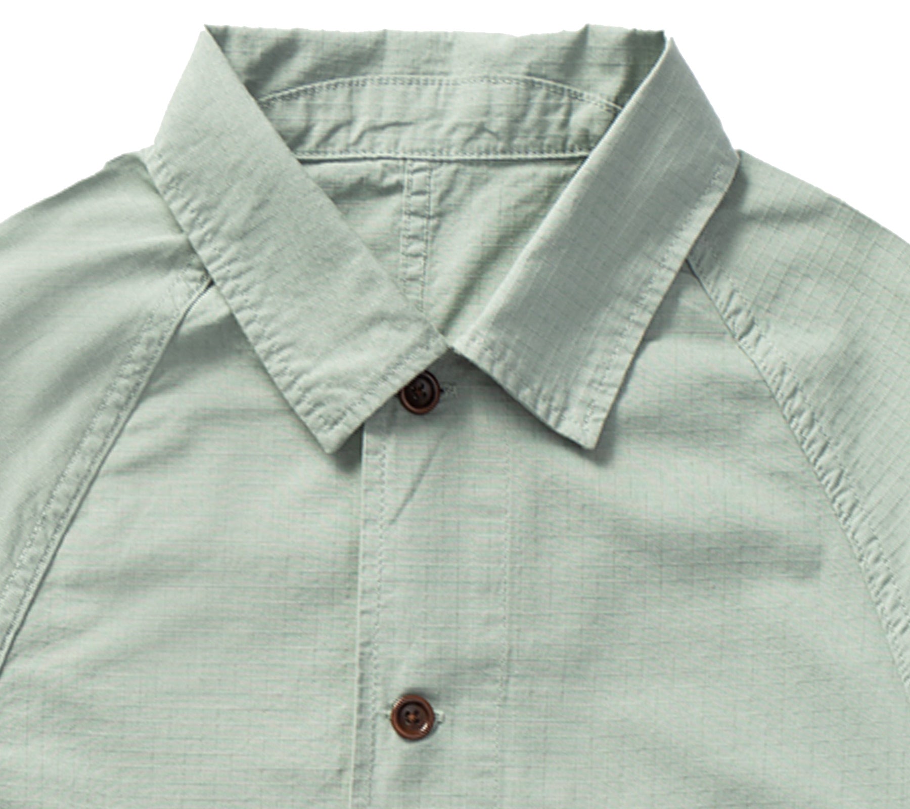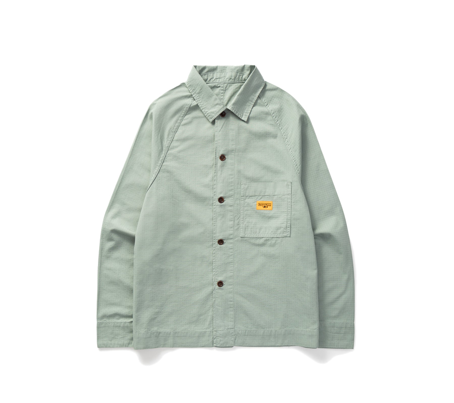 A classic Chore Coat style jacket, with slightly fancier detailing to give you a Front-of-House look. Regular fit, raglan sleeves and made from 100% Organic 250gsm cotton ripstop, this jacket/overshirt features a flat collar, large chest pocket and 5 button closure.