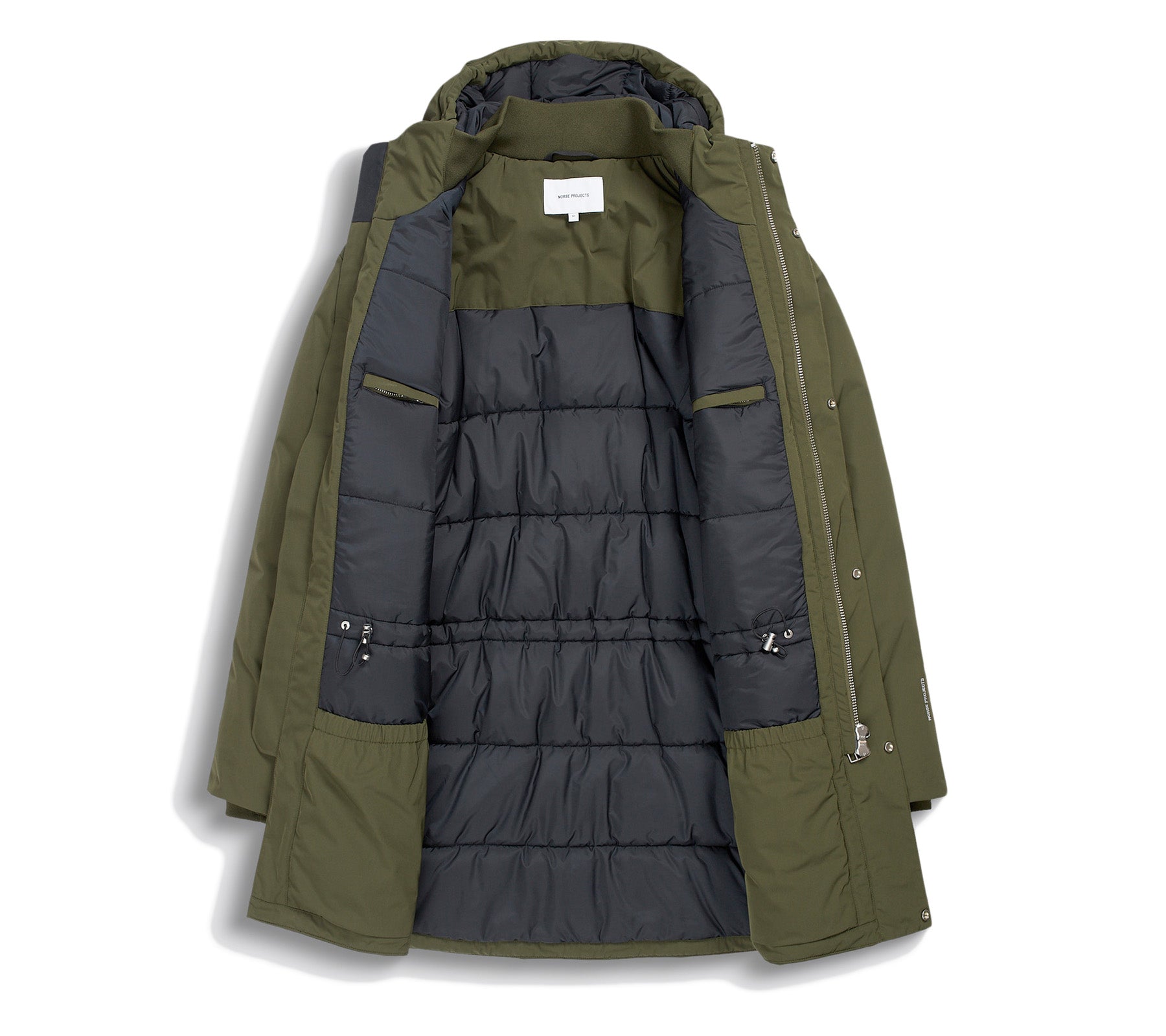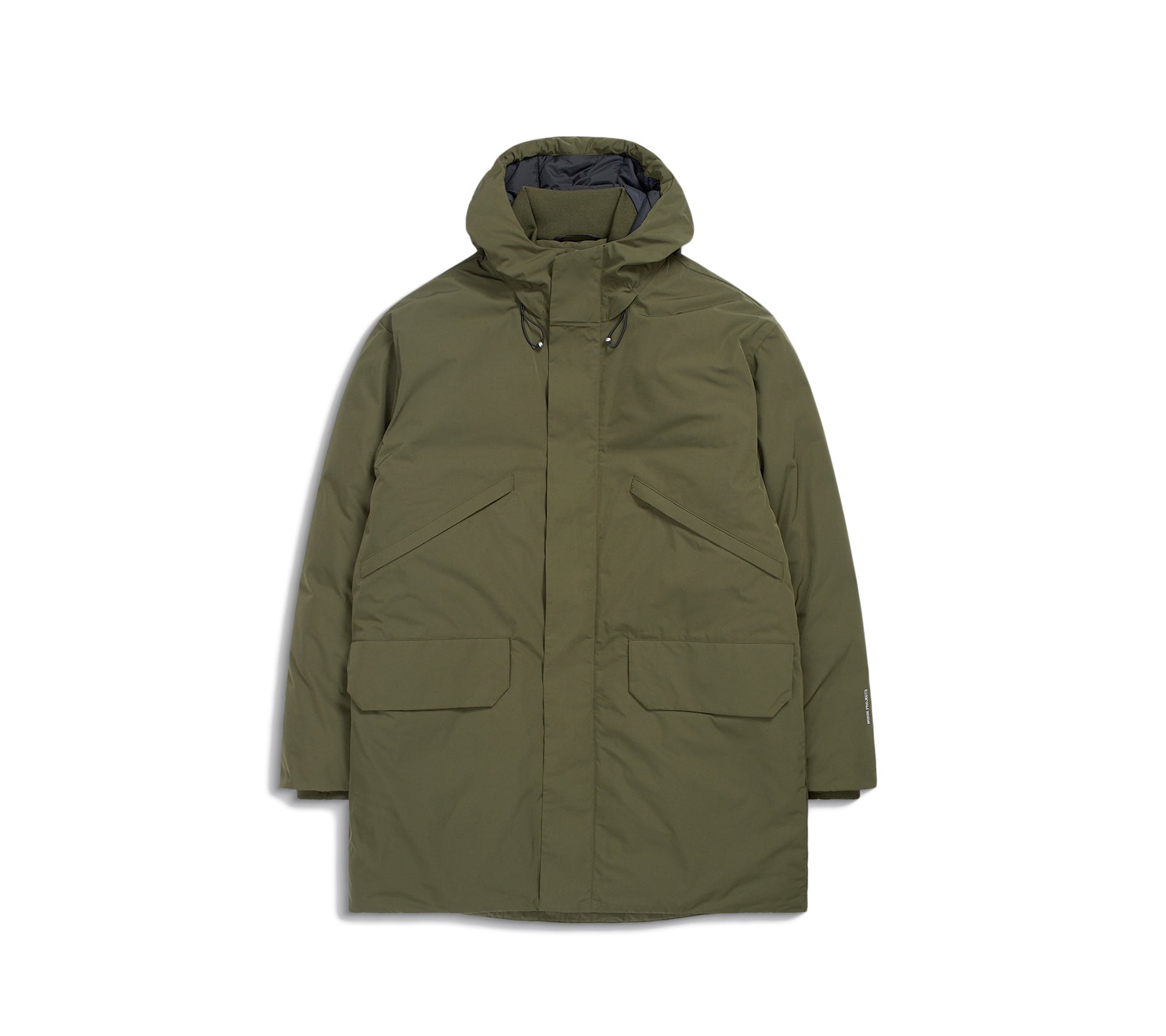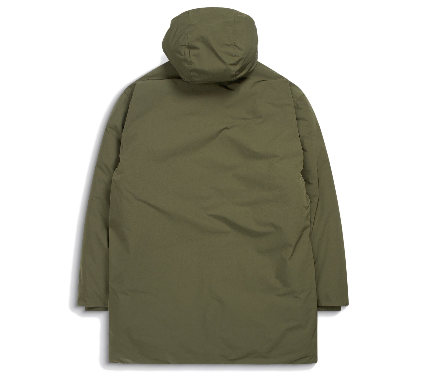 This garment is constructed using a SOLOTEX® yarn woven in a rigid military derived twill construction. The unique helix-like molecular structure of SOLOTEX® gives shape stability and durability. Resisting wear and deformation during use. A durable water repellent (DWR) finish applied to the fabric sheds light rain and snow, which helps to maintain weather proofing and breathability. Insulated with Thermore EVOdown® recycled padding.