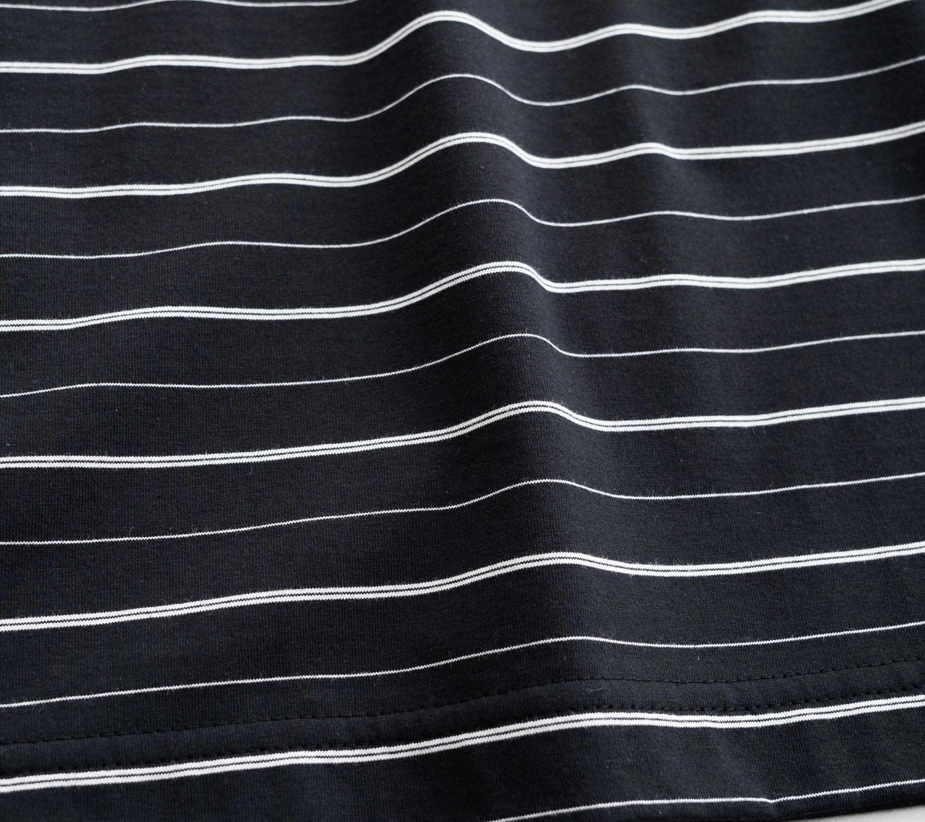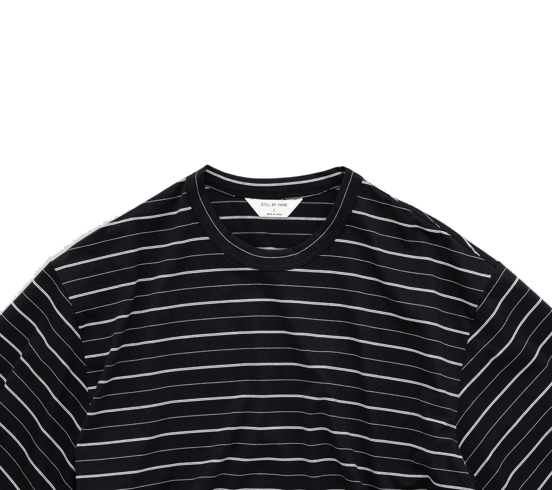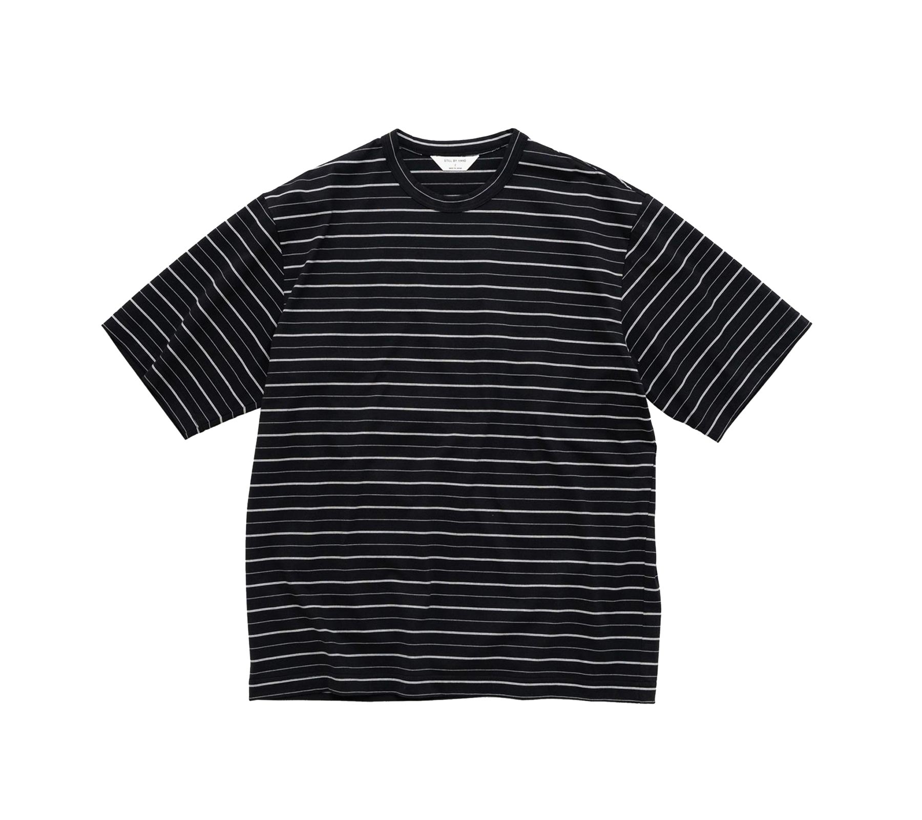 An elevated tee... Crafted from SBH's exclusive 100% plain cotton fabric of 60/2 compact yarns produced in Bishu area (across Aichi and Gifu, an area with vast experience in quality woollen fabrics). Very lightweight and can be worn by itself and layered underneath your shirt/sweater. This t-shirt has a boxy but not overly loose, regular fit, with a fairly narrow and striped neck opening, and roomy sleeves.